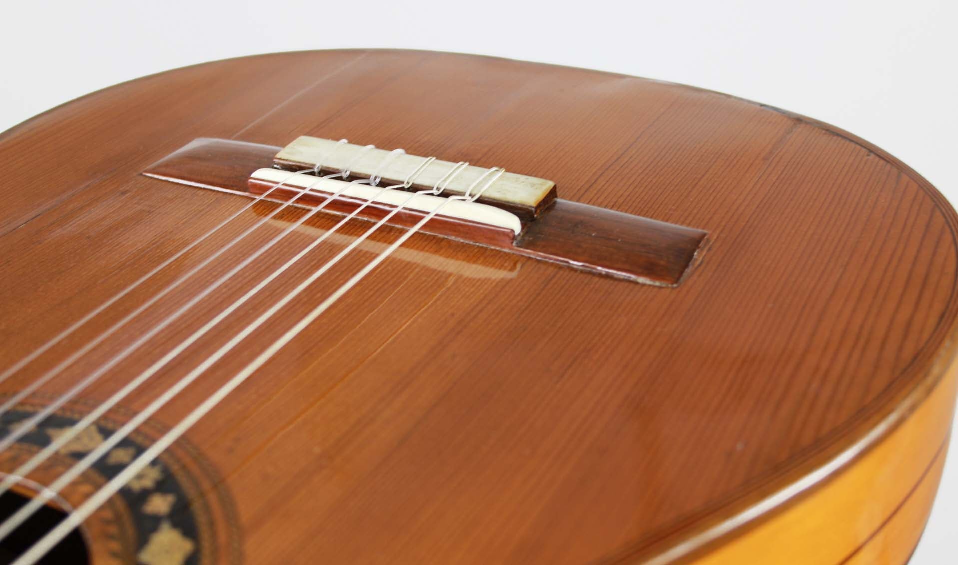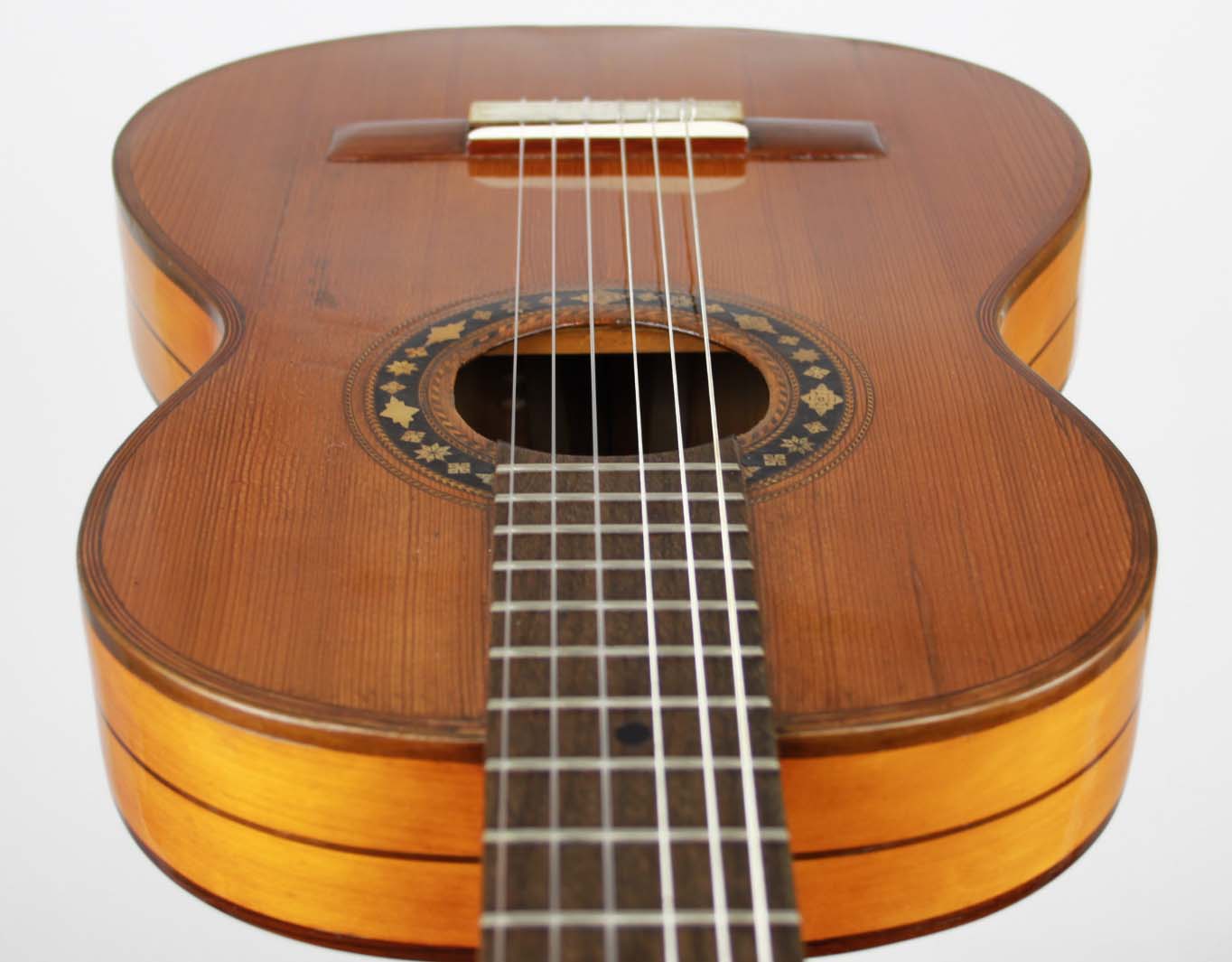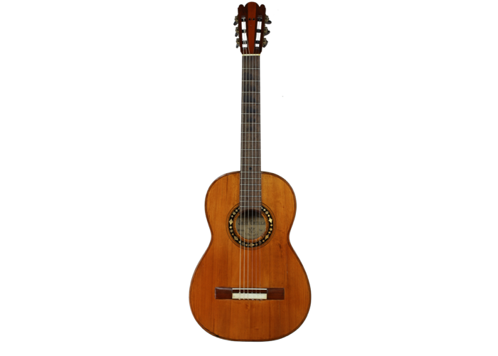 Preis auf AnfrageGitarrenbauer: Ignacio FletaBaujahr: 1954Decke: SpruceBoden und Zargen: Brazilian rosewood (CITES certified)Deckenoberfläche: French polishKorpusoberfläche: NitrocelluloseLuftresonanz: G / G sharpGewicht (g): 1585Mechaniken: FusteroZustand: Very good -