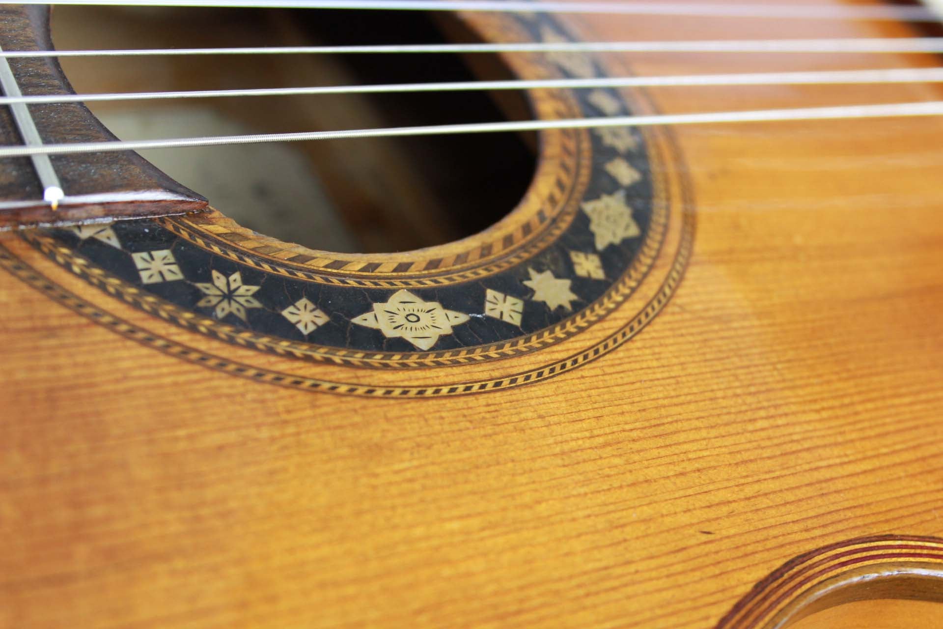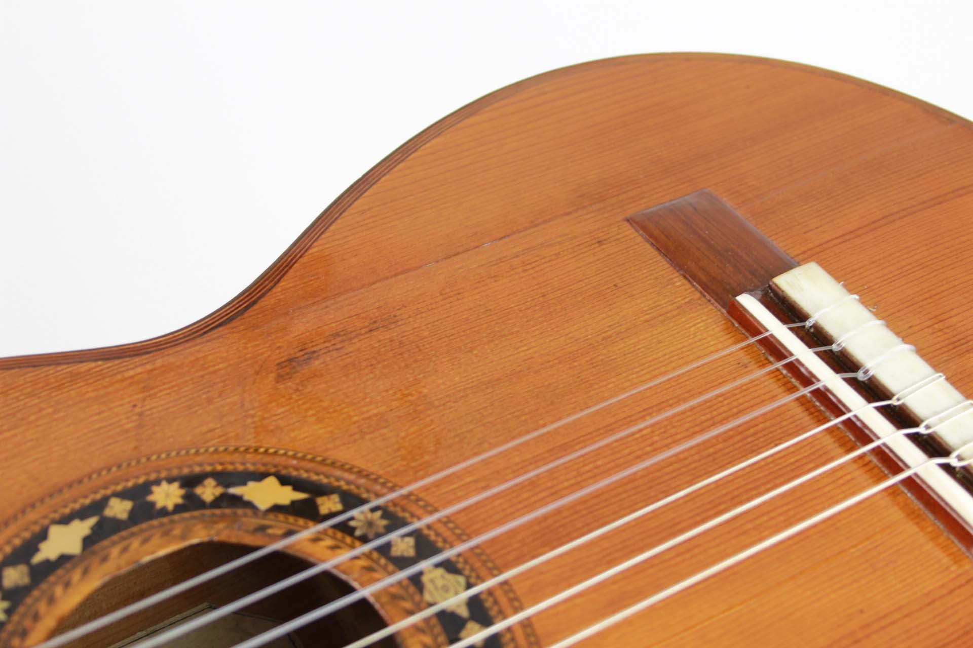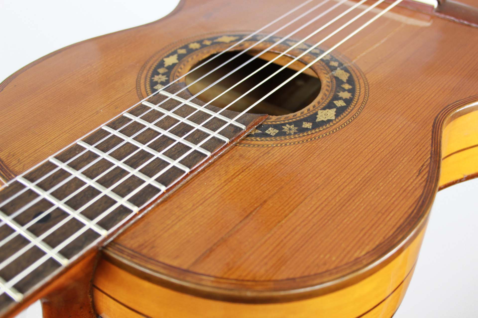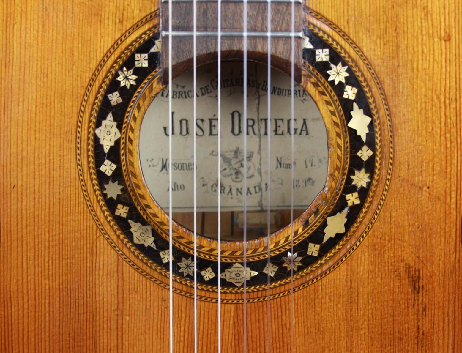 José Ortega (*1854) lernte den Gitarrenbau von seinem Vater Juan, zusammen mit Benito Ferrer, dem Begründer der Ferrer-Dynastie in Granada und Erbauer von Andres Segovias erster richtiger Konzertgitarre. Typisch für die Arbeit von Ortega sind die sehr schmalen Zargen, wie sie auch in einer einzigen Torres-Gitarre, ebenfalls von 1890, zu finden sind (SE 04). Der Koffer ist speziell dafür angefertigt, und die Perlmutt-Intarsien wurden mit größter Wahrscheinlichkeit aus der markneukirchener Gegend importiert. Der berühmte spanische Poet Federico Garcia Lorca besaß eine Ortega-Gitarre, die sich in einem Museum in Granda befindet. Dieses Instrument ist in restauriertem Originalzustand das heißt: es wurde größten Wert darauf gelegt, an der Substanz nichts zu ändern. Die Gitarre besticht durch einen außerordentlichen Klangfarbenreichtum