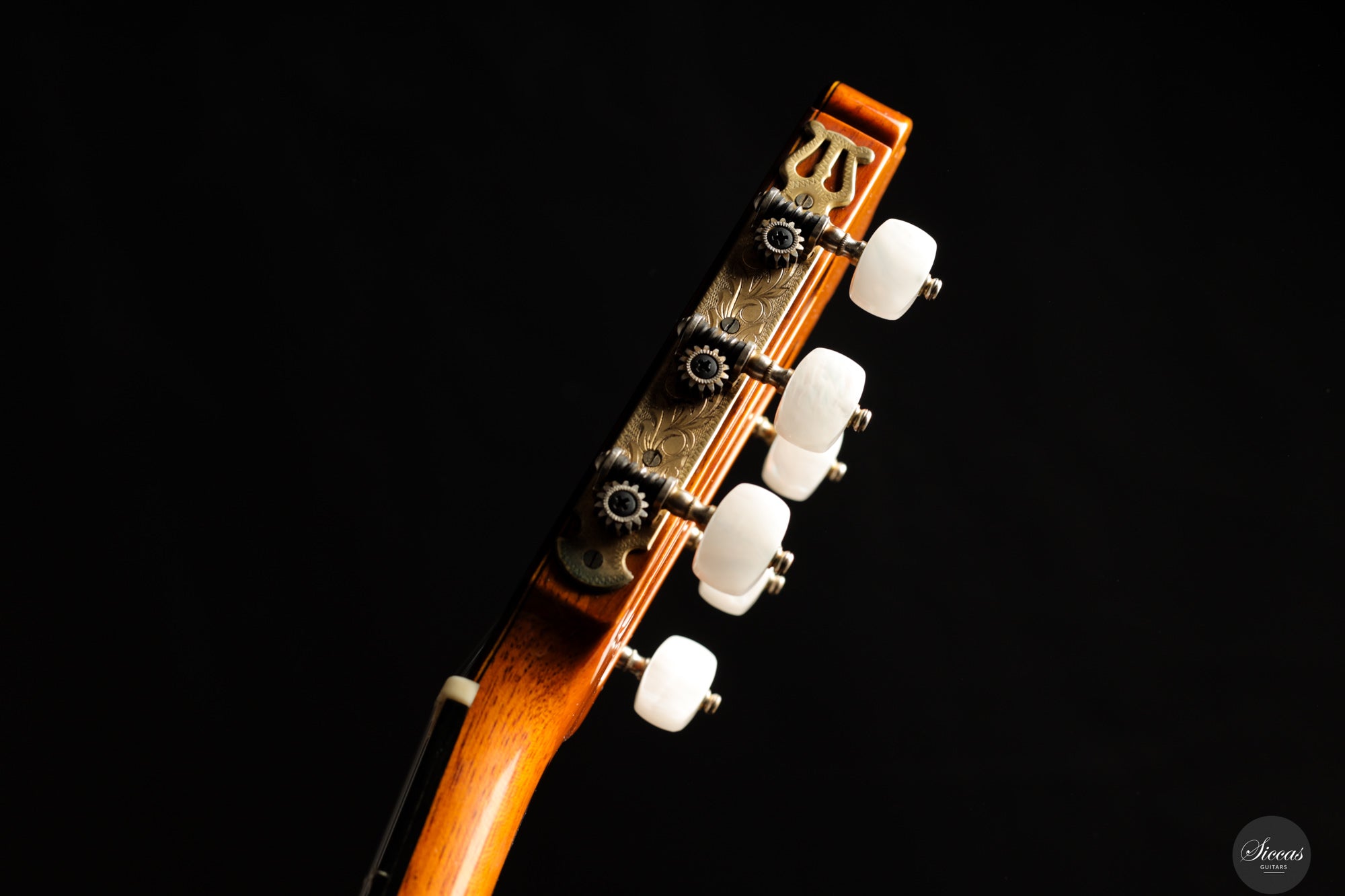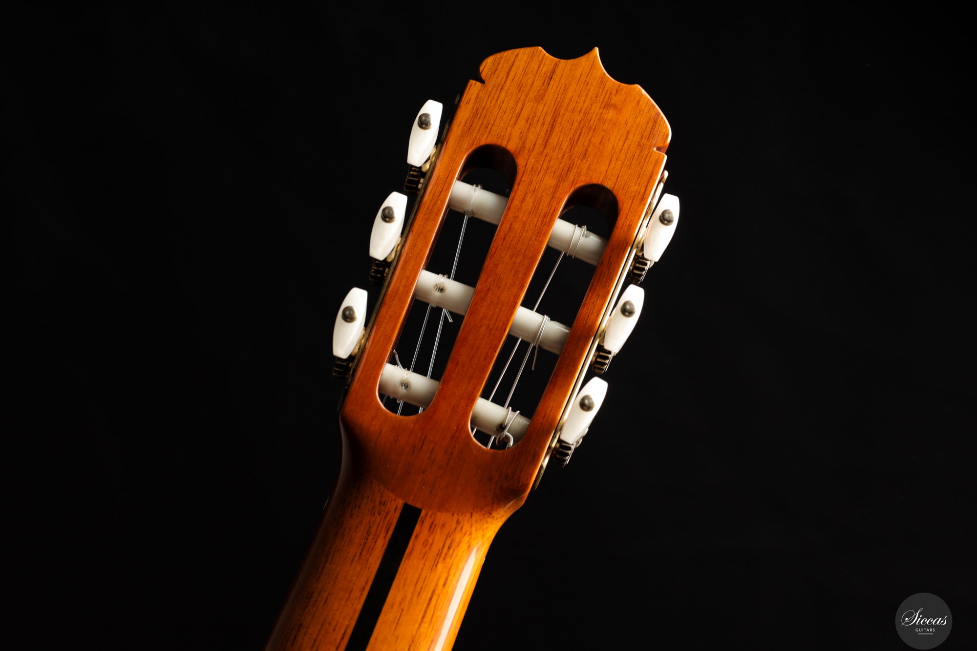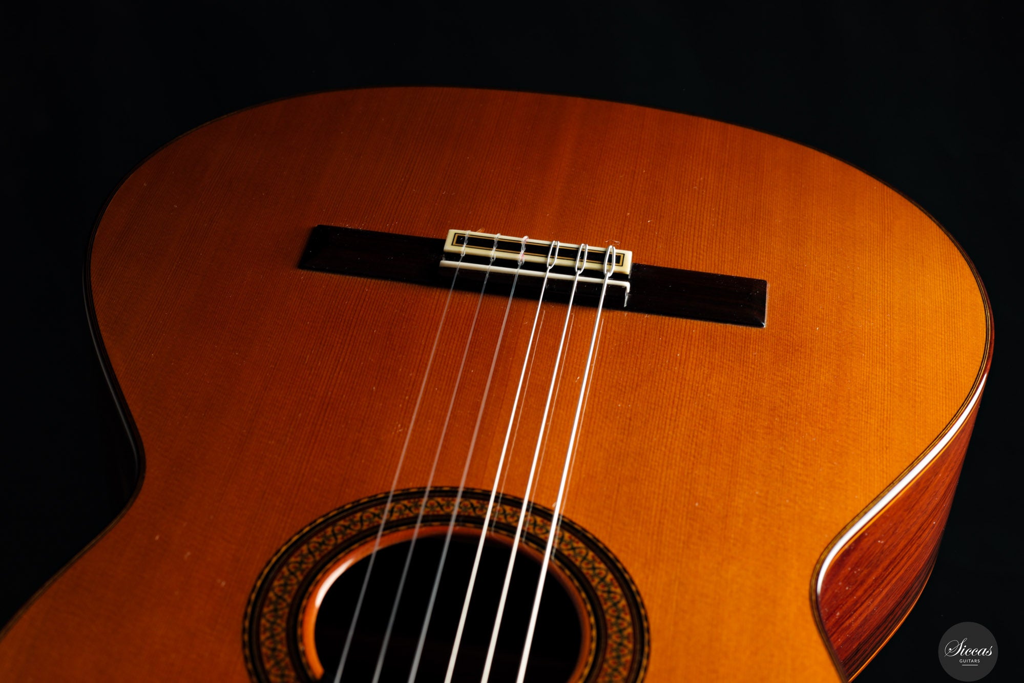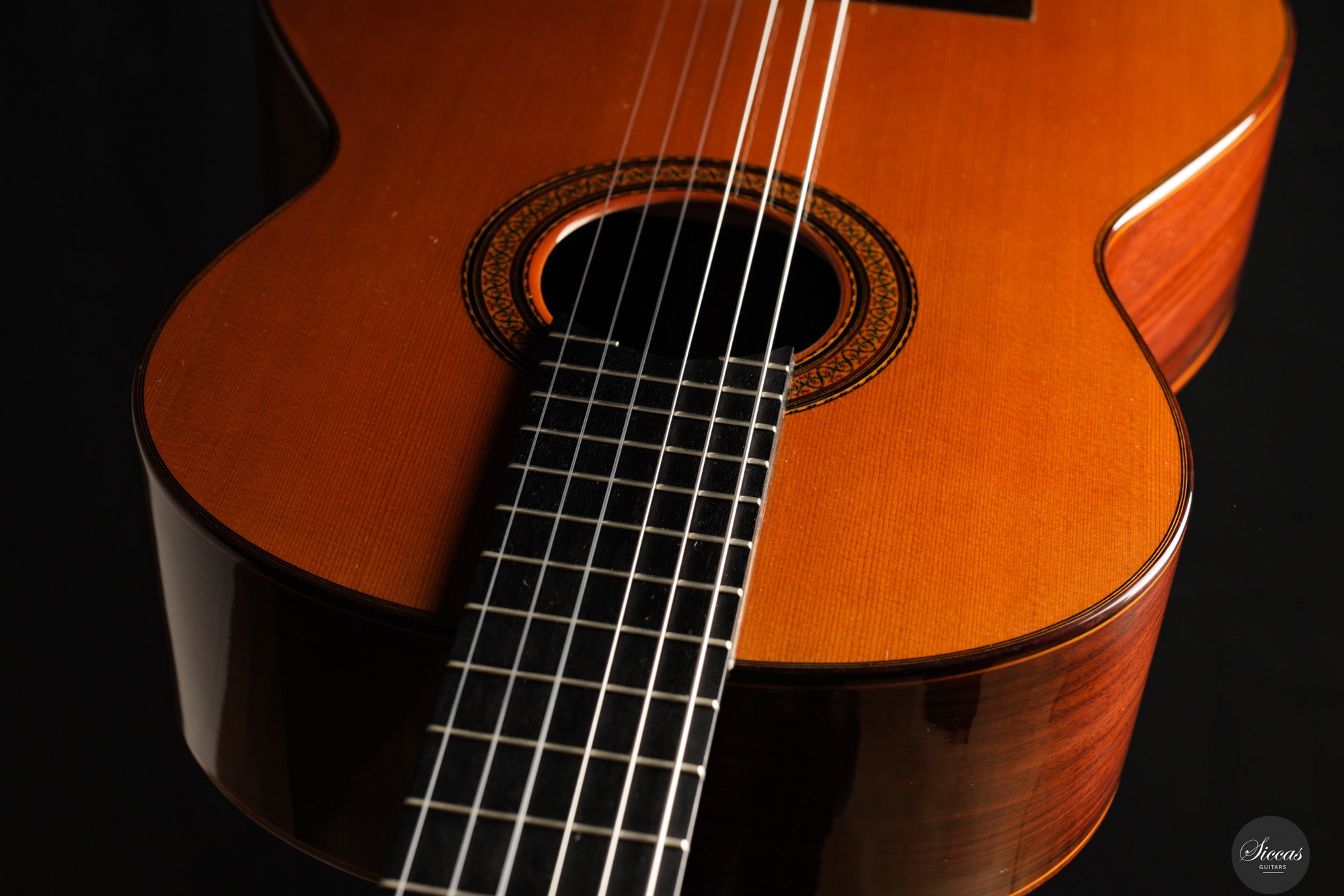 Klanglich zeigt die Gitarre einen klar ausgeprägten spanischen Charakter mit einem tragfähigen und fokussierten Grundton. Die Diskantsaiten überzeugen durch glockenartige Klarheit und Gesanglichkeit, während die Bässe präsent bleiben, ohne an Kontur zu verlieren. Besonders hervorzuheben ist die sehr gute Stimmtrennung. Jede Stimme bleibt deutlich nachvollziehbar, wodurch polyphone Strukturen präzise und ausgewogen dargestellt werden können. Das Instrument vermittelt ein souveränes Spielgefühl und eignet sich hervorragend für Repertoire, das Klarheit, Projektion und eine traditionelle Konzertstimme verlangt.
