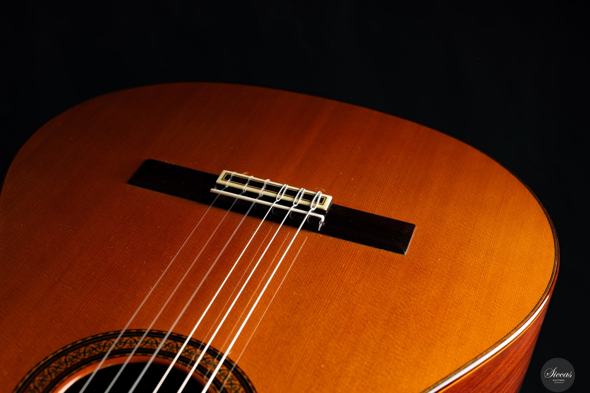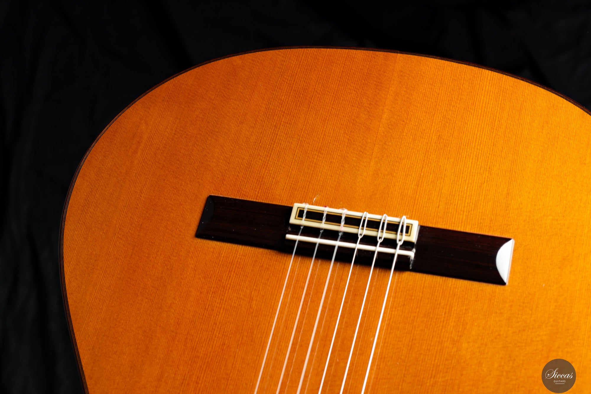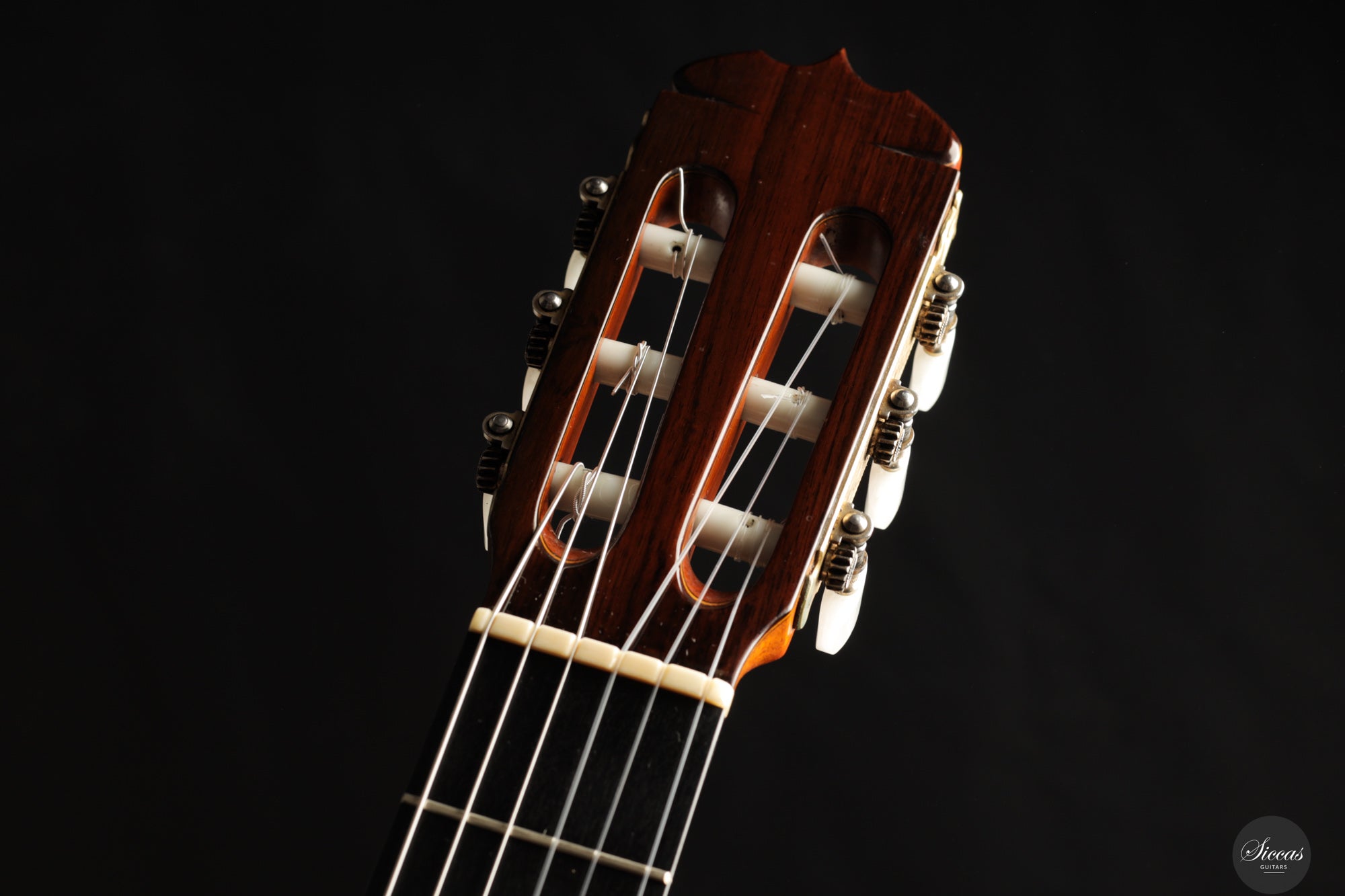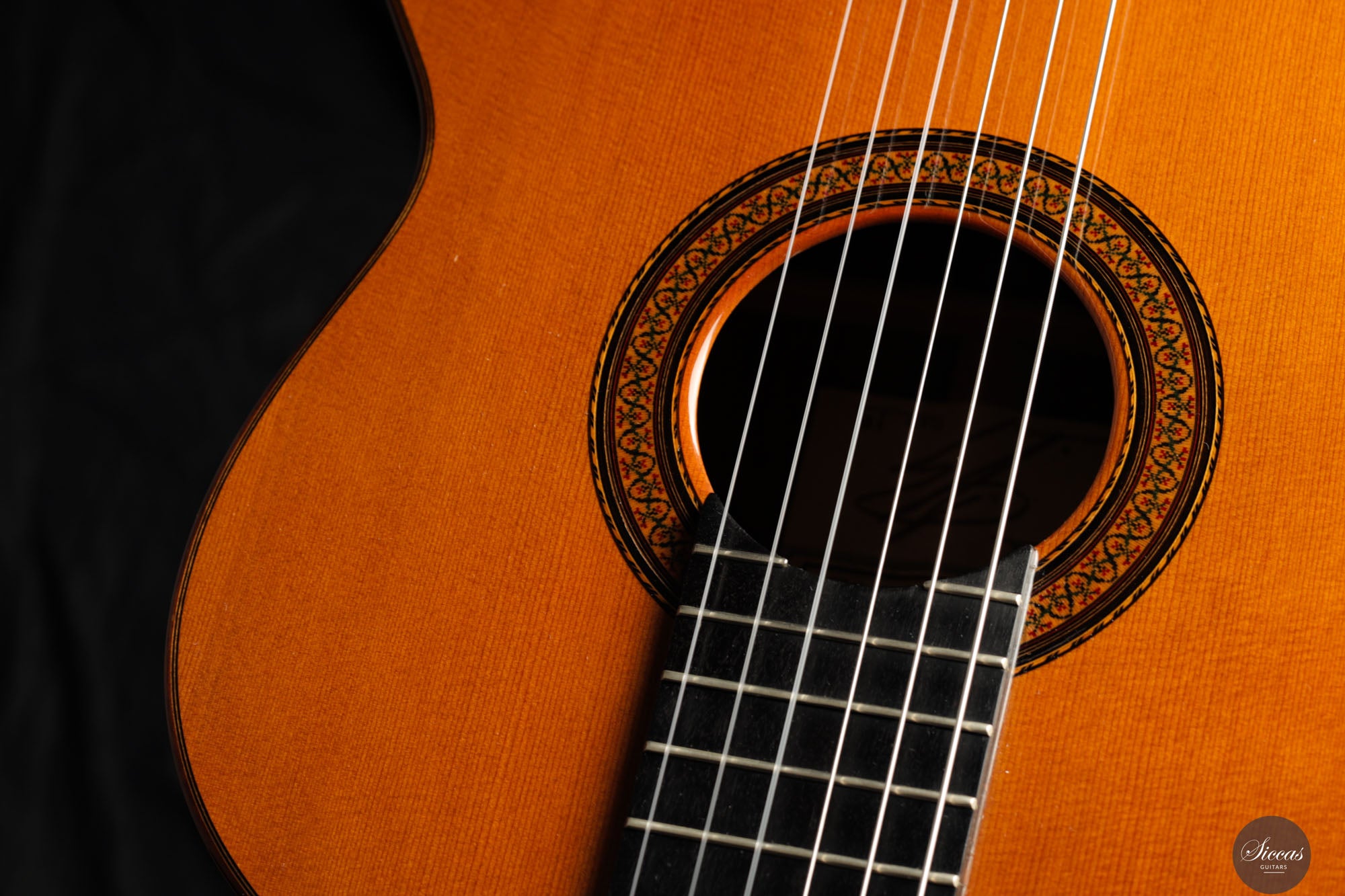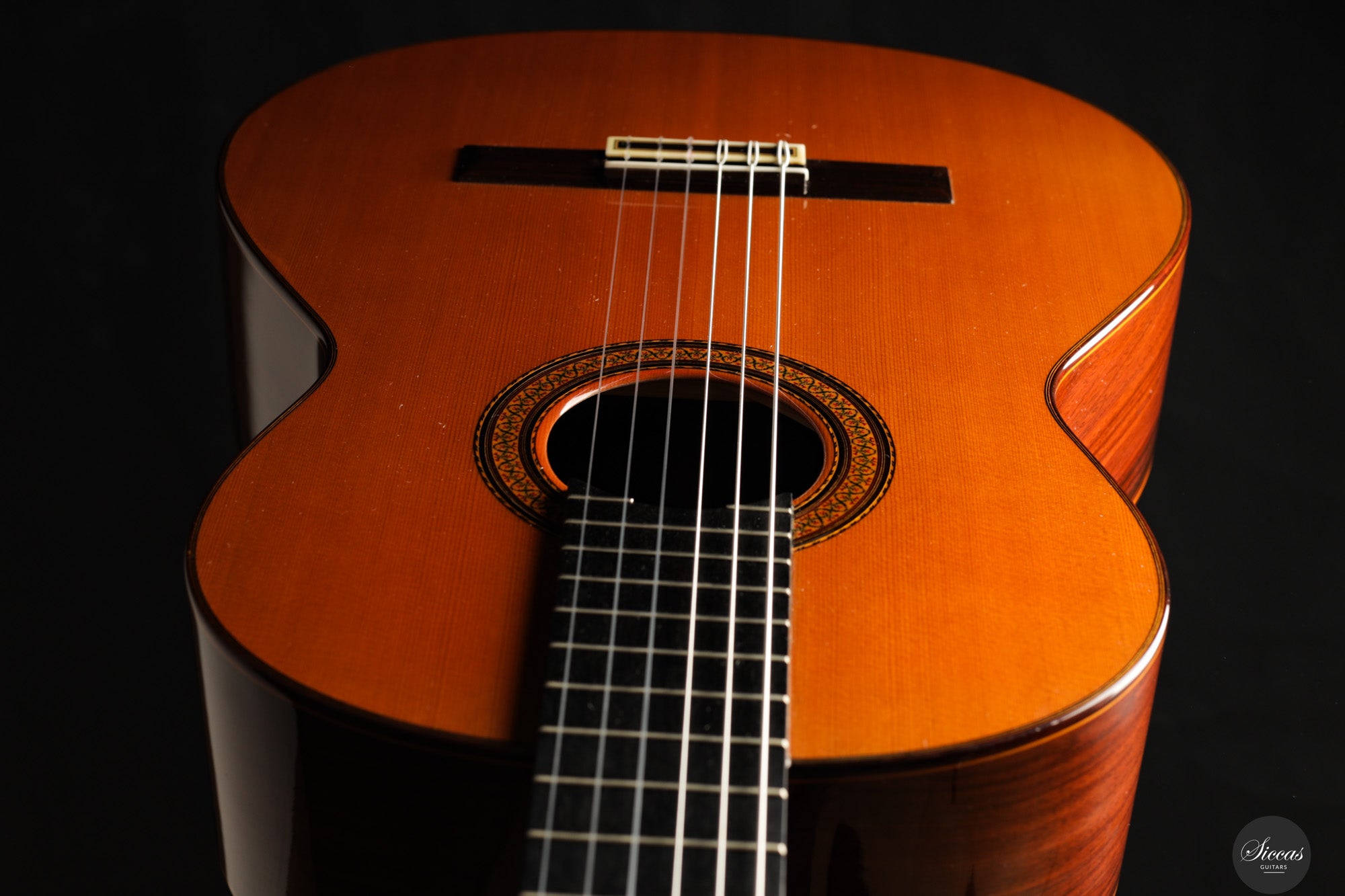 Klanglich zeigt die Gitarre einen klar ausgeprägten spanischen Charakter mit einem tragfähigen und fokussierten Grundton. Die Diskantsaiten überzeugen durch glockenartige Klarheit und Gesanglichkeit, während die Bässe präsent bleiben, ohne an Kontur zu verlieren. Besonders hervorzuheben ist die sehr gute Stimmtrennung. Jede Stimme bleibt deutlich nachvollziehbar, wodurch polyphone Strukturen präzise und ausgewogen dargestellt werden können. Das Instrument vermittelt ein souveränes Spielgefühl und eignet sich hervorragend für Repertoire, das Klarheit, Projektion und eine traditionelle Konzertstimme verlangt.