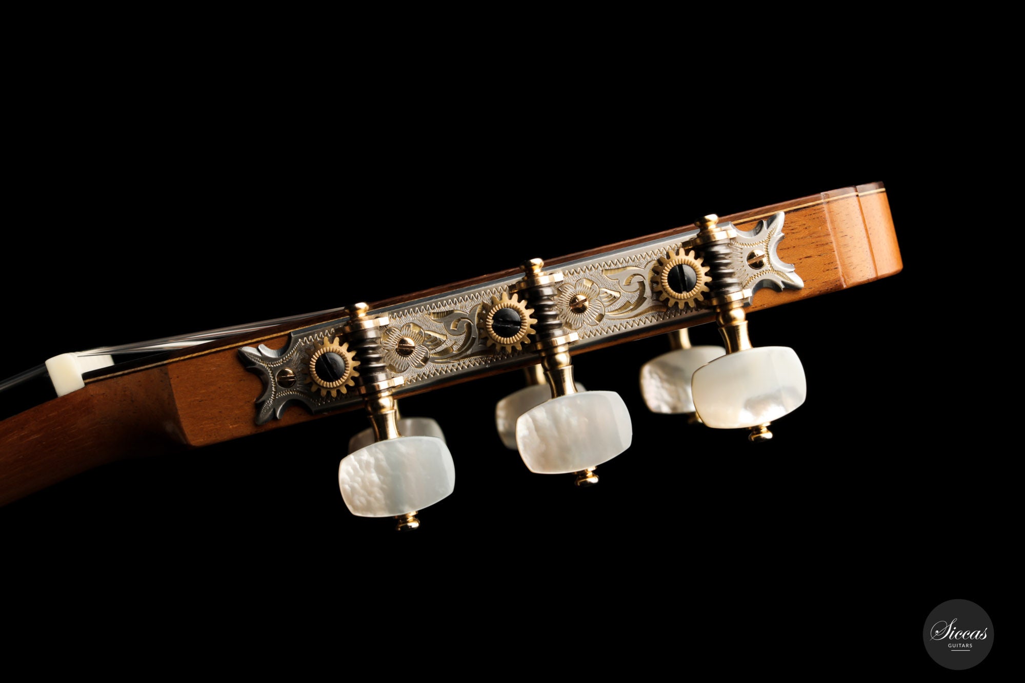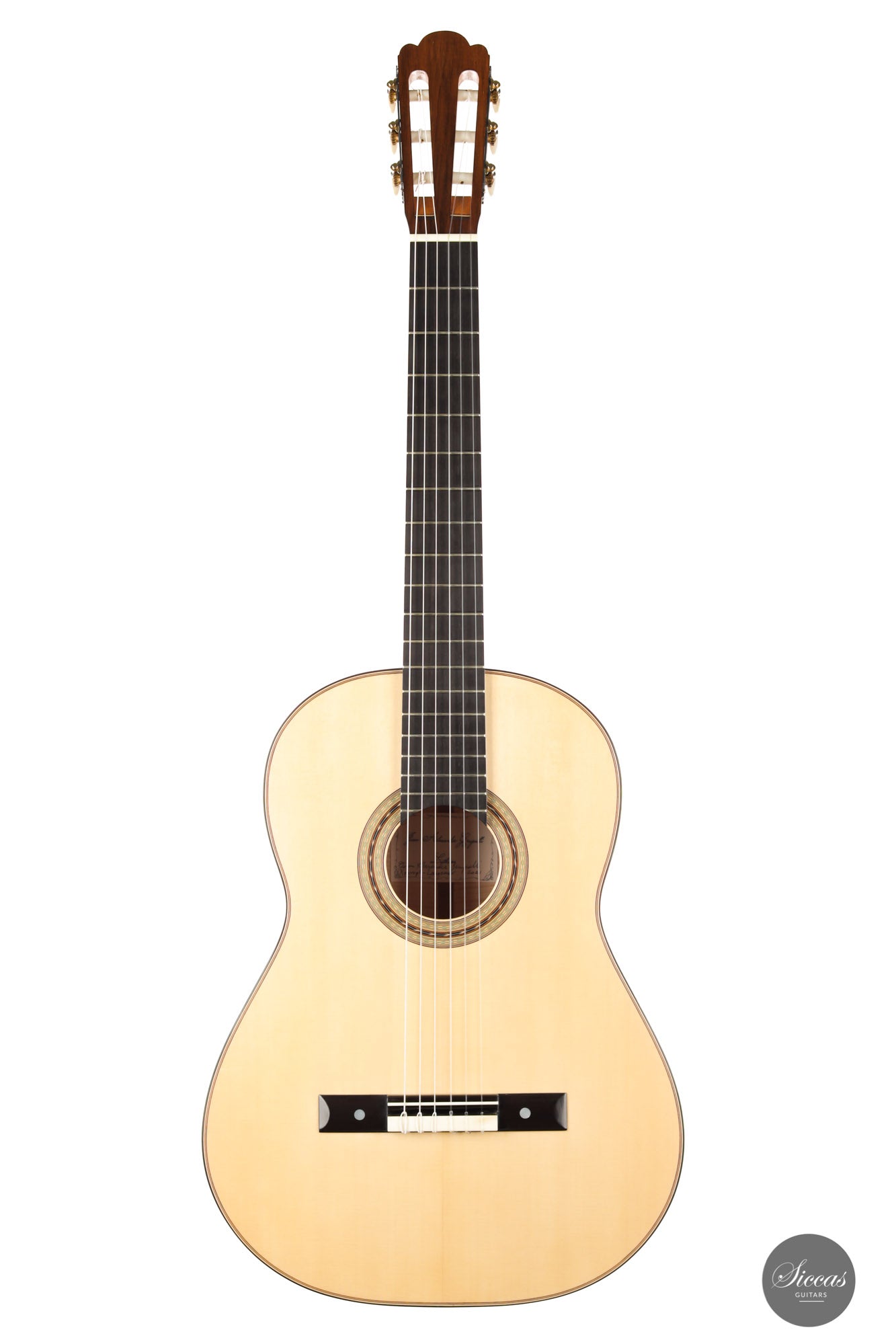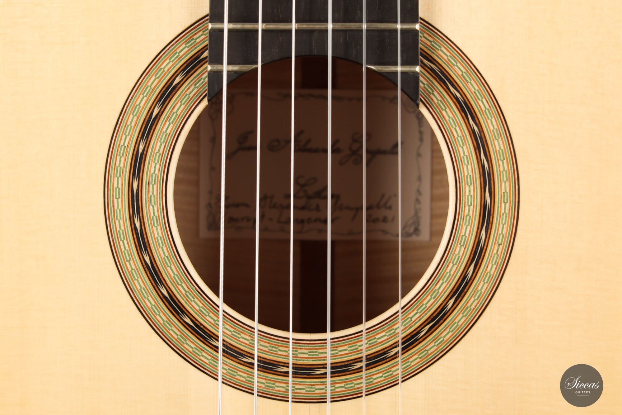 With its low natural frequency, which is slightly lower than F, this guitar unfolds fantastic basses that surround the player and captivate the listener. Ideal for Spanish repertoire, the sweet yet rich trebles have a richly textured character and sing beautifully. It is an overall lovely and classy guitar that will delight any Antonio de Torres aficionado.