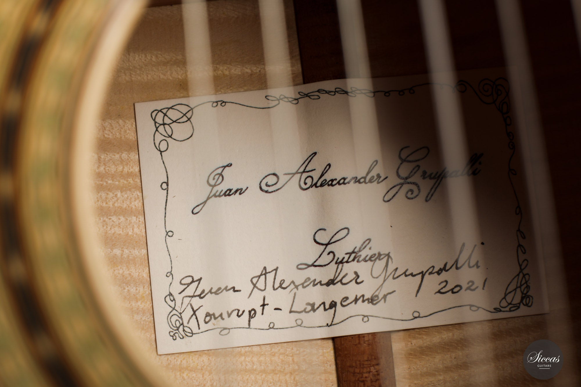 Juan Alexander Grupalli has been making classical guitars for almost 25 years. He lives and works in his workshop in a small town called Xonrupt-Longemer in the center of the Vosges Mountains in France. Juan Alexander began his career by learning from the renowned guitar makers Joaquín García Fernández (Spain) and Stephen Hill (England). He later earned his guitar-making diploma at the Newark School of Lutherie in England. Following the Spanish tradition, he draws inspiration from guitar makers such as Antonio de Torres, Hermann Hauser, and Ignacio Fleta.