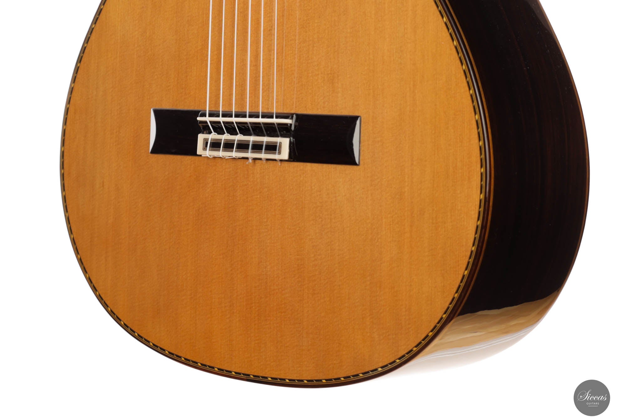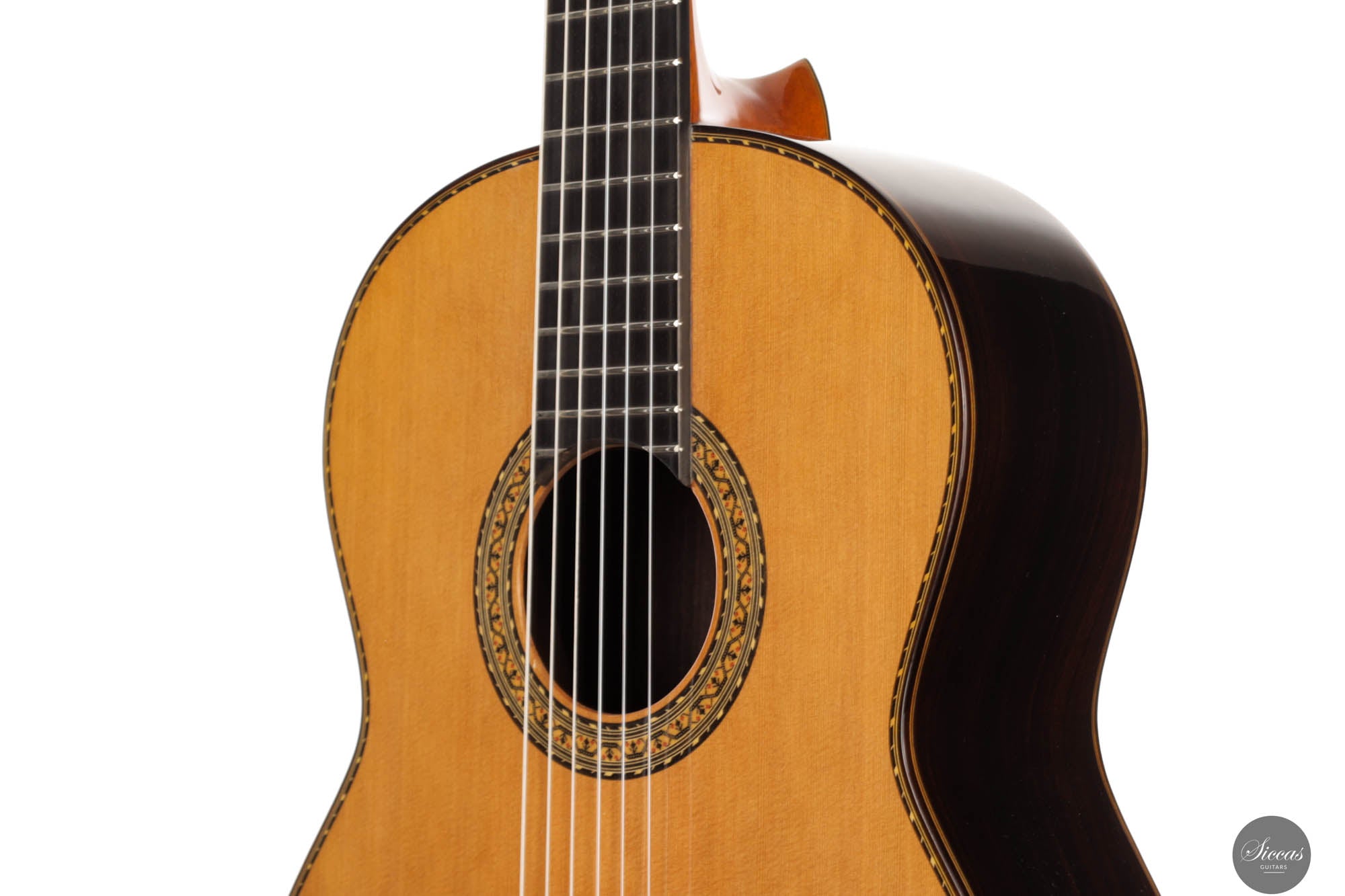 Juan Hernández, geboren 1948 in Turís, Valencia, begann seine illustre Karriere im Gitarrenbau bereits im zarten Alter von 15 Jahren als Lehrling in der Esteve Gitarrenwerkstatt. Dort verfeinerte er sein Handwerk und entwickelte ein tiefes Reservoir an Wissen im Gitarrenbau. Im Laufe der Jahre blühten Hernández' Fähigkeiten auf, was ihn dazu brachte, zusammen mit seinem Sohn, Alberto Hernández, und einem Team von geschickten Handwerkern zu arbeiten. Gemeinsam haben sie weiterhin die hohen Standards des Handwerks aufrechterhalten, die seinem Unternehmen einen angesehenen internationalen Ruf eingebracht haben. Heute wird Juan Hernández nicht nur für seine traditionellen Techniken gefeiert, sondern auch für seine Fähigkeit, jeder Gitarre ein Stück spanisches musikalisches Erbe einzuhauchen.