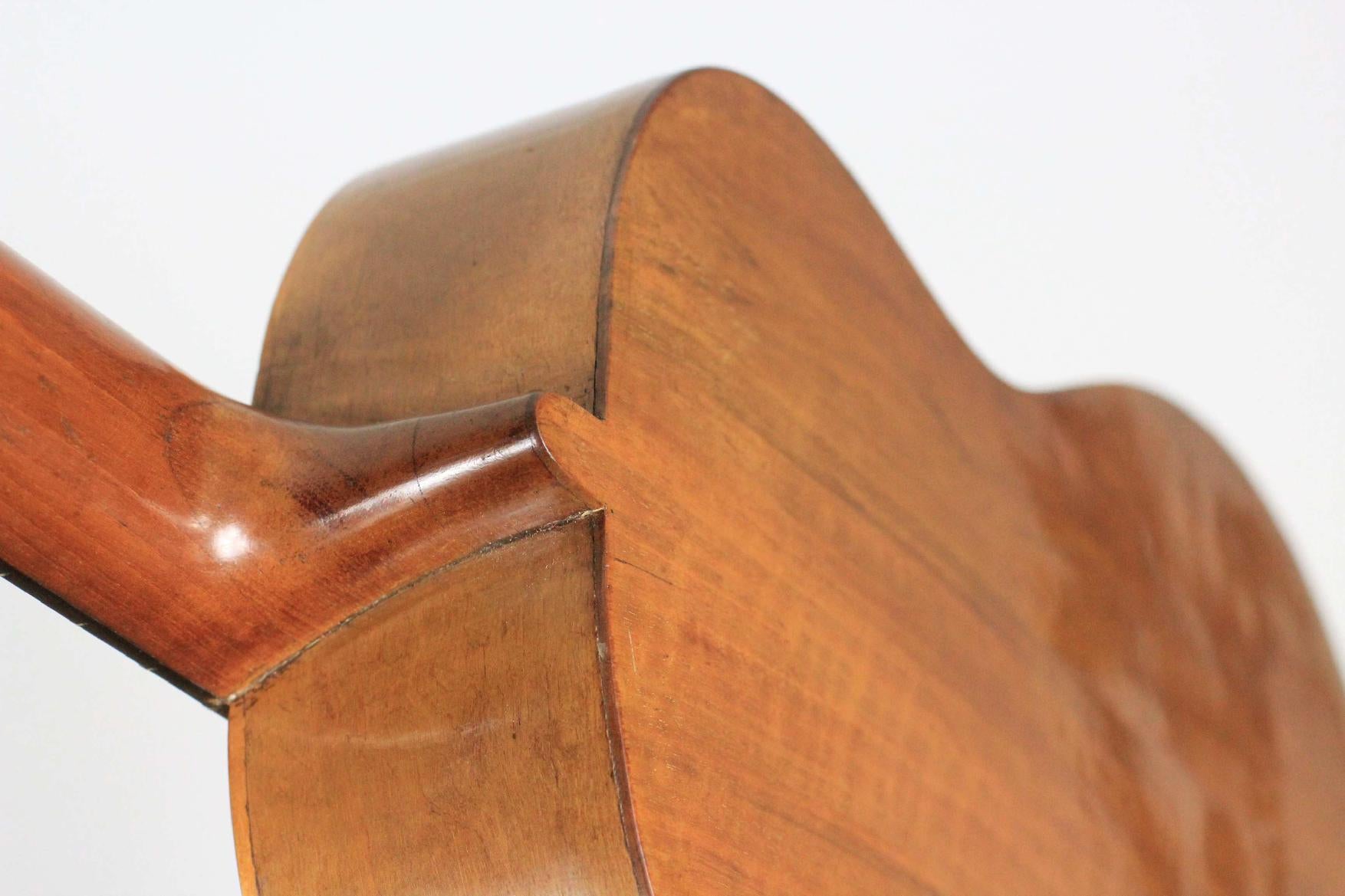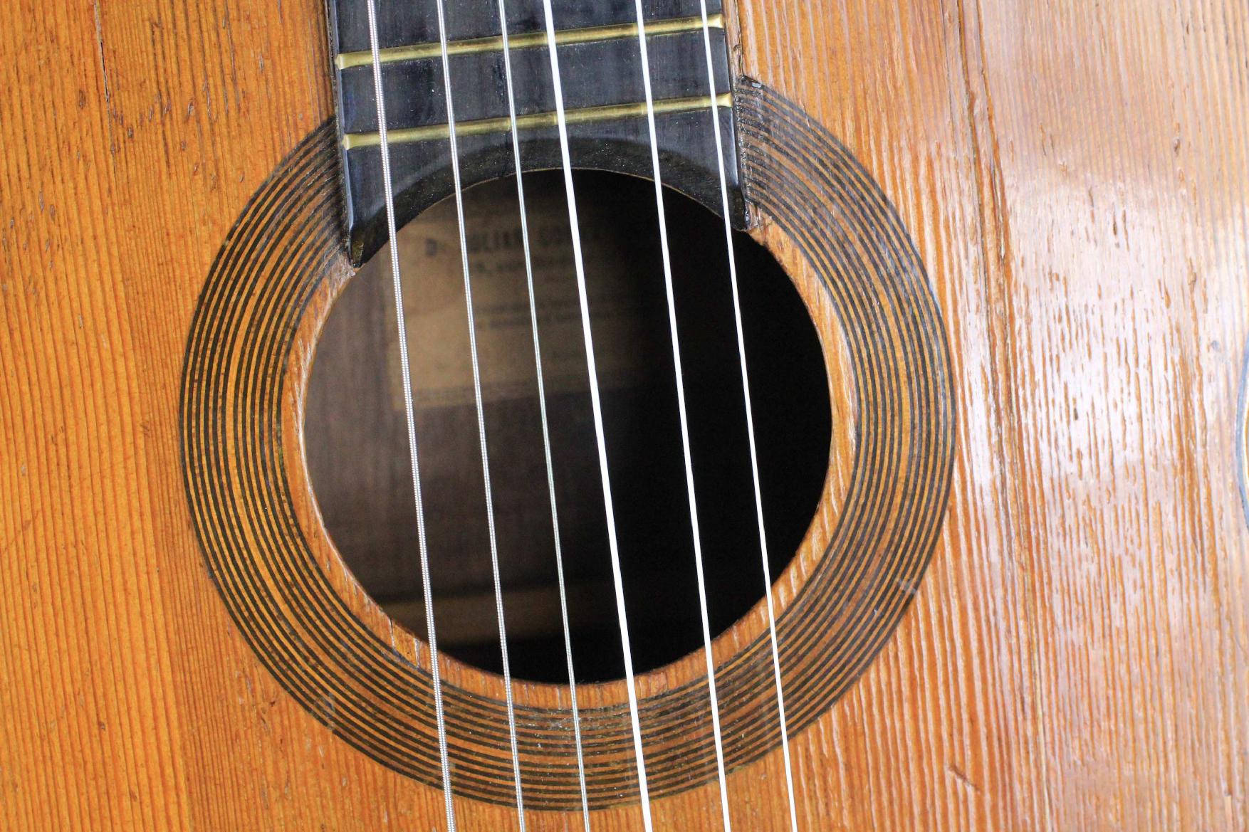 Julían Gómez Ramírez wurde 1879 in Madrid geboren. Schon mit 13 Jahren begann er in der Werkstatt von Augustín Andrés zu arbeiten. Mit 31 Jahren, im Jahr 1910, arbeitete er bei José Ramirez I. Nach dieser lehrreichen Zeit kam er vermutlich im Jahr 1914 als der erste Vertreter der spanischen Gitarrenbaukunst nach Paris und revolutionierte den Gitarrenbau in Frankreich. Zu jener Zeit war die französische Gitarrenbaukunst mit ihren romantischen Gitarren aufgrund der großen Beliebtheit des Klaviers unpopulär geworden. Im Jahr 1938 lernte Julían Gómez Ramírez Robert Bouchet (1898-1986) kennen, als dieser eine Gitarre von ihm kaufte. Es entwickelte sich zwischen beiden eine Freundschaft und J.G. Ramírez lehrte schließlich Robert Bouchet den Gitarrenbau. Später gab Robert Bouchet sein Wissen an Christian Aubin weiter, welcher in den 1950er Jahren Daniel Friederich sein Wissen weitergab. Die Gitarre wurde restauriert und weist Reparaturen auf der Decke und den Boden auf. Der Boden und die Zargen sind aus Walnussholz.