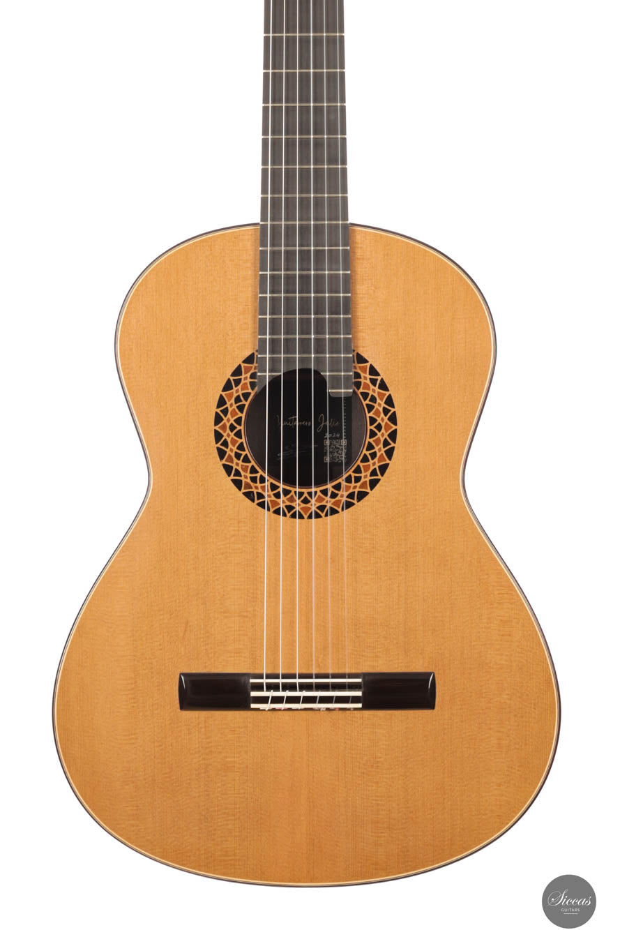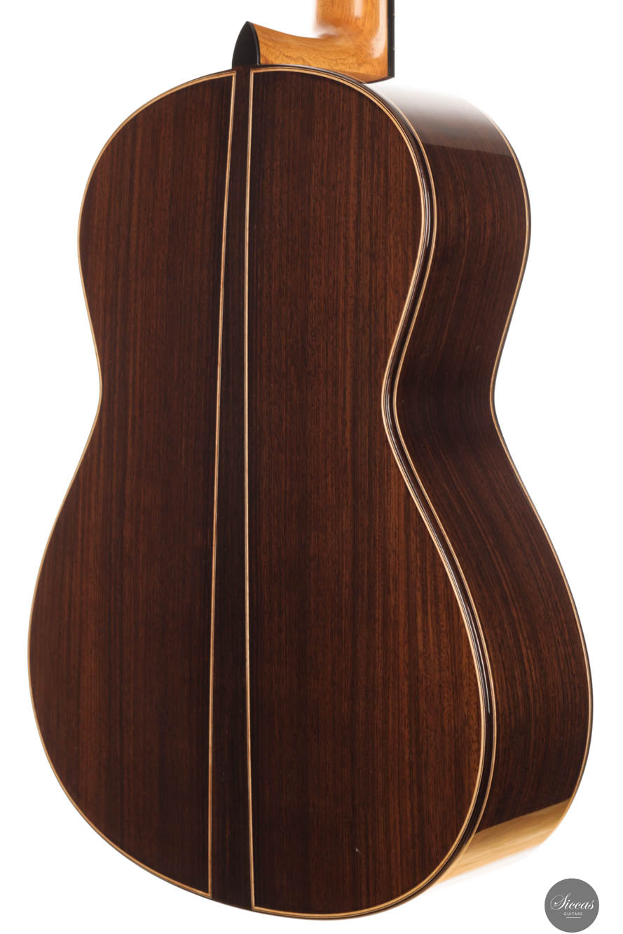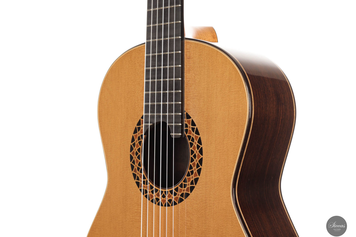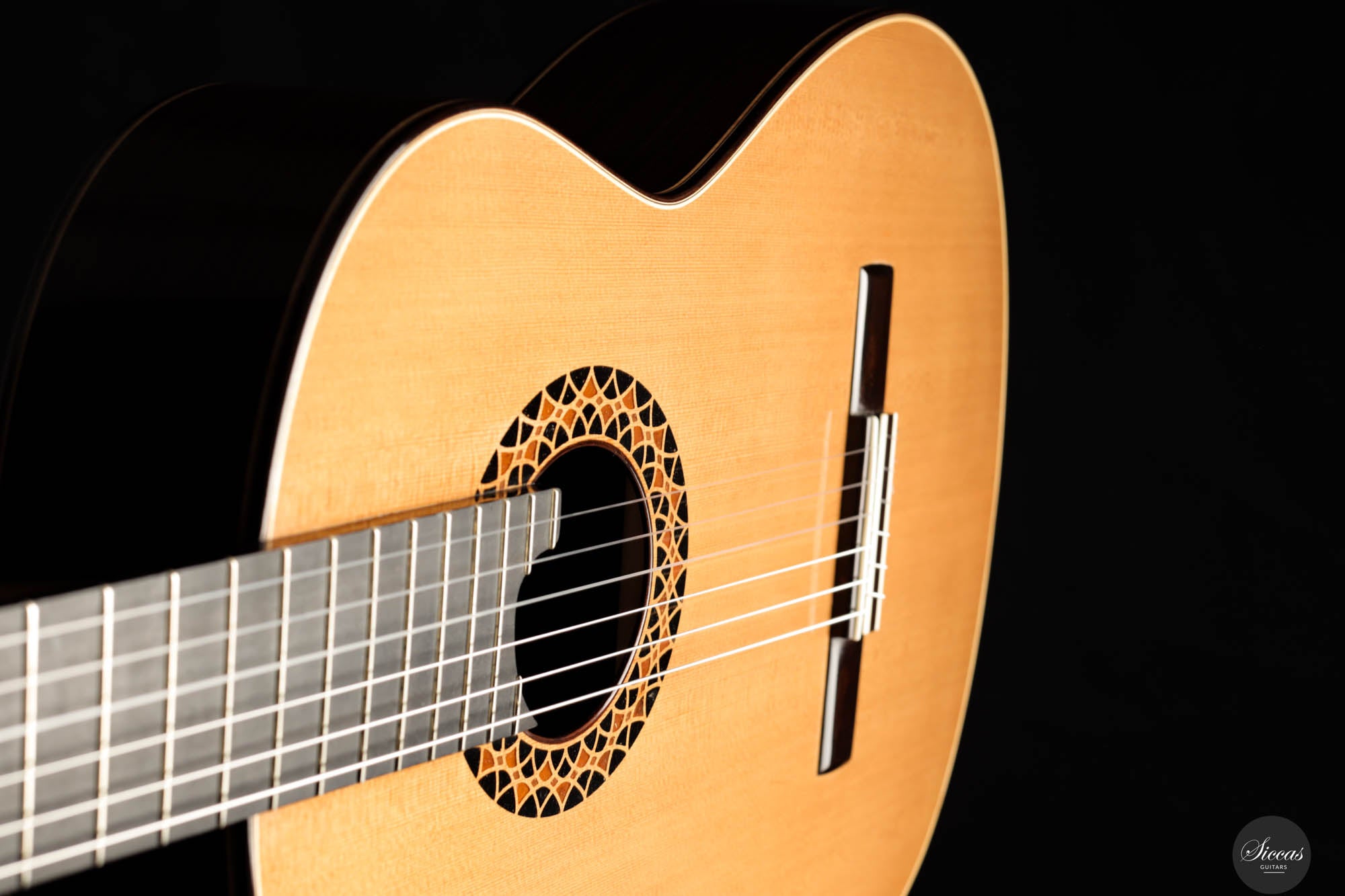 This brand-new guitar by Julio seamlessly combines the traditional artistry of the Granada school with modern innovation through its double-top construction. While honoring the rich legacy of Spanish guitar-making, this instrument offers enhanced responsiveness and playability, catering to the needs of contemporary guitarists. Its swift reaction to right-hand attacks and lively, balanced first string create a dynamic playing experience, making it a versatile option for musicians who appreciate both classic Spanish sound and modern acoustic sophistication. Despite its impressive volume, achieved through its modern double-top construction, the guitar stays true to its Spanish roots, particularly reflecting the distinctive tonal qualities and craftsmanship of the Granada school. This unique blend of powerful projection and traditional Spanish character allows the instrument to deliver a rich, resonant sound while maintaining the warmth and expressive nuance that define the Granada style.