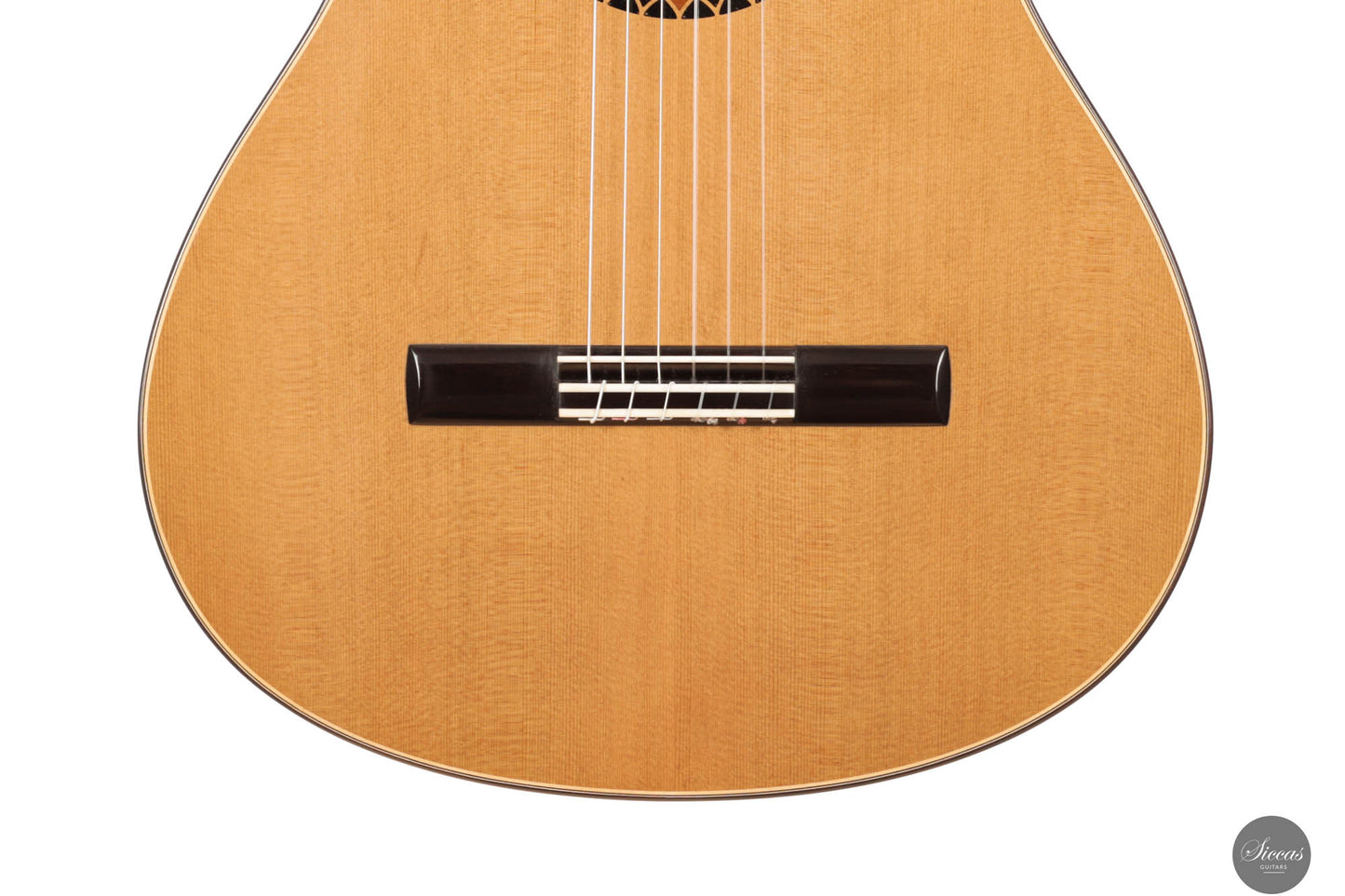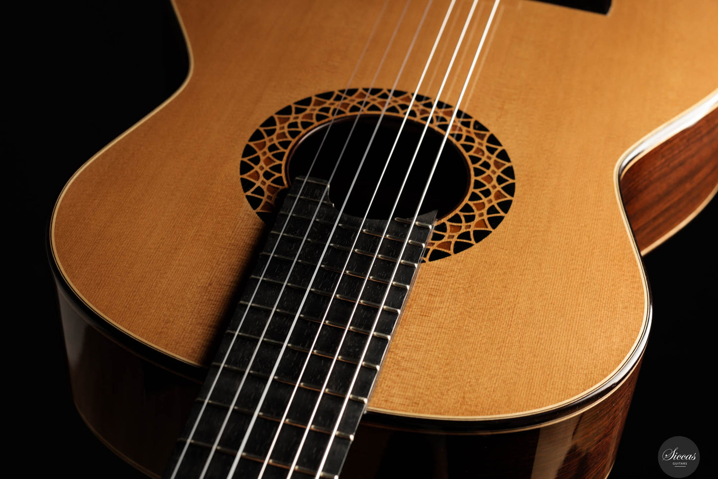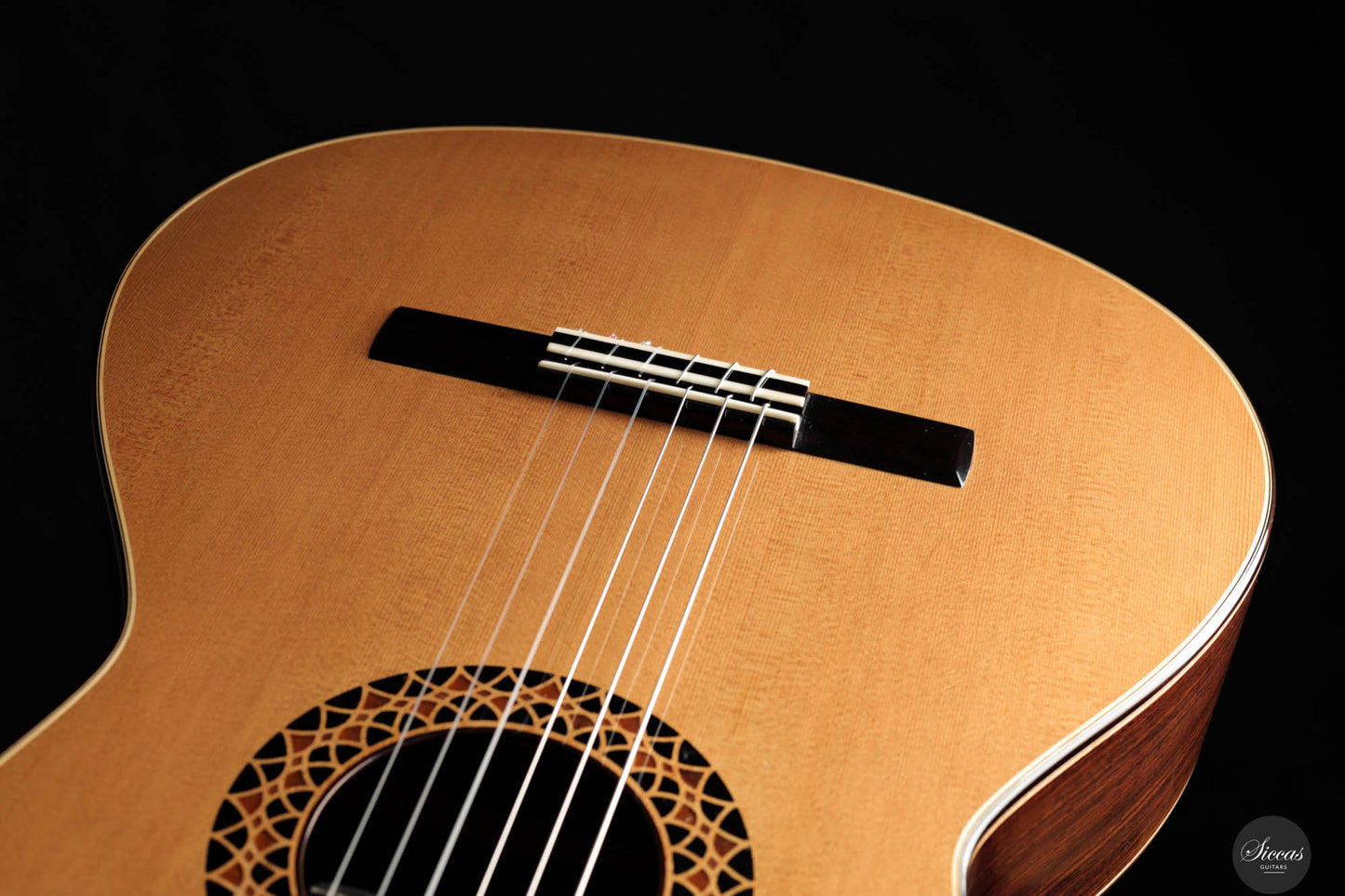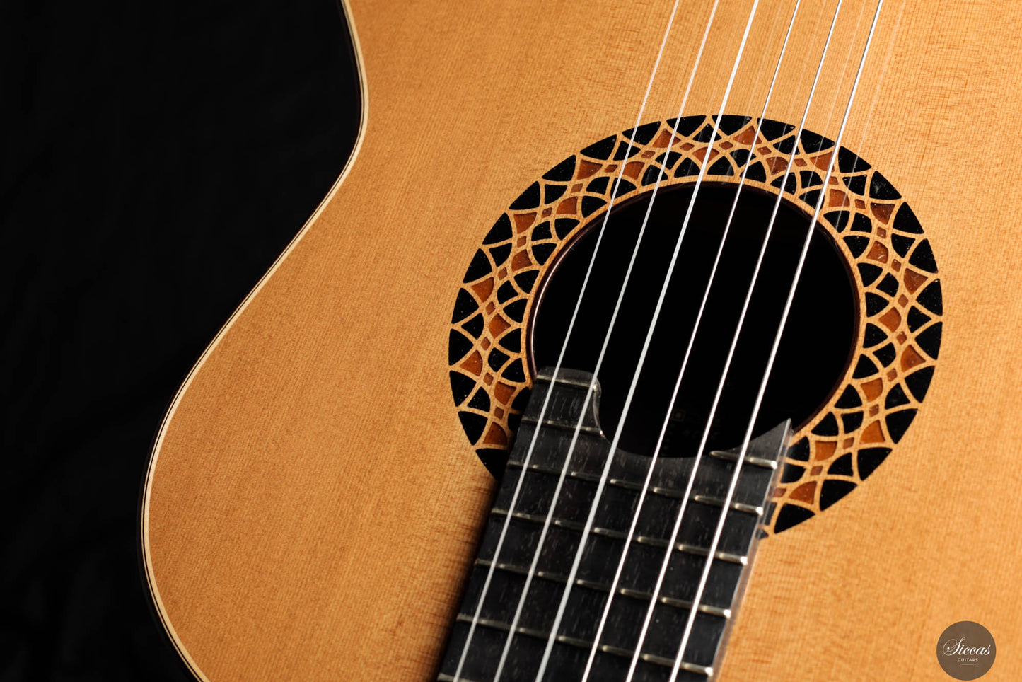 This brand-new guitar by Julio seamlessly combines the traditional artistry of the Granada school with modern innovation through its double-top construction. While honoring the rich legacy of Spanish guitar-making, this instrument offers enhanced responsiveness and playability, catering to the needs of contemporary guitarists. Its swift reaction to right-hand attacks and lively, balanced first string create a dynamic playing experience, making it a versatile option for musicians who appreciate both classic Spanish sound and modern acoustic sophistication. Despite its impressive volume, achieved through its modern double-top construction, the guitar stays true to its Spanish roots, particularly reflecting the distinctive tonal qualities and craftsmanship of the Granada school. This unique blend of powerful projection and traditional Spanish character allows the instrument to deliver a rich, resonant sound while maintaining the warmth and expressive nuance that define the Granada style.