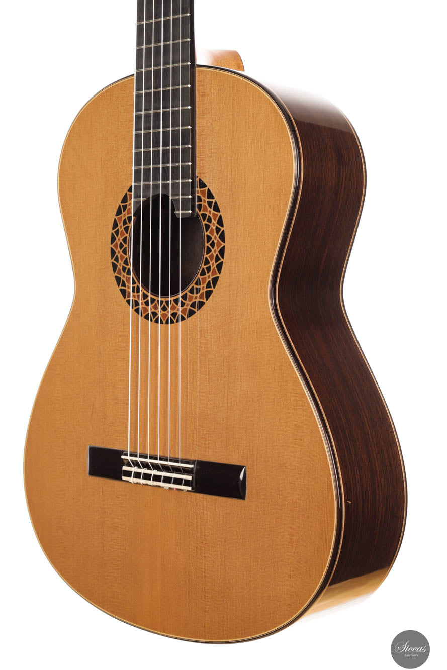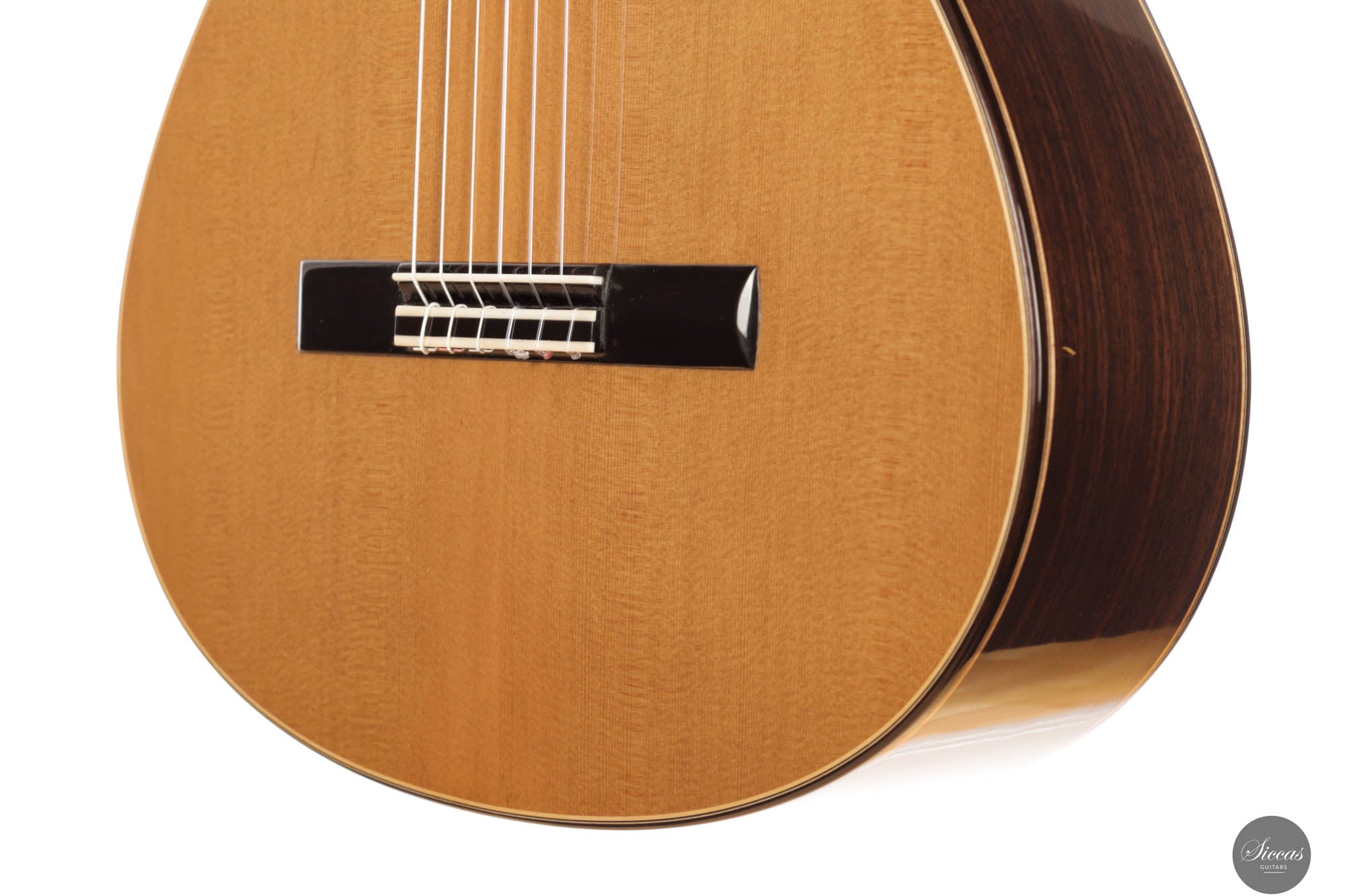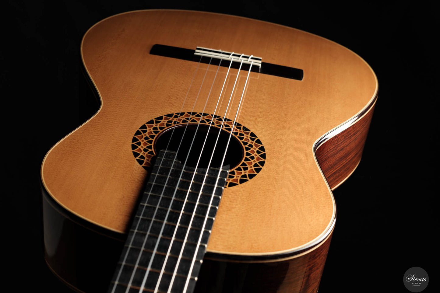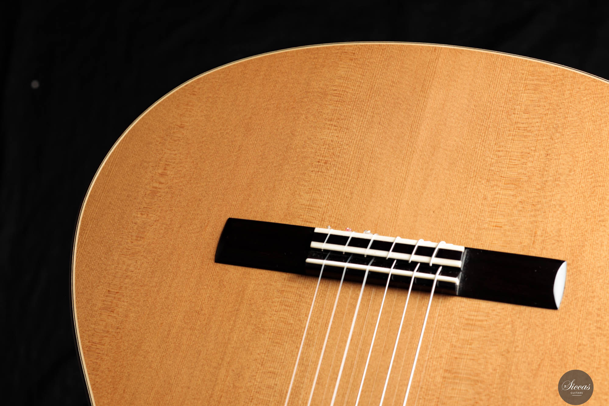 This brand-new guitar by Julio seamlessly combines the traditional artistry of the Granada school with modern innovation through its double-top construction. While honoring the rich legacy of Spanish guitar-making, this instrument offers enhanced responsiveness and playability, catering to the needs of contemporary guitarists. Its swift reaction to right-hand attacks and lively, balanced first string create a dynamic playing experience, making it a versatile option for musicians who appreciate both classic Spanish sound and modern acoustic sophistication. Despite its impressive volume, achieved through its modern double-top construction, the guitar stays true to its Spanish roots, particularly reflecting the distinctive tonal qualities and craftsmanship of the Granada school. This unique blend of powerful projection and traditional Spanish character allows the instrument to deliver a rich, resonant sound while maintaining the warmth and expressive nuance that define the Granada style.
