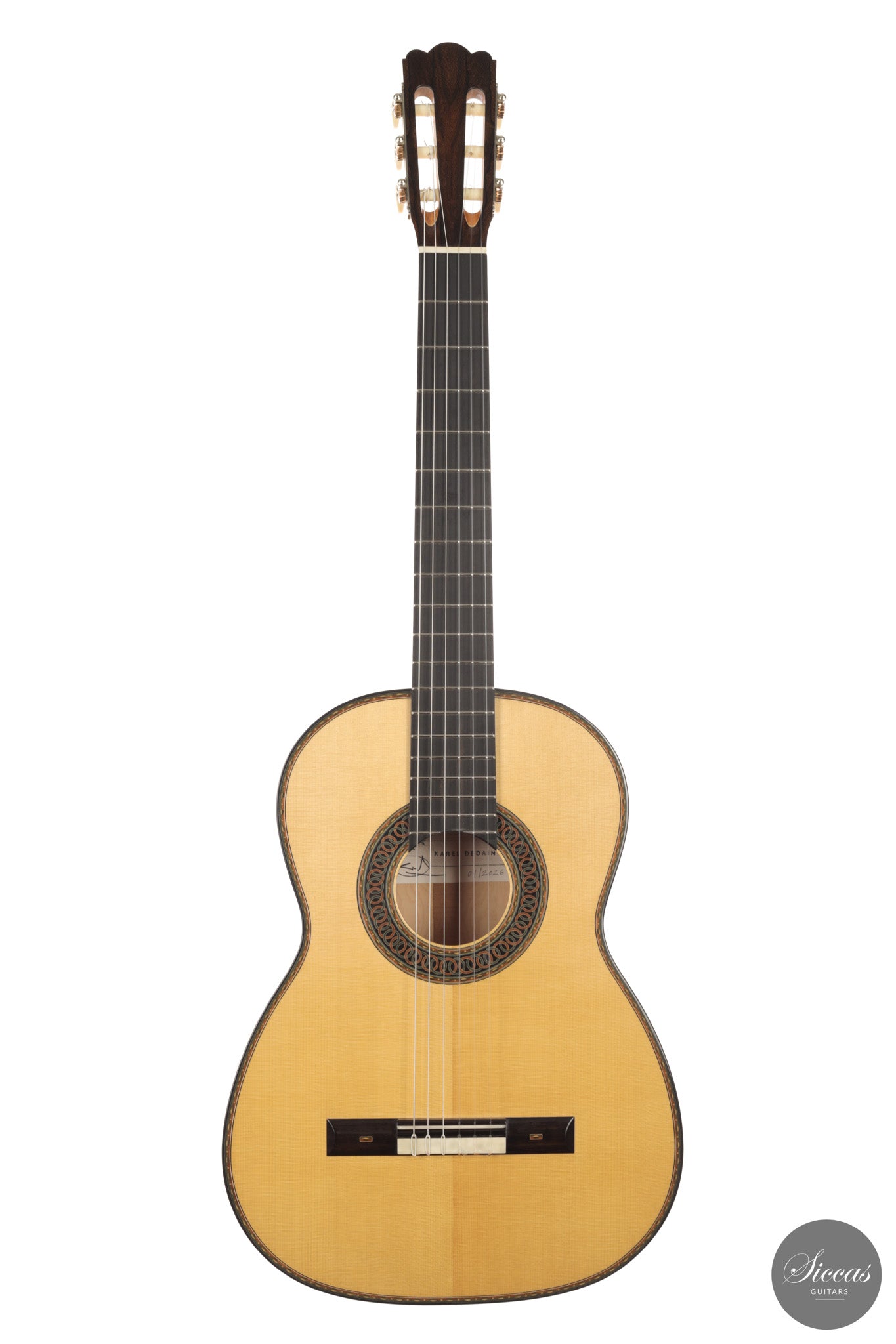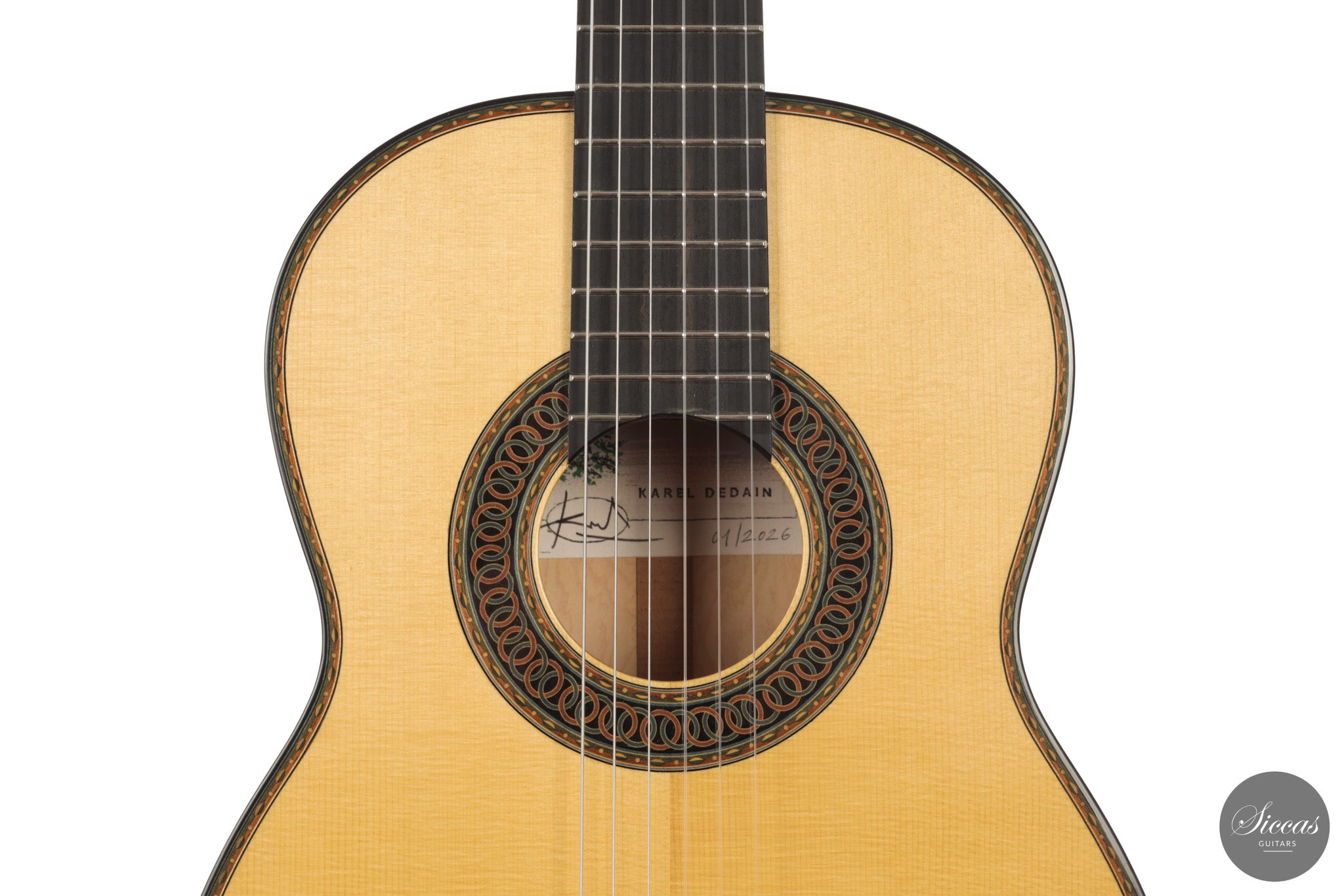 Der belgische Gitarrenbauer Karel Dedain, geboren 1976, widmet sich seit 1998 dem Gitarrenbau und arbeitet seit 2006 professionell als selbstständiger Gitarrenbauer. In Gent ansässig, baut er nur eine kleine Zahl von Instrumenten pro Jahr, was eine konzentrierte und konsequente Werkstattpraxis ermöglicht. Seine Ausbildung am Centrum voor Muziekinstrumentenbouw in Puurs bei Walter Verreydt legte den Grundstein für eine Arbeitsweise, die auf genauer Beobachtung, disziplinierter Handarbeit und einer nachhaltigen Auseinandersetzung mit der spanischen Gitarrenbautradition beruht.