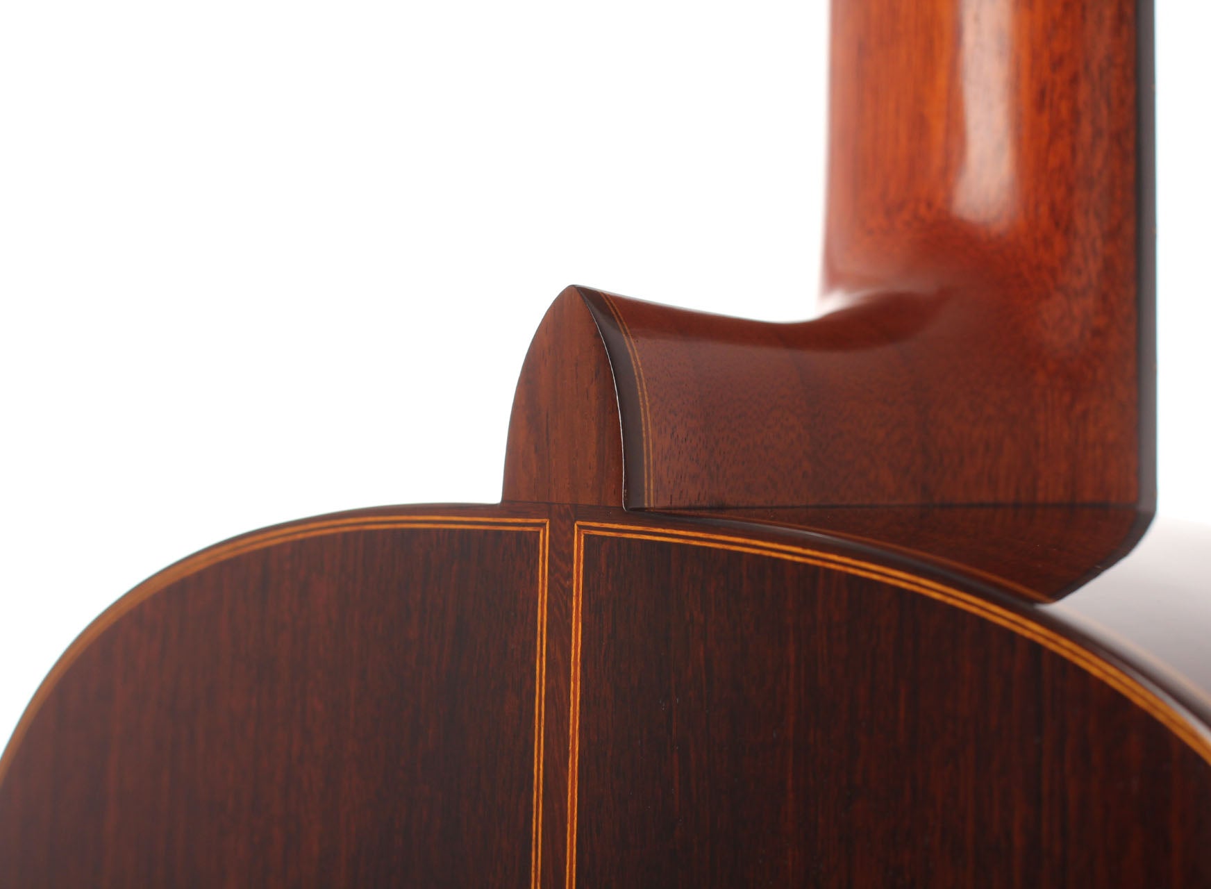 Karl-Heinz Römmich wurde 1953 geboren und baut seit über 30 Jahren Gitarren. Berühmte Gitarristen wie Xuefei Yang und Roman Viazovskiy spielen seine Gitarren. Karl-Heinzs Gitarren sind ganz dem spanischen Gitarrenbaustil gewidmet. Beste natürliche Materialien und nur beste Hölzer, die über 40 Jahre lang gelagert wurden verwendet Karl-Heinz für seine Gitarren. Veredelt werden alle seine Gitarren mit einer Schellackpolitur. Die Decke dieser Gitarre besteht aus feinster Fichte und der Boden sowie die Zargen sind aus indischem Palisander. Die Mechaniken sind von Fustero. Ein Hiscox Pro II Hartschalenkoffer ist inklusive.