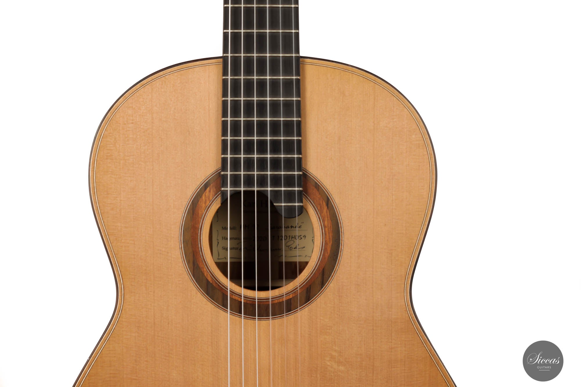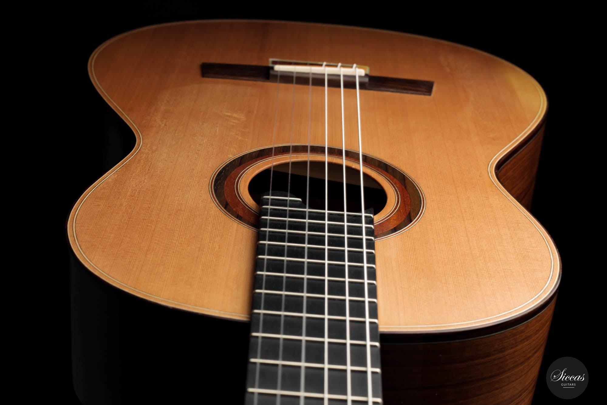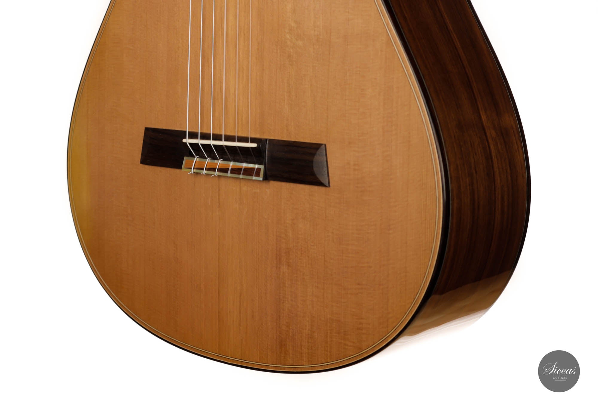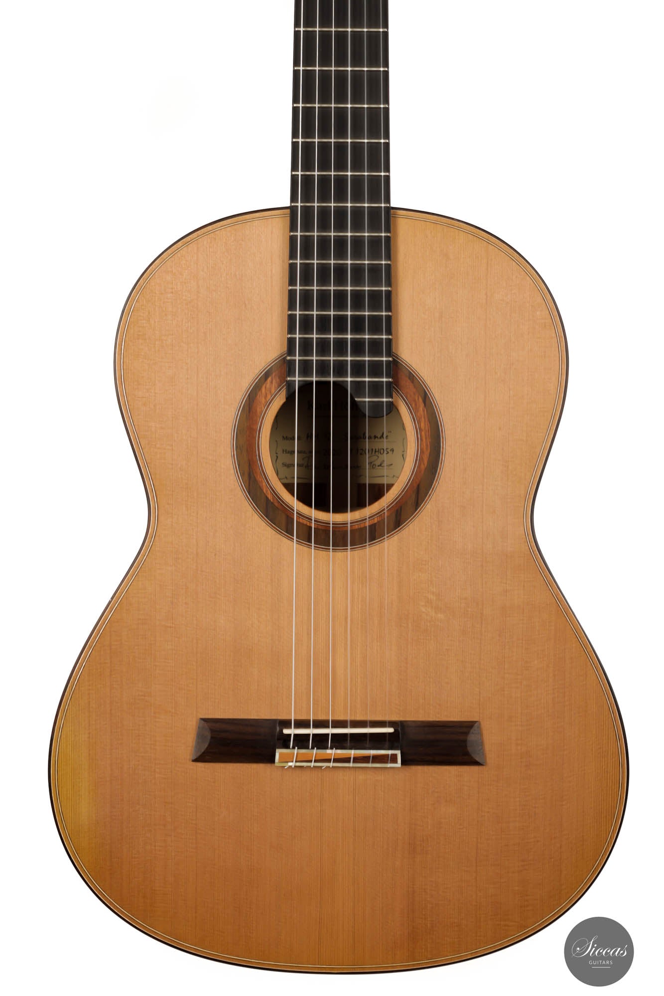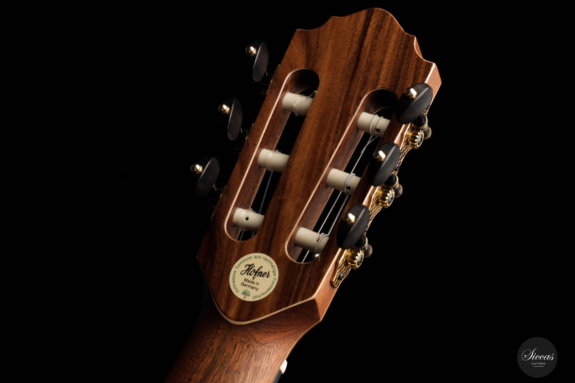 Die Karl Höfner HM 92 Sarabande Gitarre ist ein großartiges Instrument. Ihr Korpus ist aus feinstem Santos-Palisander gefertigt, der bis zur Perfektion poliert wurde. Die Zederndecke wurde über viele Jahre luftgetrocknet, was ihr einen einzigartigen Charakter und Ton verleiht. Die Decke ist mit einem sehr dünnen Oberflächenfinish versiegelt, das den natürlichen Klang des Holzes durchscheinen lässt. Der Hals ist mit einem matten Finish versehen, das einen angenehmen Griff ermöglicht und das Spielerlebnis insgesamt verbessert. Die HM 92 Sarabande-Gitarre bietet eine hervorragende Ausgewogenheit und ist für eine Vielzahl von Gitarristen geeignet, vom Schüler bis zum Profi. Ihr satter und warmer Ton, kombiniert mit ihrer außergewöhnlichen Bespielbarkeit, macht das Spielen zu einer Freude. Diese Gitarre ist ein echtes Zeugnis für das Fachwissen und die Hingabe von Karl Höfner, ein Erbe, das von der Firma seit über einem Jahrhundert weitergeführt wird. Als gebrauchtes Instrument ist diese Gitarre in gutem Zustand mit einigen Spielspuren. Diese sind jedoch rein kosmetischer Natur und beeinträchtigen den Klang der Gitarre in keiner Weise.