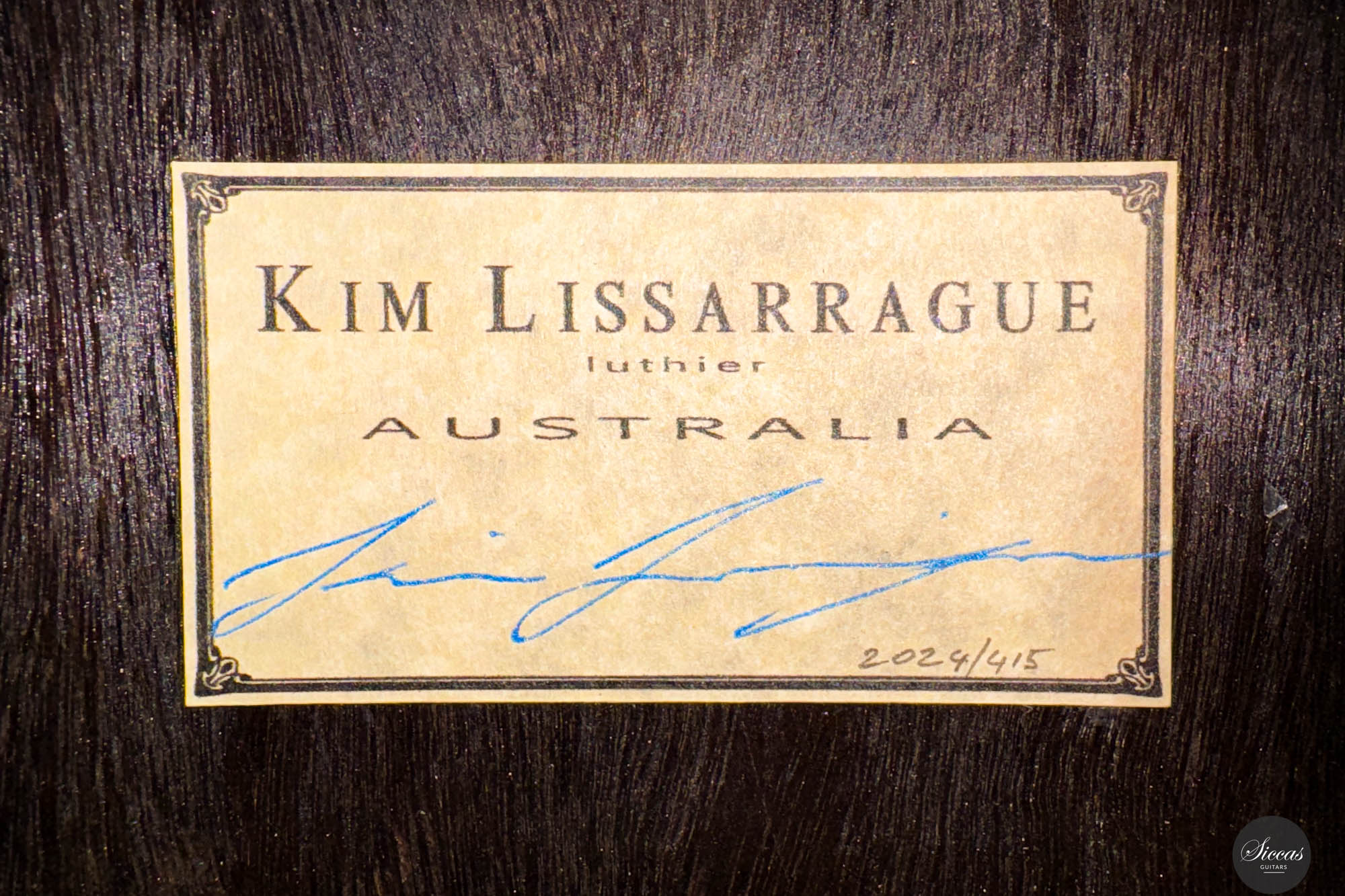 Kim Lissarrague ist ein anerkannter australischer Gitarrenbauer. Er begann bereits im Alter von dreizehn Jahren mit dem Gitarrenbau und ist heute in den Blue Mountains westlich von Sydney ansässig. Kim fertigt eine begrenzte Anzahl hochwertiger Gitarren pro Jahr und entwickelte seine eigenen Designs auf der Grundlage der “ australischen Schule “ des Gitarrenbaus. Mit anderen Worten, seine Gitarren sind mit einer Gitterstruktur und einem gewölbten Rücken versehen, was eine große Projektion, Klarheit und Sustain bietet.