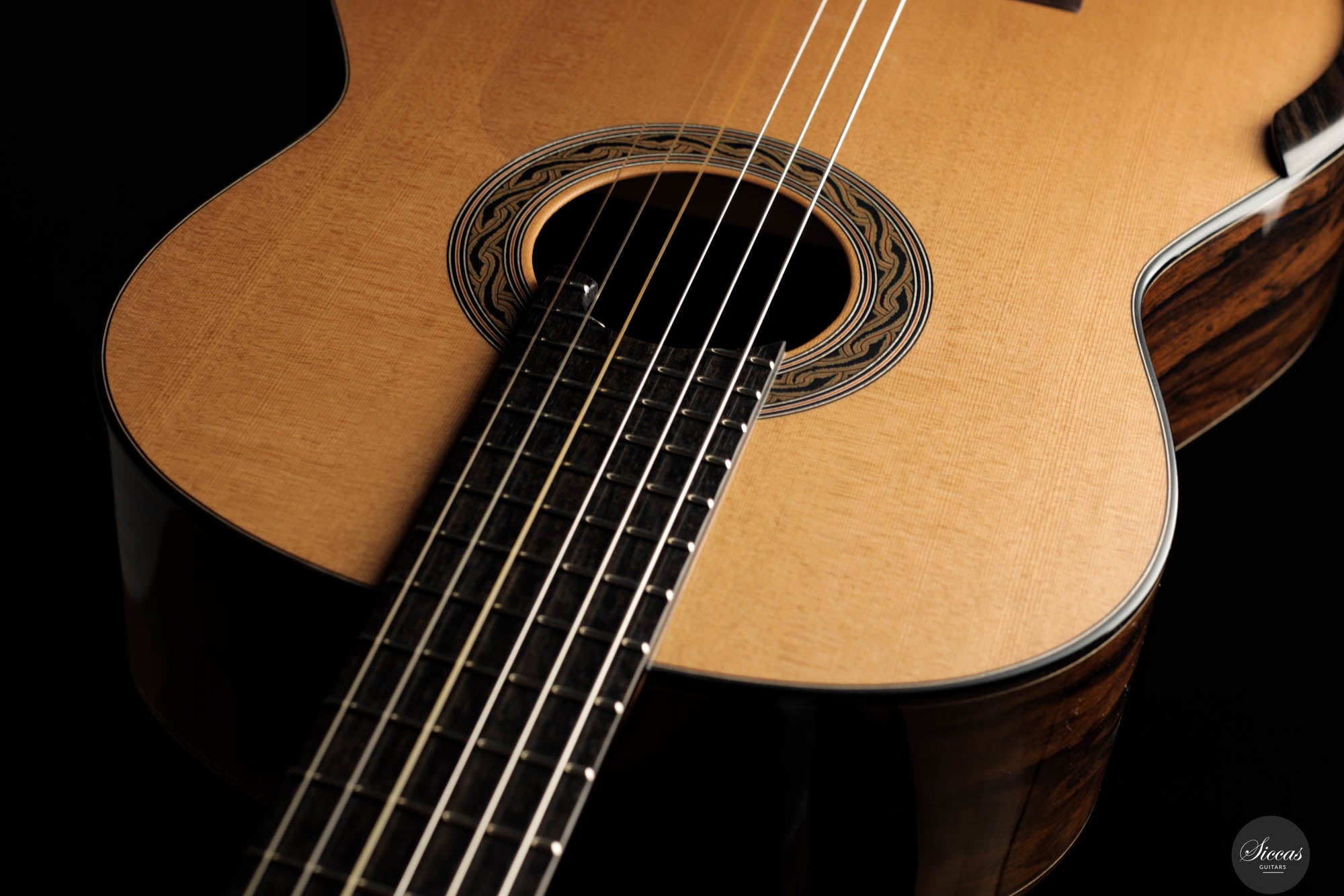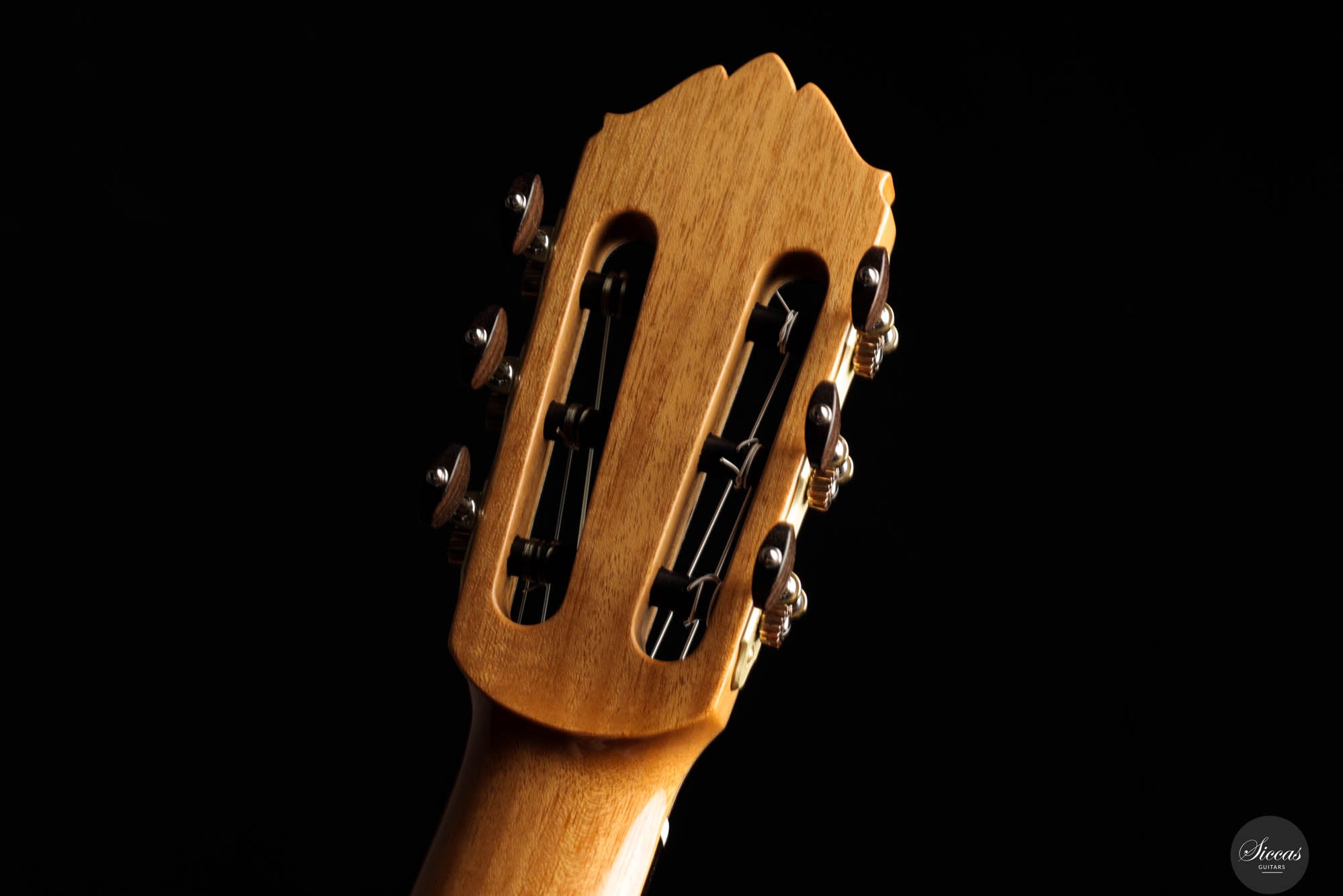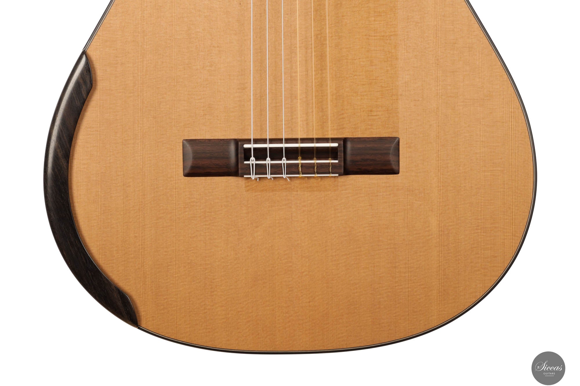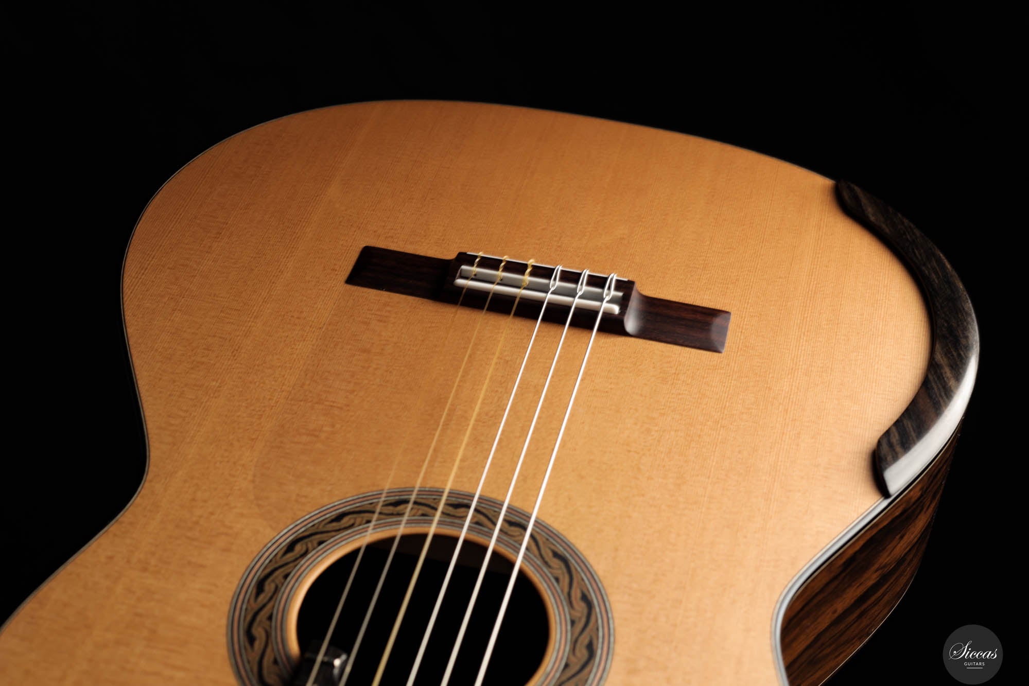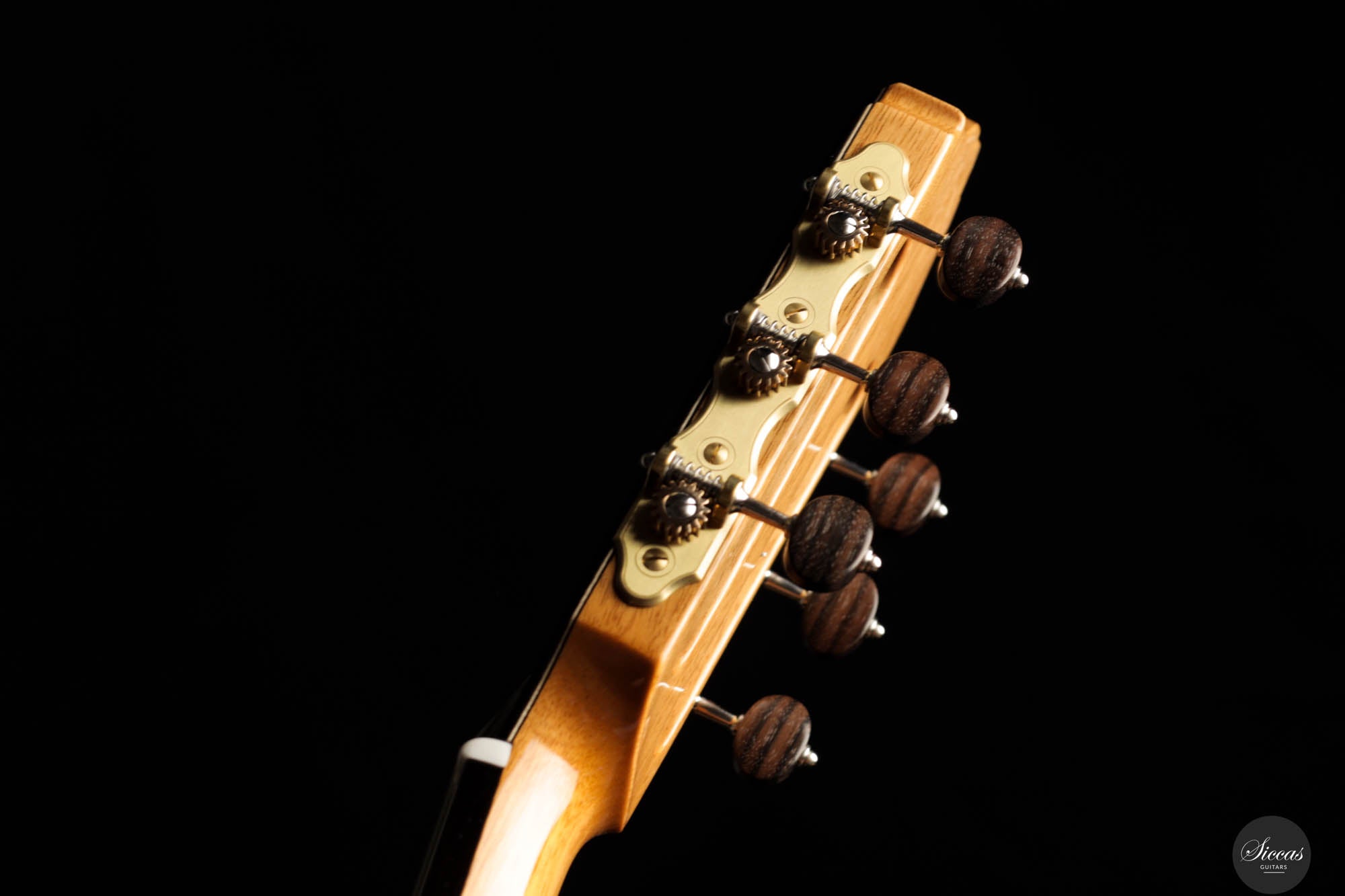 Die 2024 Kim Lissarrague Gitarre, nummeriert mit 415, zeichnet sich als wahre Kraftmaschine unter den zeitgenössischen klassischen Gitarren aus. Dieses Instrument strahlt eine ausdrucksstarke Energie aus, die es unter die Top 5 der leistungsstärksten Gitarren in seiner Kategorie platziert. Sein bemerkenswertes Klangvolumen wird durch einen reichen und flexiblen Ton ergänzt, der eine breite Palette an dynamischen Möglichkeiten bietet. Gefertigt mit einer dünnen, gitterverstärkten Zederndecke und ergänzt durch Ziricote für Rücken und Seiten, kombiniert sie kraftvolle Klangprojektion mit warmem, präzisem Klangcharakter. Diese Gitarre ist nicht nur ein Zeugnis hochwertiger Handwerkskunst, sondern auch eine vorbildliche Darstellung der innovativen Designansätze von Kim Lissarrague.