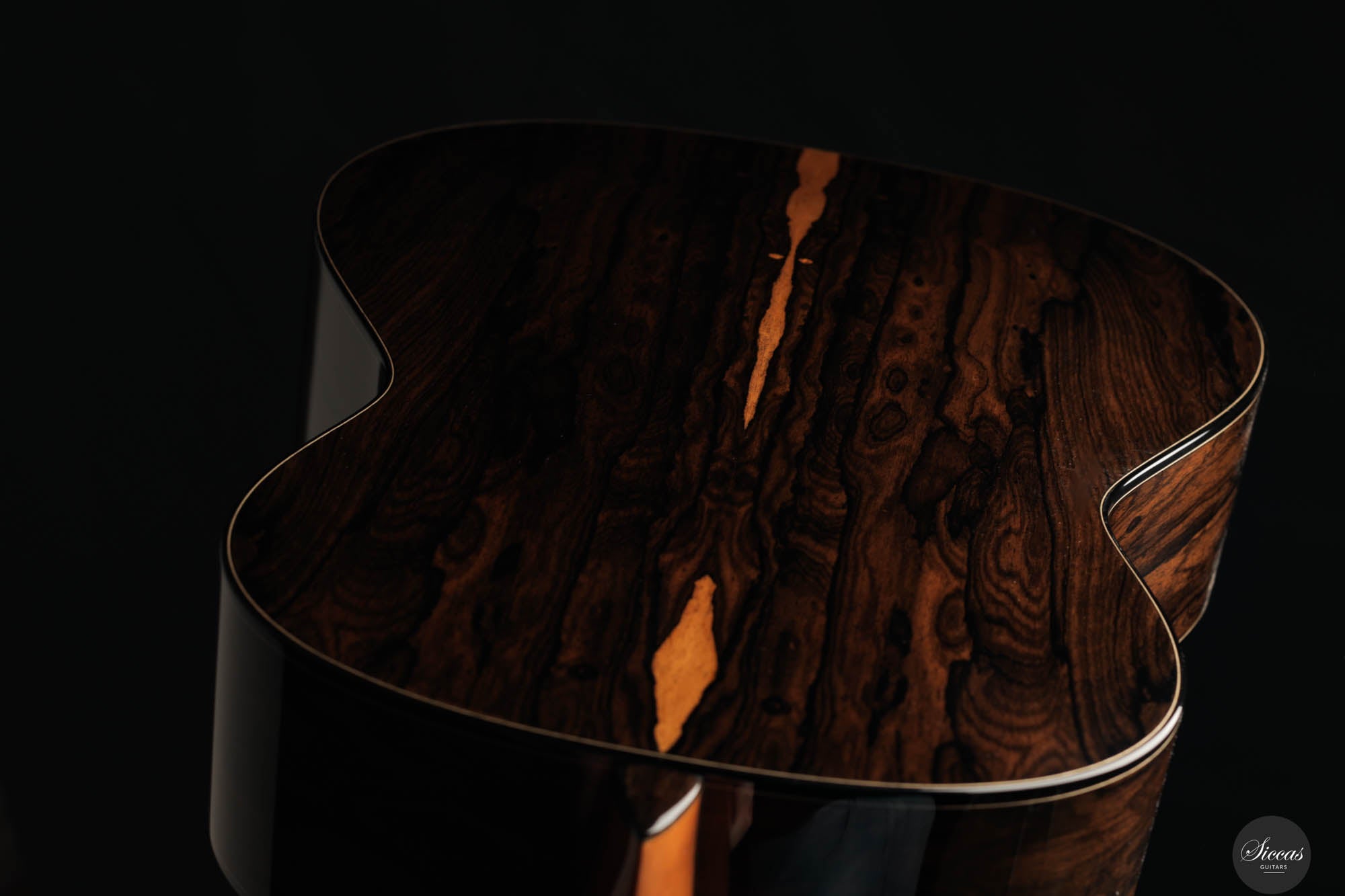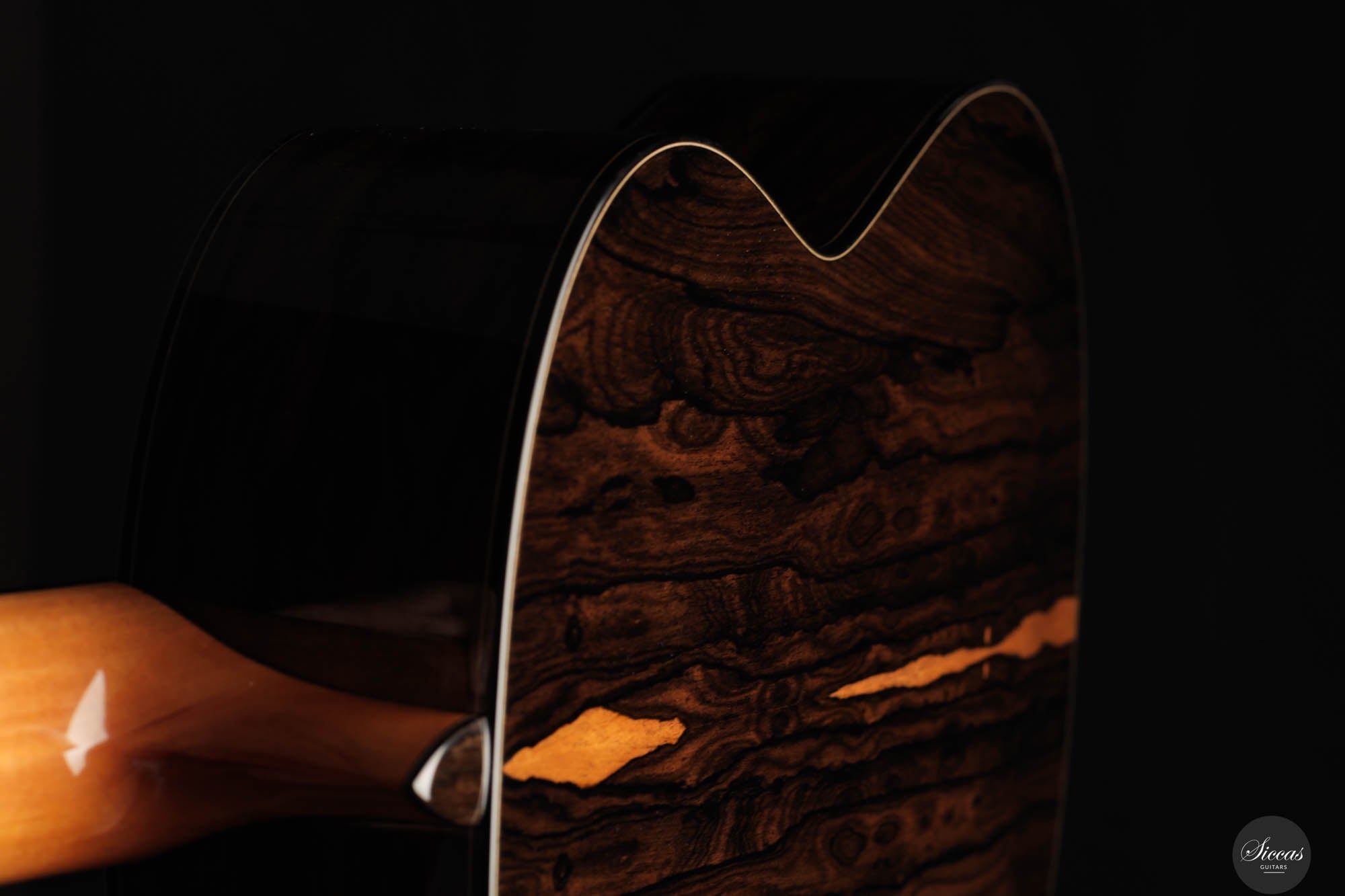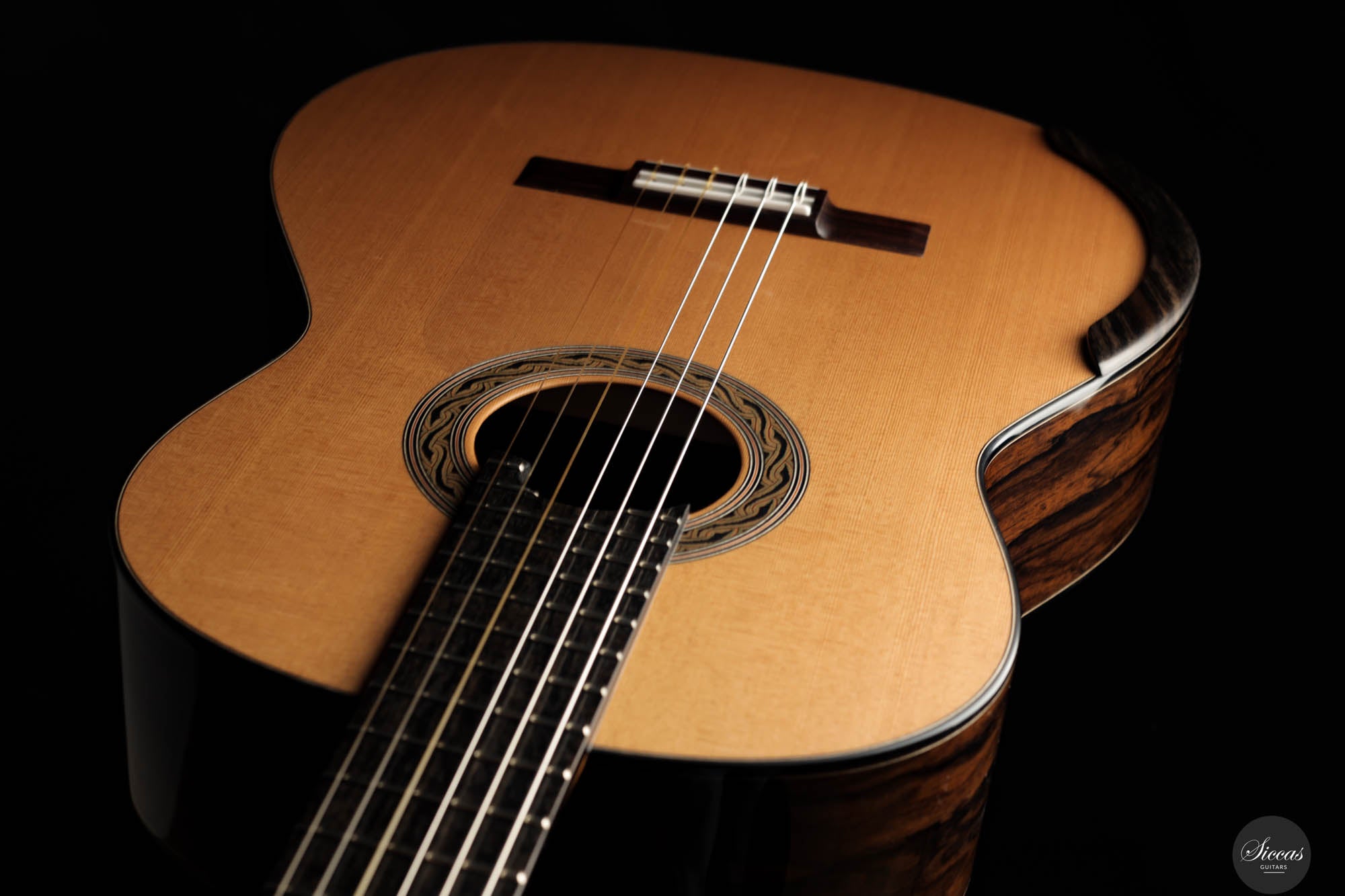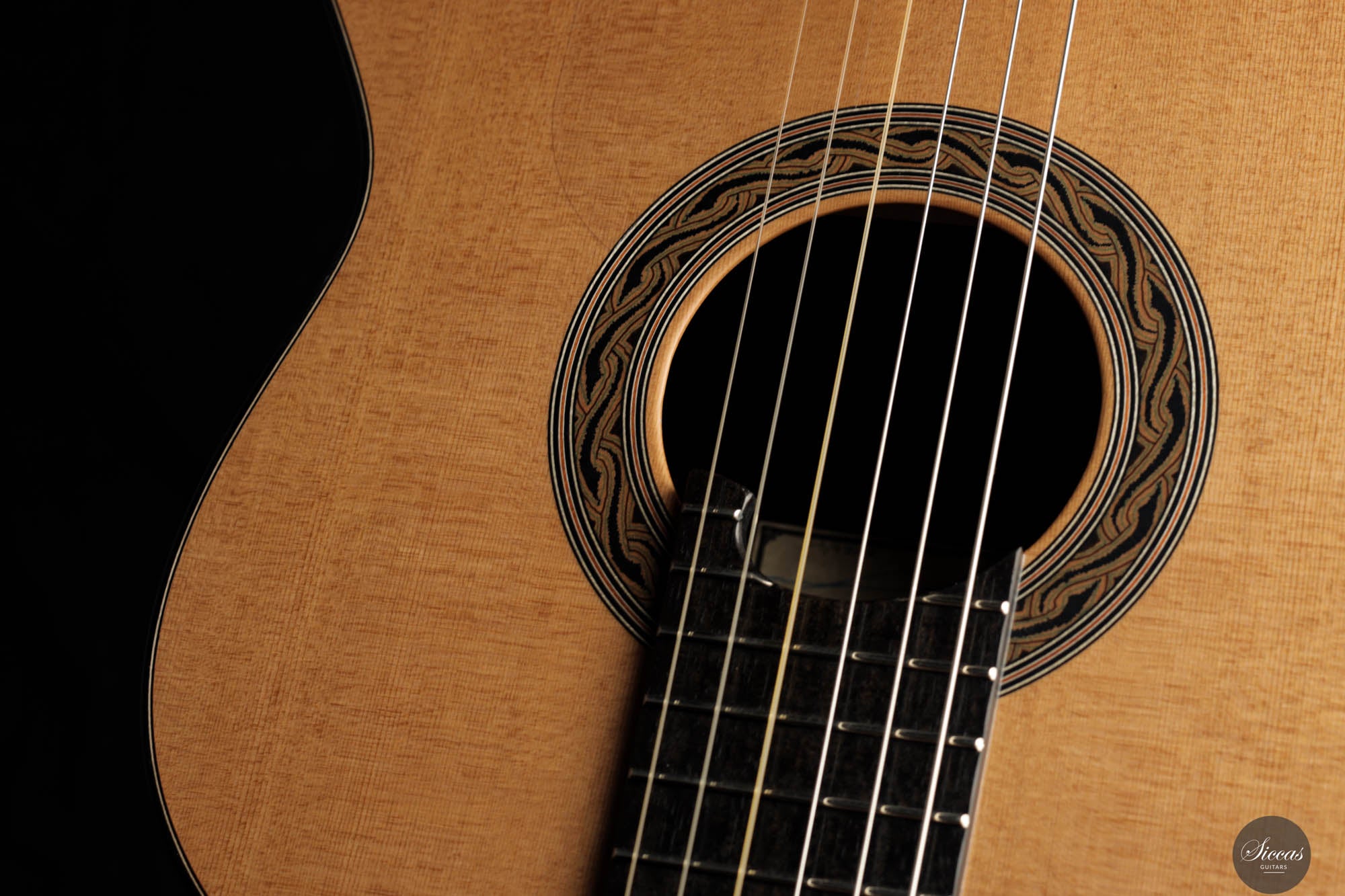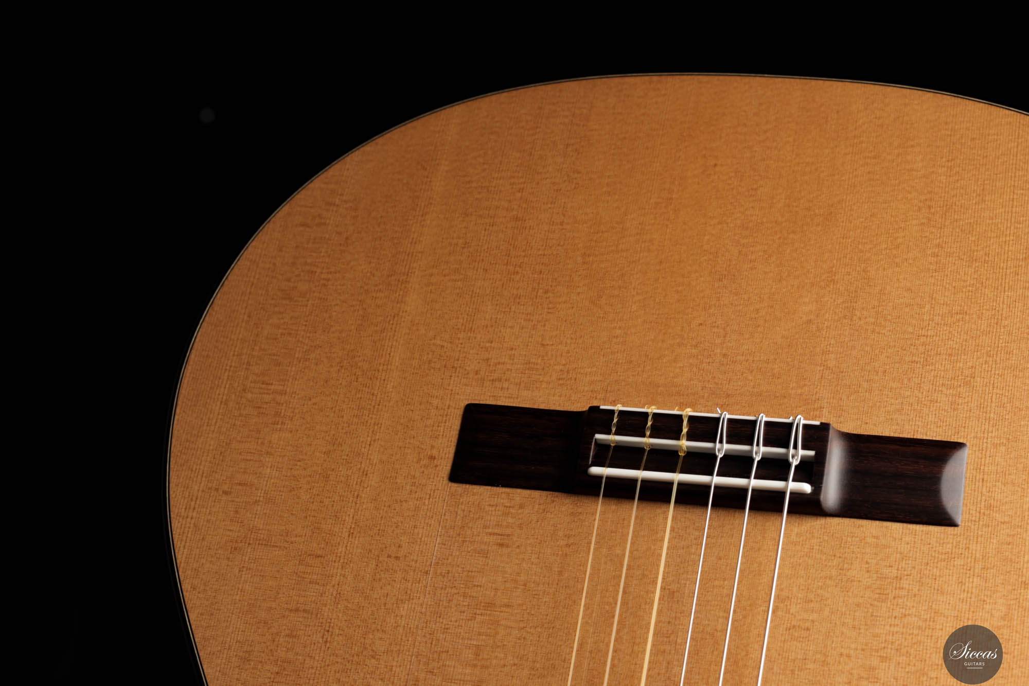 Die 2024 Kim Lissarrague Gitarre, nummeriert mit 415, zeichnet sich als wahre Kraftmaschine unter den zeitgenössischen klassischen Gitarren aus. Dieses Instrument strahlt eine ausdrucksstarke Energie aus, die es unter die Top 5 der leistungsstärksten Gitarren in seiner Kategorie platziert. Sein bemerkenswertes Klangvolumen wird durch einen reichen und flexiblen Ton ergänzt, der eine breite Palette an dynamischen Möglichkeiten bietet. Gefertigt mit einer dünnen, gitterverstärkten Zederndecke und ergänzt durch Ziricote für Rücken und Seiten, kombiniert sie kraftvolle Klangprojektion mit warmem, präzisem Klangcharakter. Diese Gitarre ist nicht nur ein Zeugnis hochwertiger Handwerkskunst, sondern auch eine vorbildliche Darstellung der innovativen Designansätze von Kim Lissarrague.