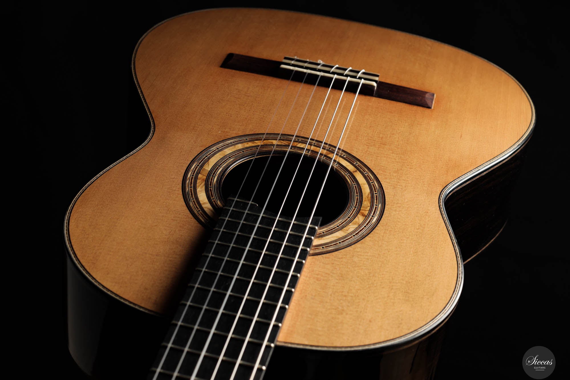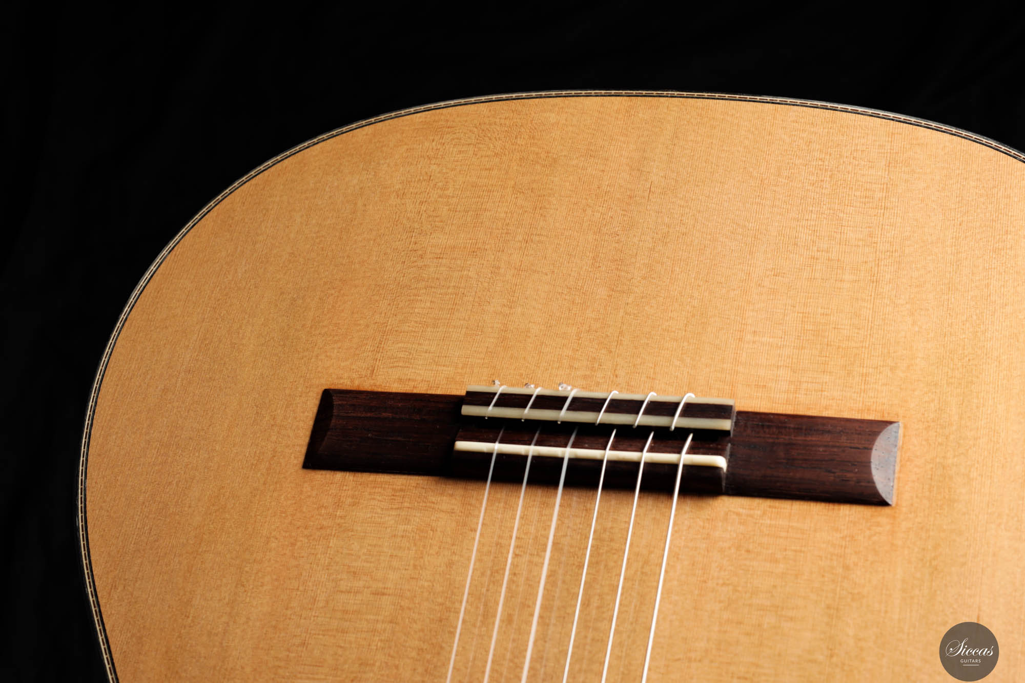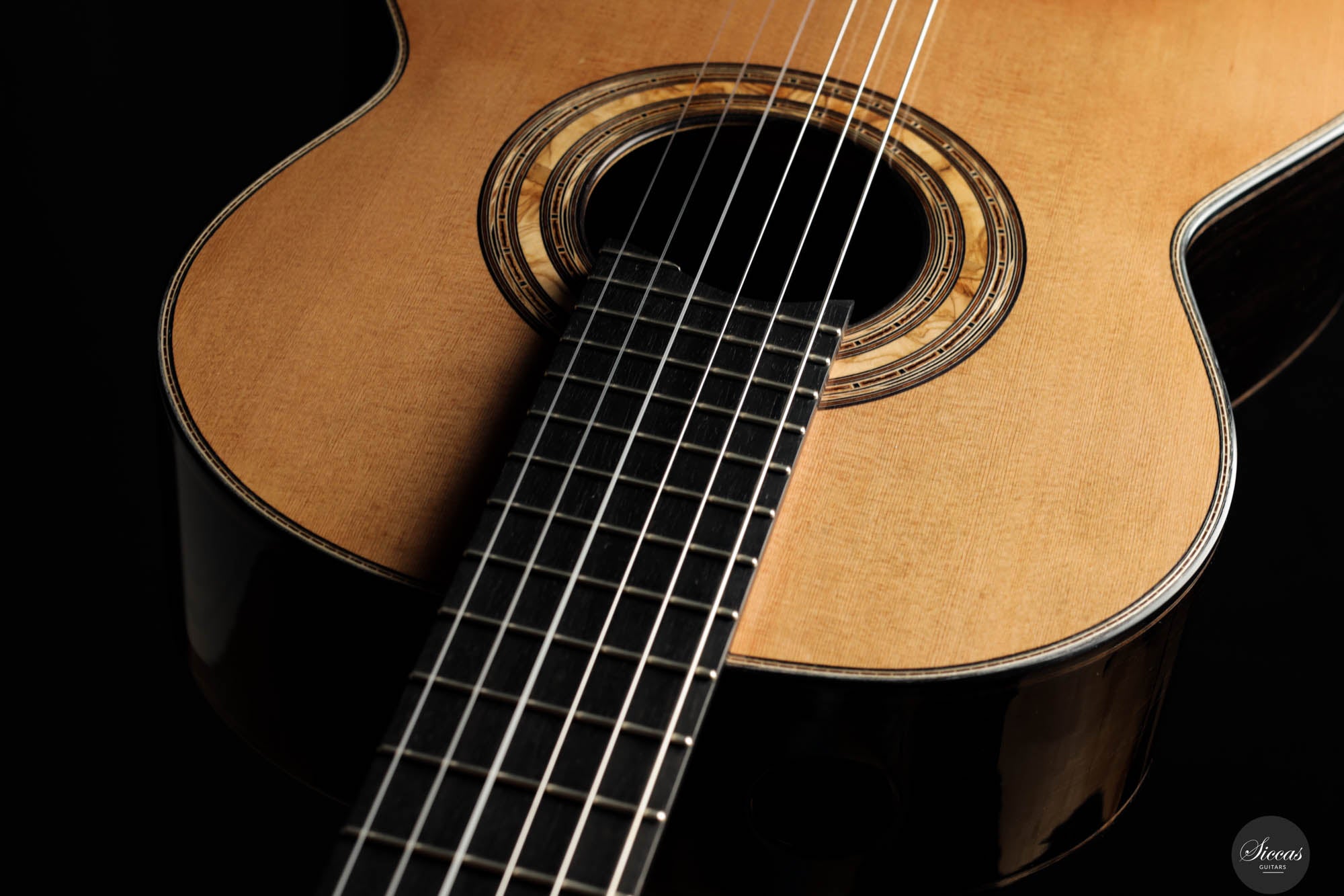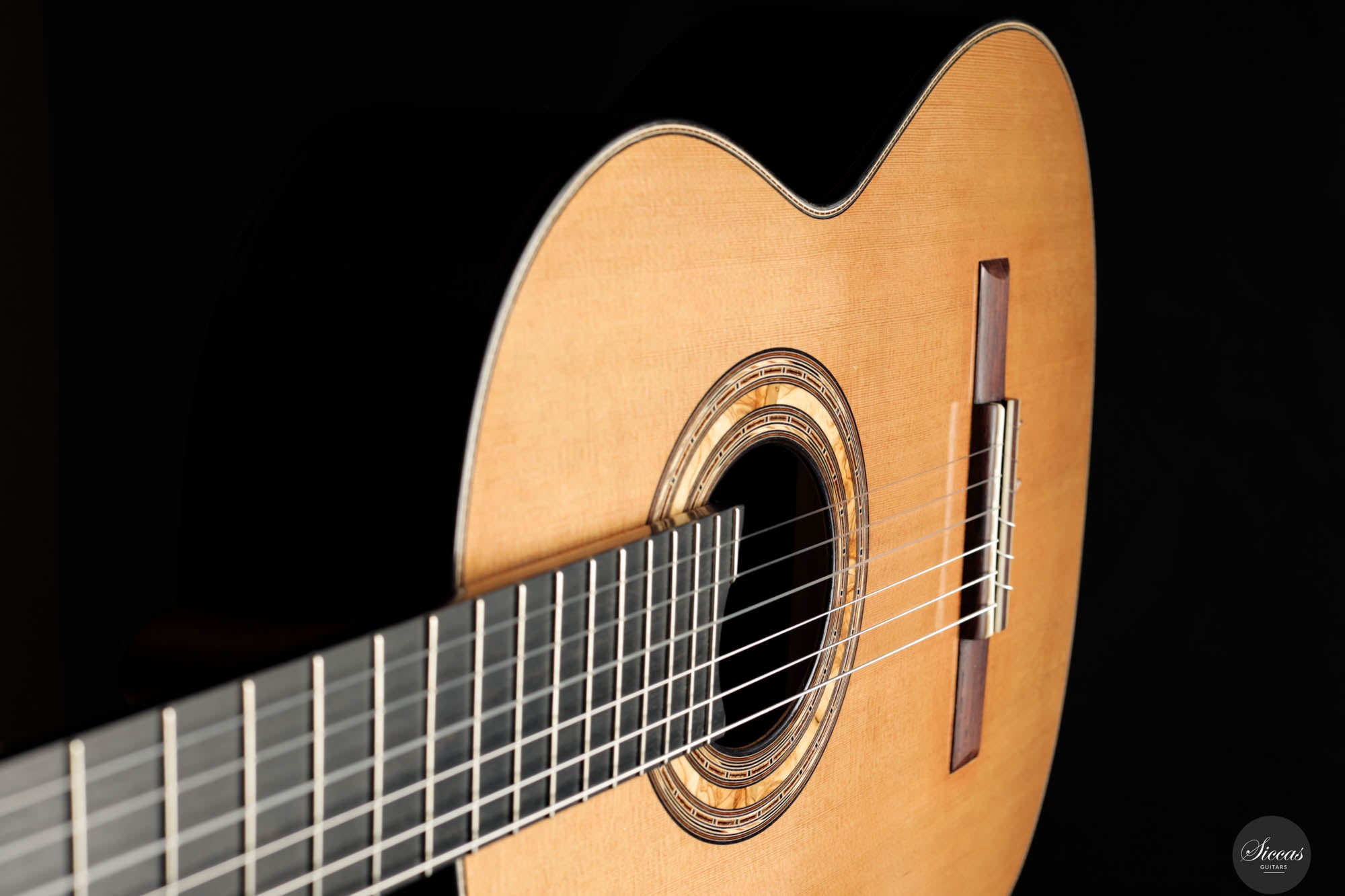 Die klassische Gitarre mit ihren weichen Nylonsaiten und ihrem charakteristischen Timbre ist zum Symbol der Kammermusik, der spanischen Tradition und des Konzertrepertoires geworden. Ihre moderne Form prägte Antonio de Torres im 19. Jahrhundert, indem er den Standard für Korpus, Fächerbeleistung und die 65-Zentimeter-Mensur setzte, die bis heute verwendet werden. Instrumente dieser Kategorie eröffnen eine reiche Palette von den feinen romantischen Miniaturen Tárregas bis zu den majestätischen Konzerten Rodrigos. Hier finden Sie Gitarren, die historische Kontinuität bewahren und zugleich zu neuen Interpretationen anregen.