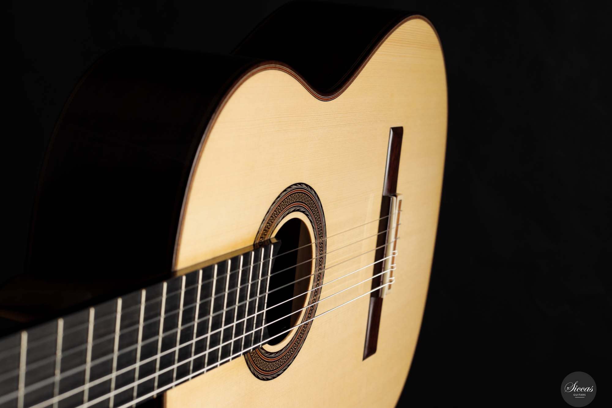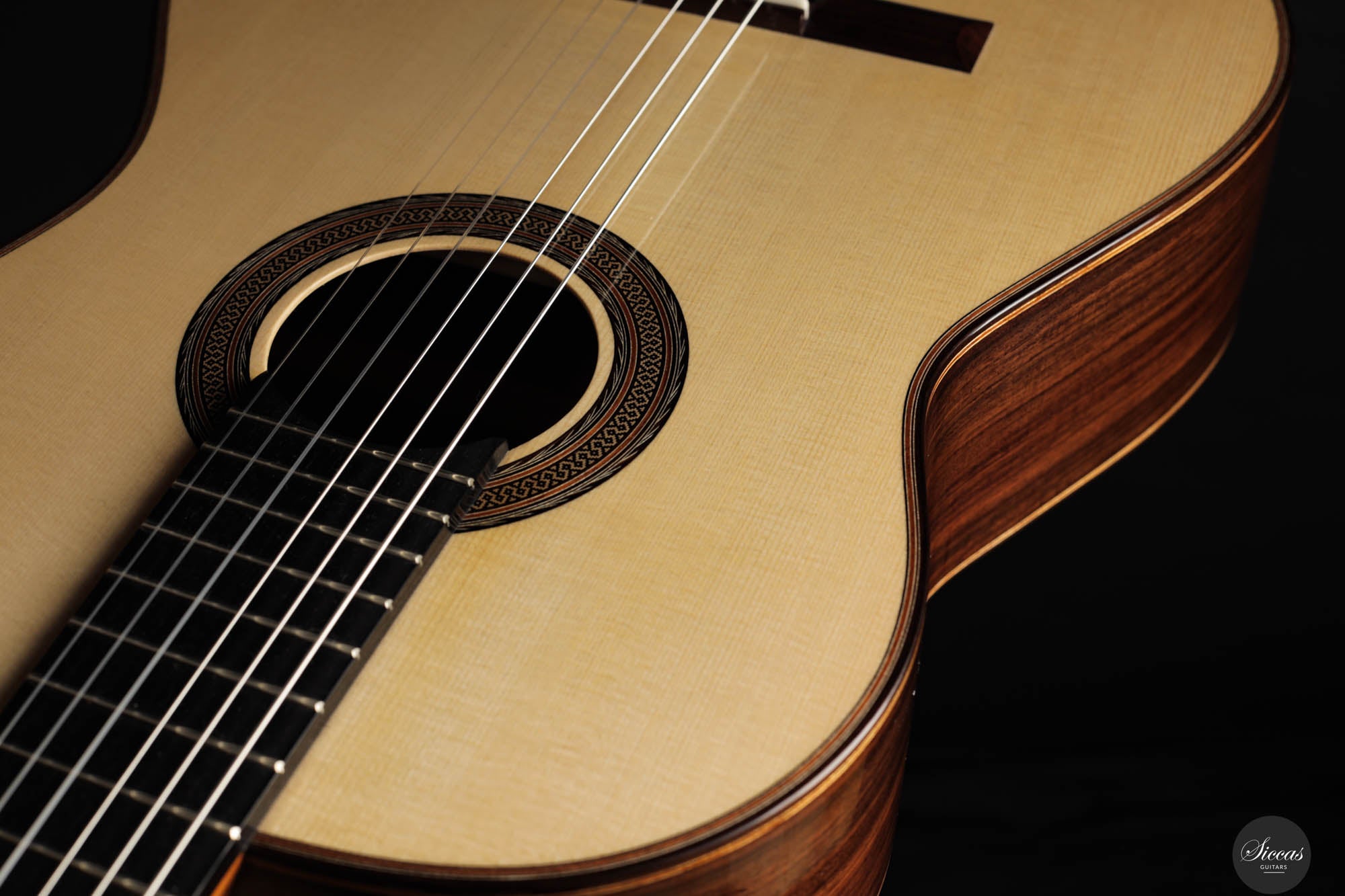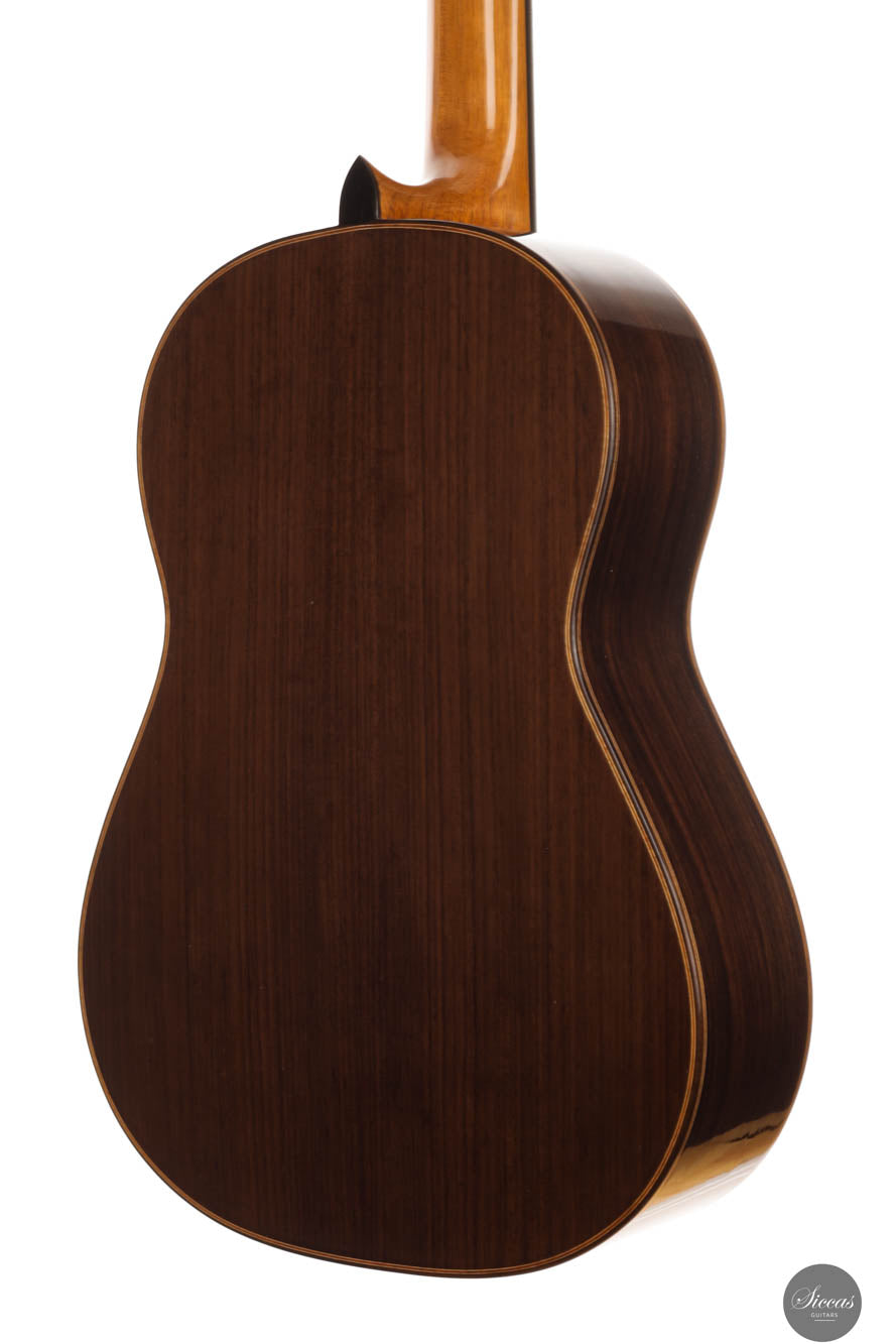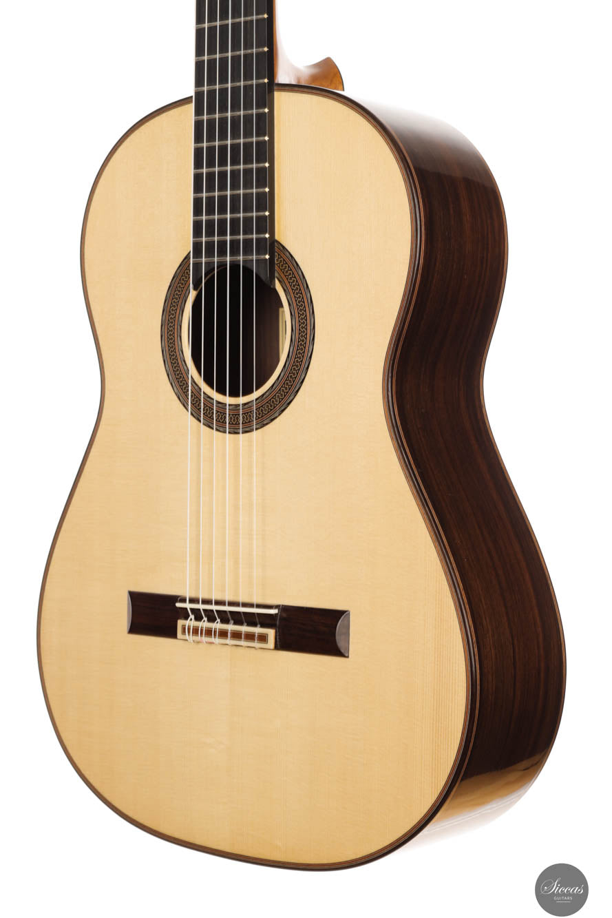 Dieses 2024 Konzertmodell ist ein herausragendes Beispiel für Gitarren mit Lattice-Bracing, die sowohl in der Tradition verwurzelt als auch mit moderner Innovation durchdrungen sind. Das sorgfältig umgesetzte Lattice-Beleistung-Muster, aus Fichtenholz gefertigt und an jeder Verbindung mit Zedernholz verstärkt, verleiht dem Instrument sowohl Stabilität als auch Flexibilität. Die visuelle Anziehungskraft der Gitarre, insbesondere die kunstvoll gestaltete Rosette, erinnert subtil an die Ästhetik des berühmten Enrique Garcia und fesselt den Betrachter. Doch die Gitarre überzeugt nicht nur optisch – sie strahlt eine harmonische Aura aus, die sich mühelos in ihrem klanglichen Ausdruck widerspiegelt. Beim Anschlagen der Saiten reagiert die Decke unmittelbar und entfaltet ein reiches, samtiges Klangspektrum voller Tiefe und Raffinesse.