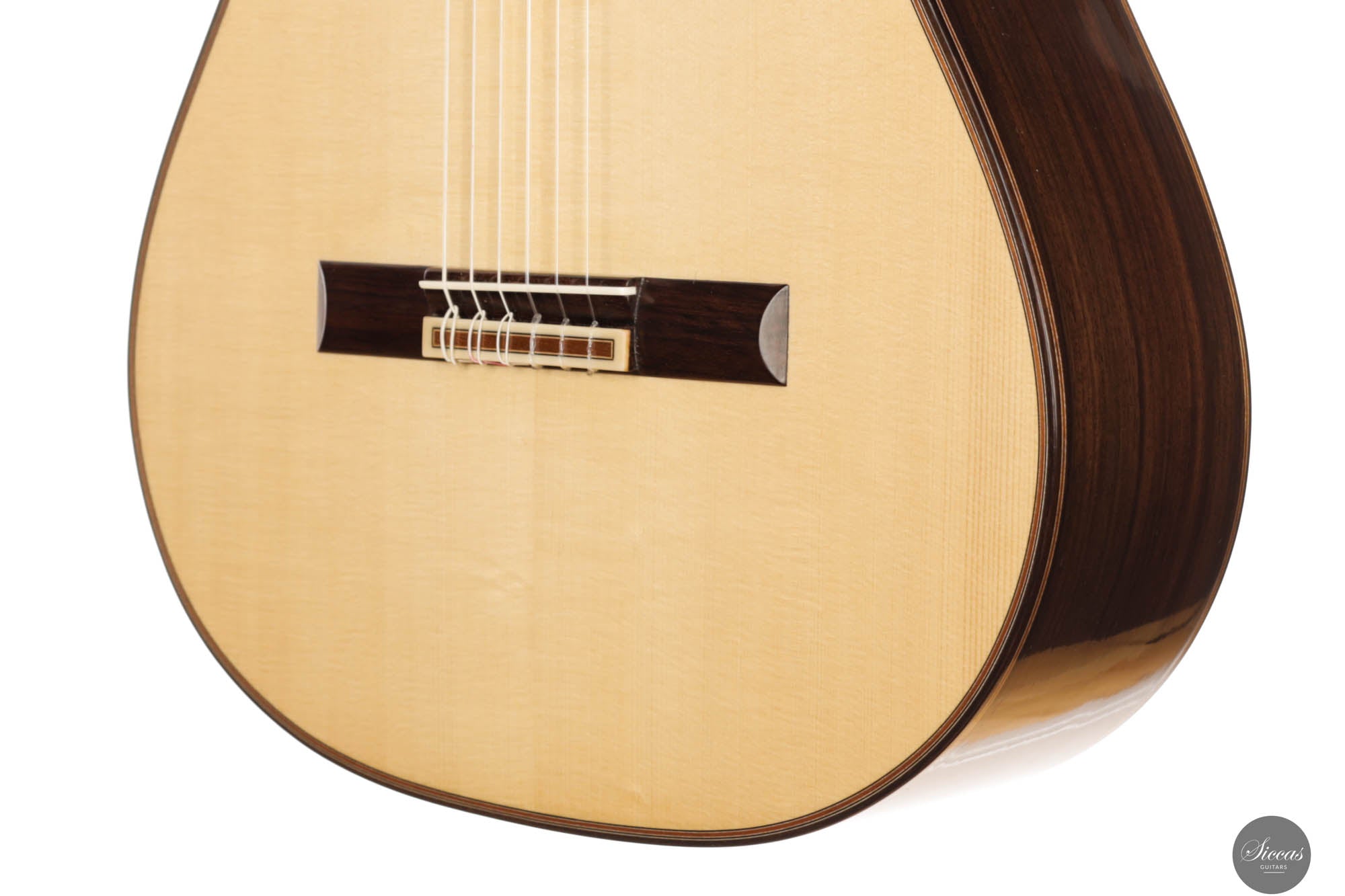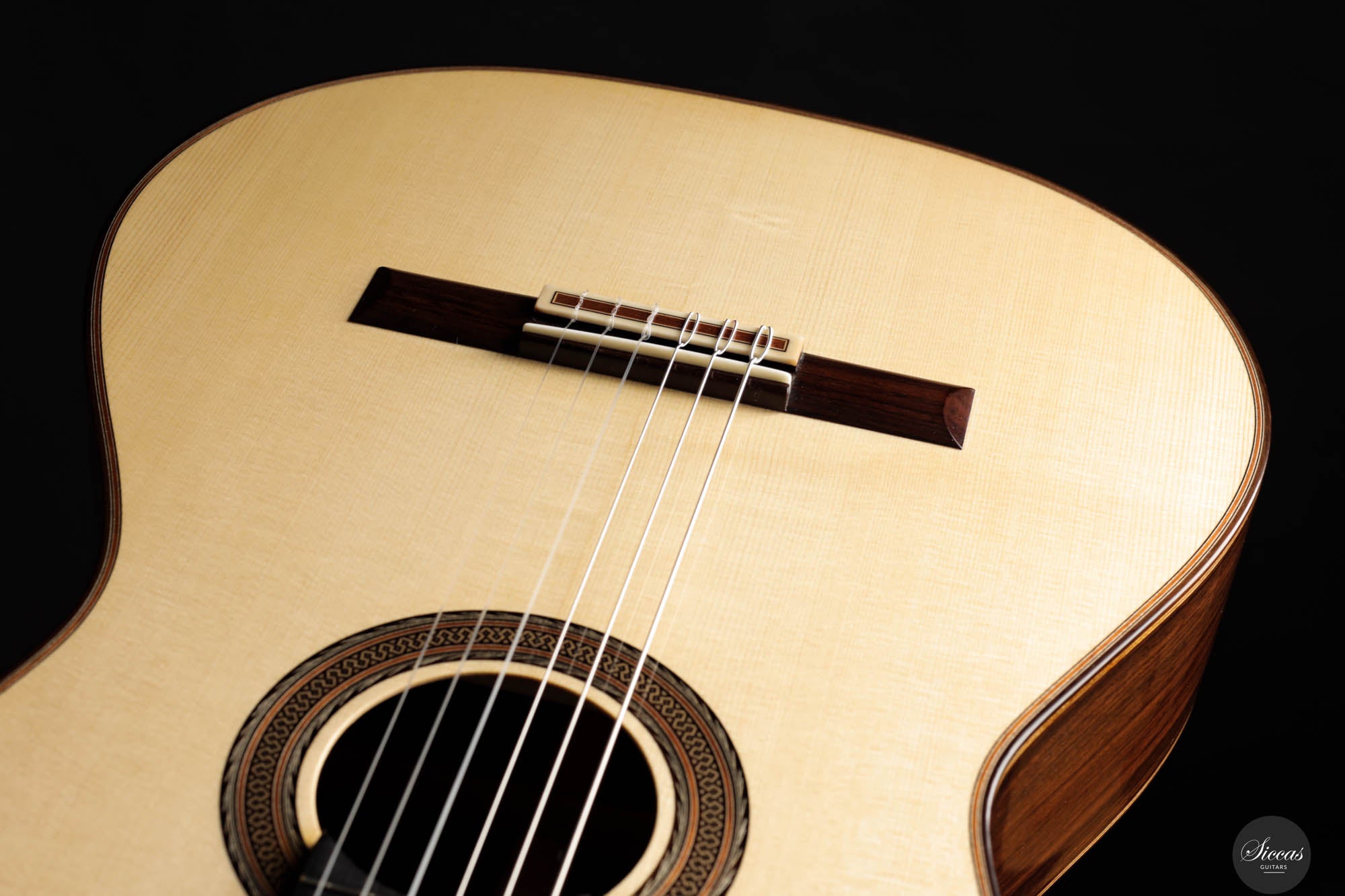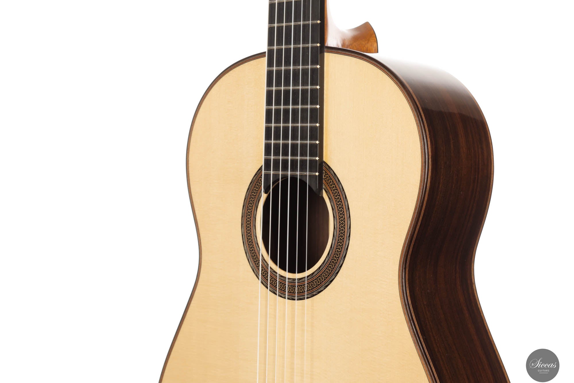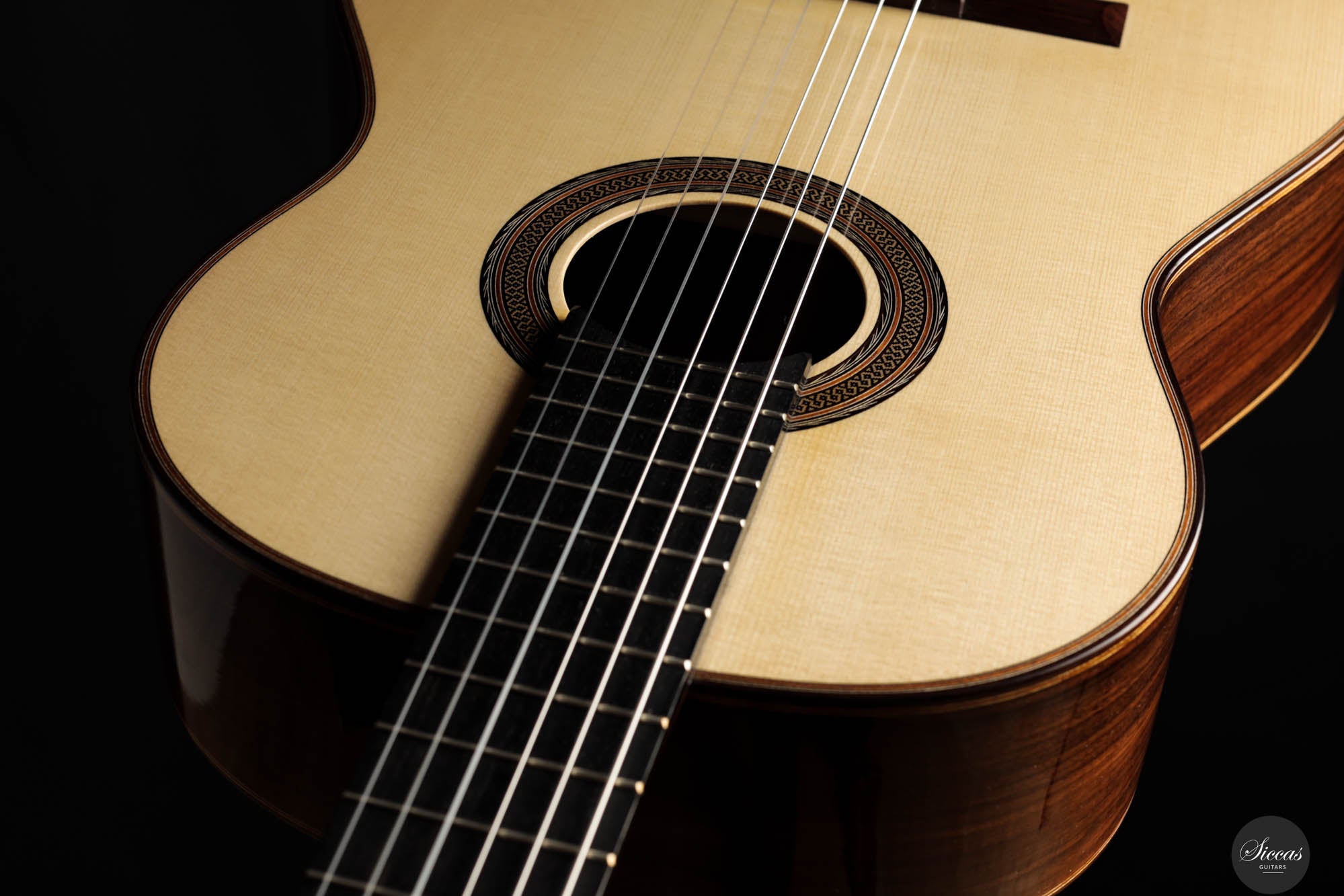 Dieses 2024 Konzertmodell ist ein herausragendes Beispiel für Gitarren mit Lattice-Bracing, die sowohl in der Tradition verwurzelt als auch mit moderner Innovation durchdrungen sind. Das sorgfältig umgesetzte Lattice-Beleistung-Muster, aus Fichtenholz gefertigt und an jeder Verbindung mit Zedernholz verstärkt, verleiht dem Instrument sowohl Stabilität als auch Flexibilität. Die visuelle Anziehungskraft der Gitarre, insbesondere die kunstvoll gestaltete Rosette, erinnert subtil an die Ästhetik des berühmten Enrique Garcia und fesselt den Betrachter. Doch die Gitarre überzeugt nicht nur optisch – sie strahlt eine harmonische Aura aus, die sich mühelos in ihrem klanglichen Ausdruck widerspiegelt. Beim Anschlagen der Saiten reagiert die Decke unmittelbar und entfaltet ein reiches, samtiges Klangspektrum voller Tiefe und Raffinesse.