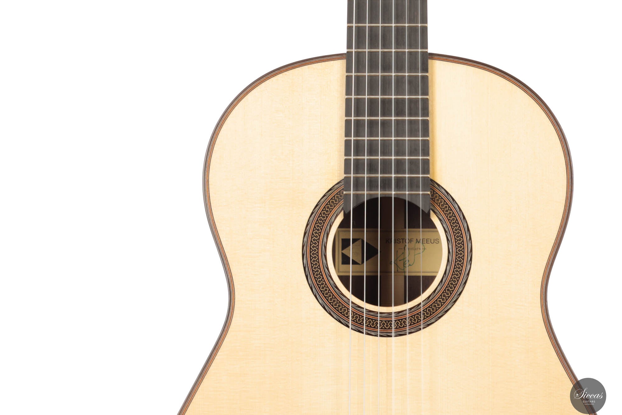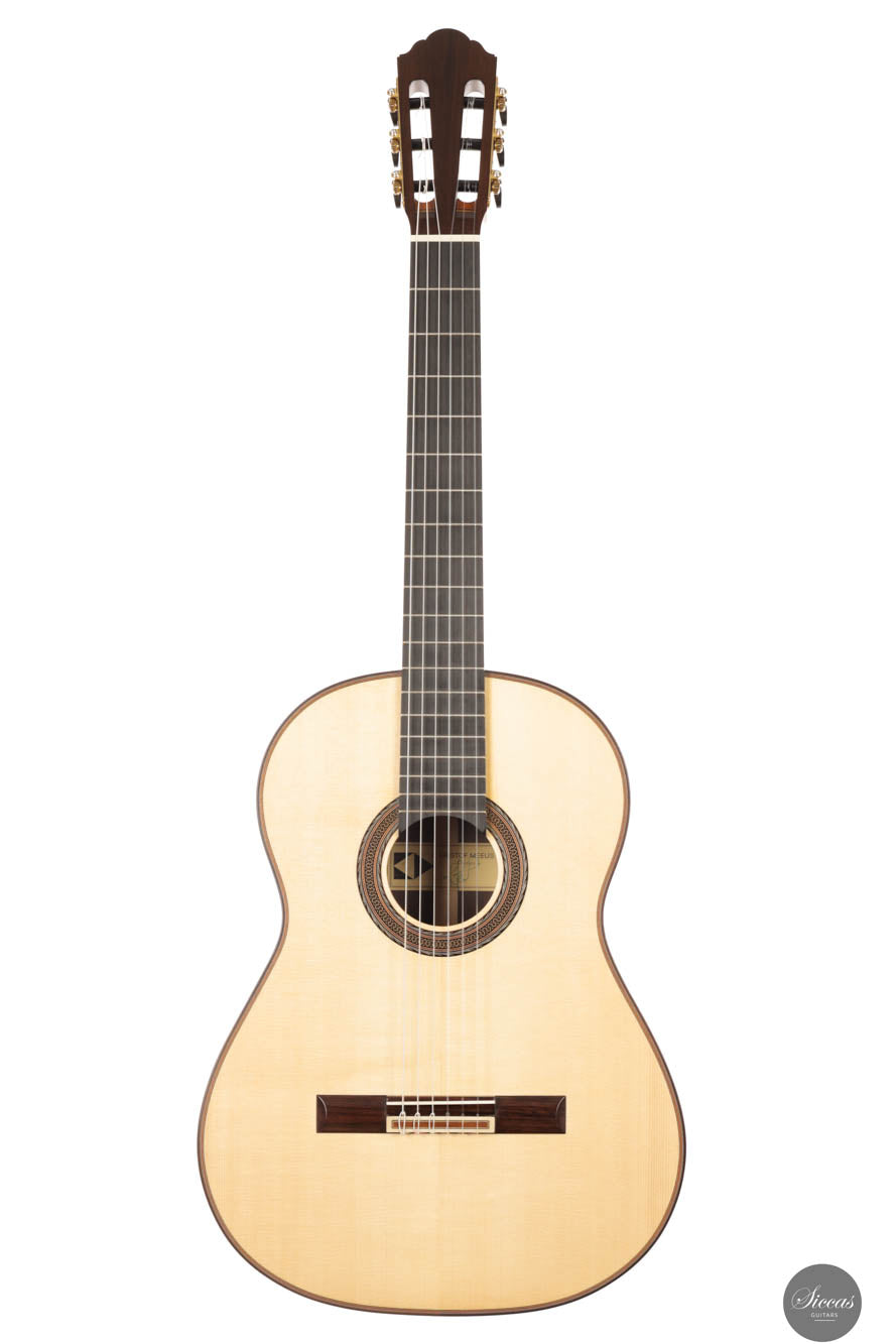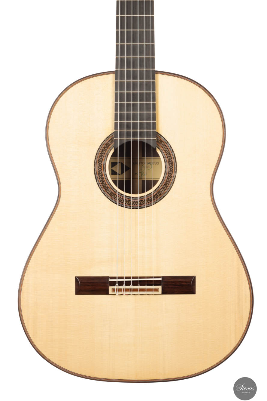 Nach einem Master in Soziologie trat Kristof Meeus 2006 dem Centrum voor Muziekinstrumentenbouw (CMB) in Puurs, Belgien, bei. Parallel dazu arbeitete er in der Werkstatt von Walter Verreydt und erlangte schnell fundierte Fähigkeiten im Gitarrenbau. Ab 2012 begann Kristof seine Karriere als selbstständiger Gitarrenbauer, bevor ihn das CMB 2016 als Lehrer rekrutierte. Wie die großen Maler über Jahrhunderte hinweg, unternahm auch Kristof eine Reise durch Europa, um sein Wissen zu vertiefen und sich von der Arbeit seiner Vorgänger inspirieren zu lassen. Dabei besuchte er Sammlungen von Gabriele Lodi, Lorenzo Frignani, Bruno Marlat, Antonio Marin, Rafael Moreno und vielen anderen, um ein umfassendes Verständnis sowohl der alten Meister als auch der modernen klassischen Gitarre zu erlangen.