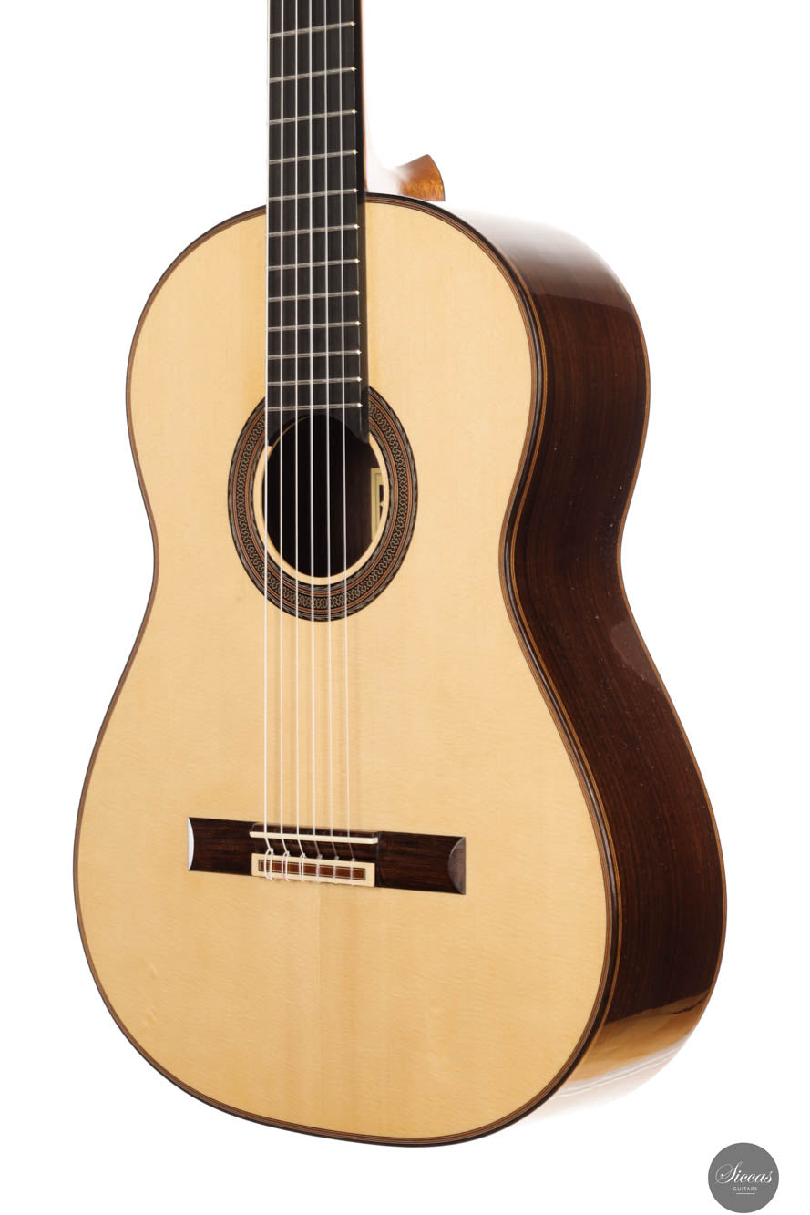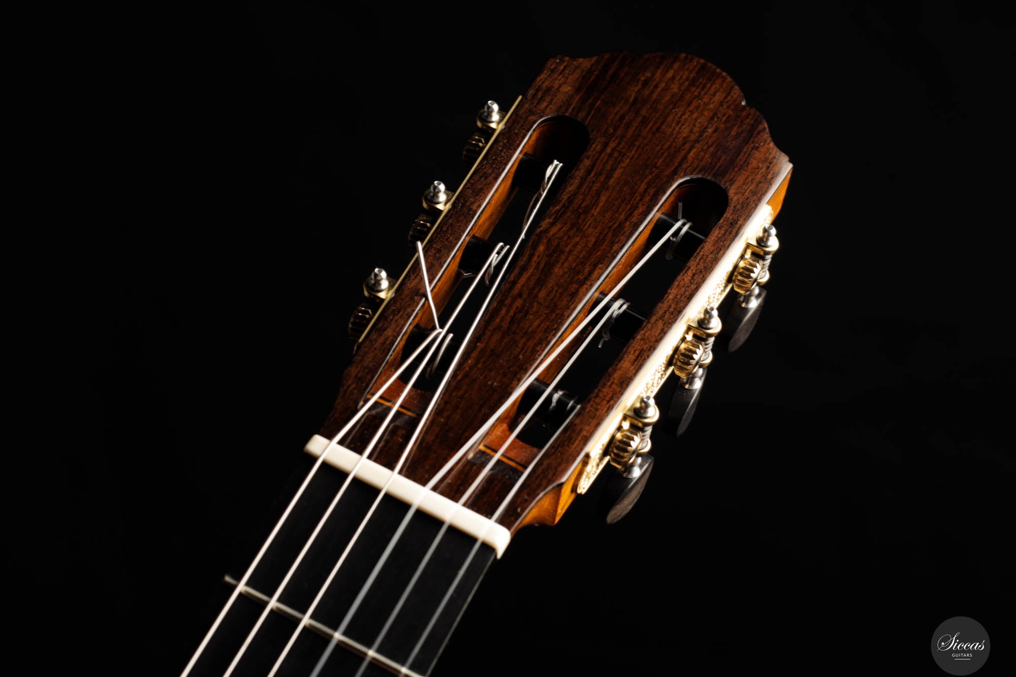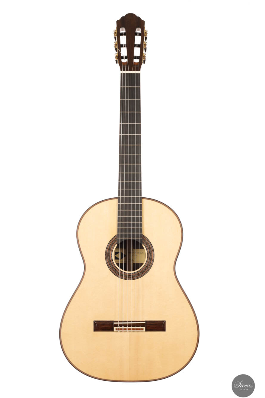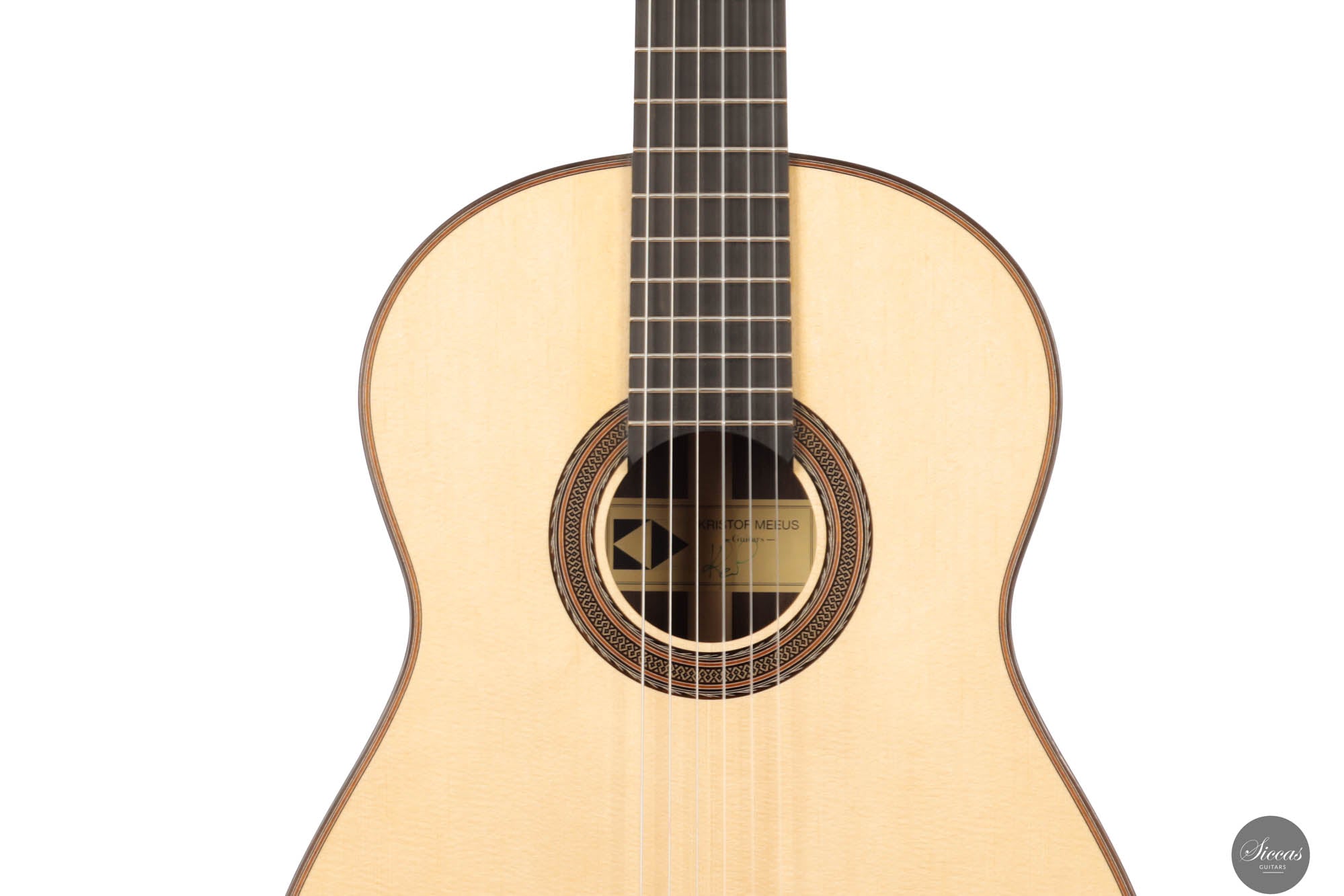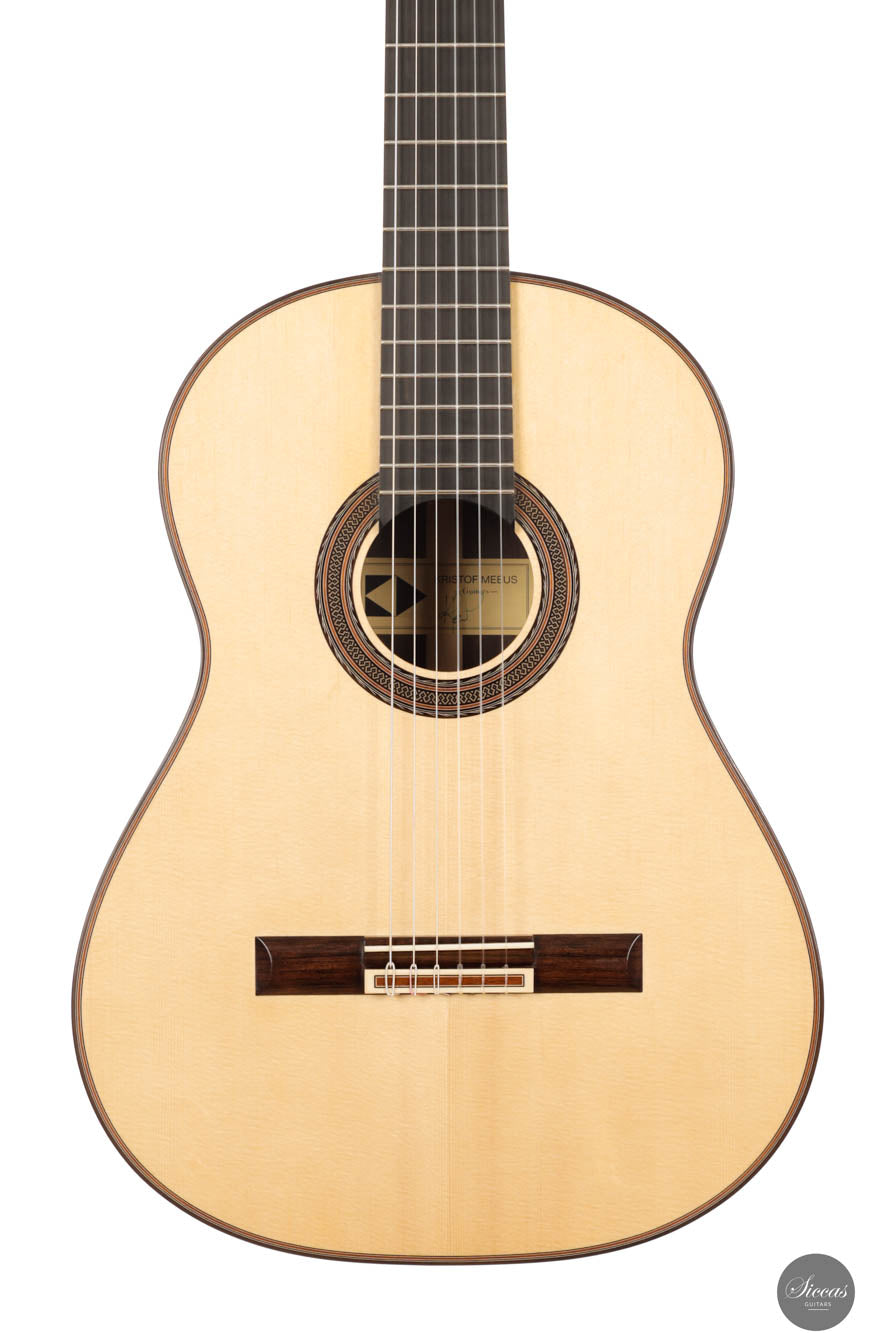 Nach seinem Master Abschluss in Soziologie begann Kristof Meeus 2006 im Zentrum für Musikinstrumentenbau (CMB) in Puurs, Belgien, seine Ausbildung als Gitarrenbauer. Parallel dazu arbeitete er in der Werkstatt von Walter Verreydt und sammelte sehr schnell solide Kenntnisse im Gitarrenbau. Im Jahr 2012 begann Kristof seine Karriere als selbstständiger Gitarrenbauer. Das CMB stellte ihn dann 2016 als Dozent für Musikinstrumentenbau ein. Kristof nahm sich die großen Maler als Vobild und ging auf Europareise, um sein Wissen zu verfeinern und sich von den Werken seiner Vorgänger inspirieren zu lassen. So studierte er die Sammlungen von Gabriele Lodi, Lorenzo Frignani, Bruno Marlat, Antonio Marin, Rafael Moreno und vielen anderen und verschaffte sich so ein globales Verständnis sowohl für die alten Meister als auch für die moderne klassische Gitarre.