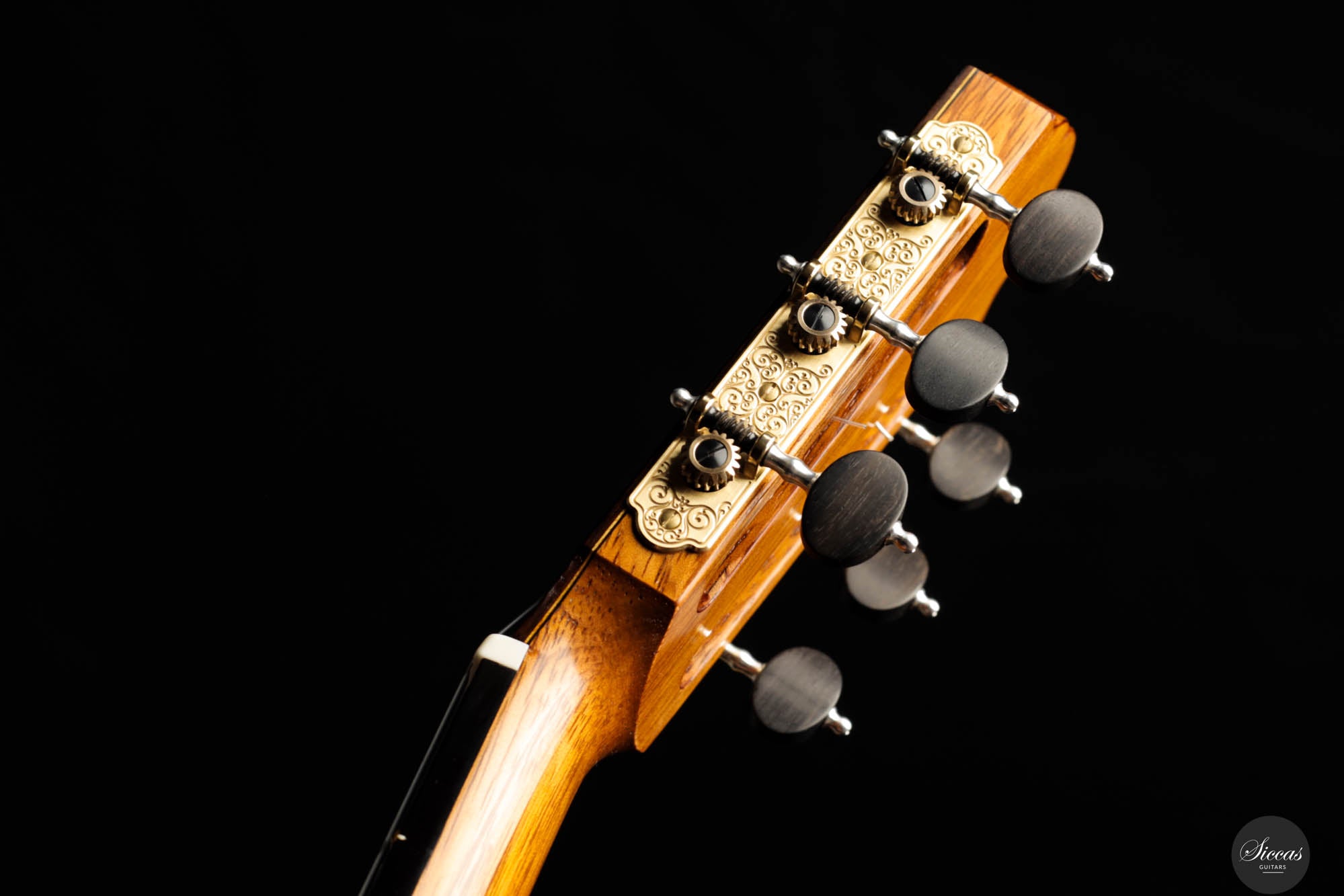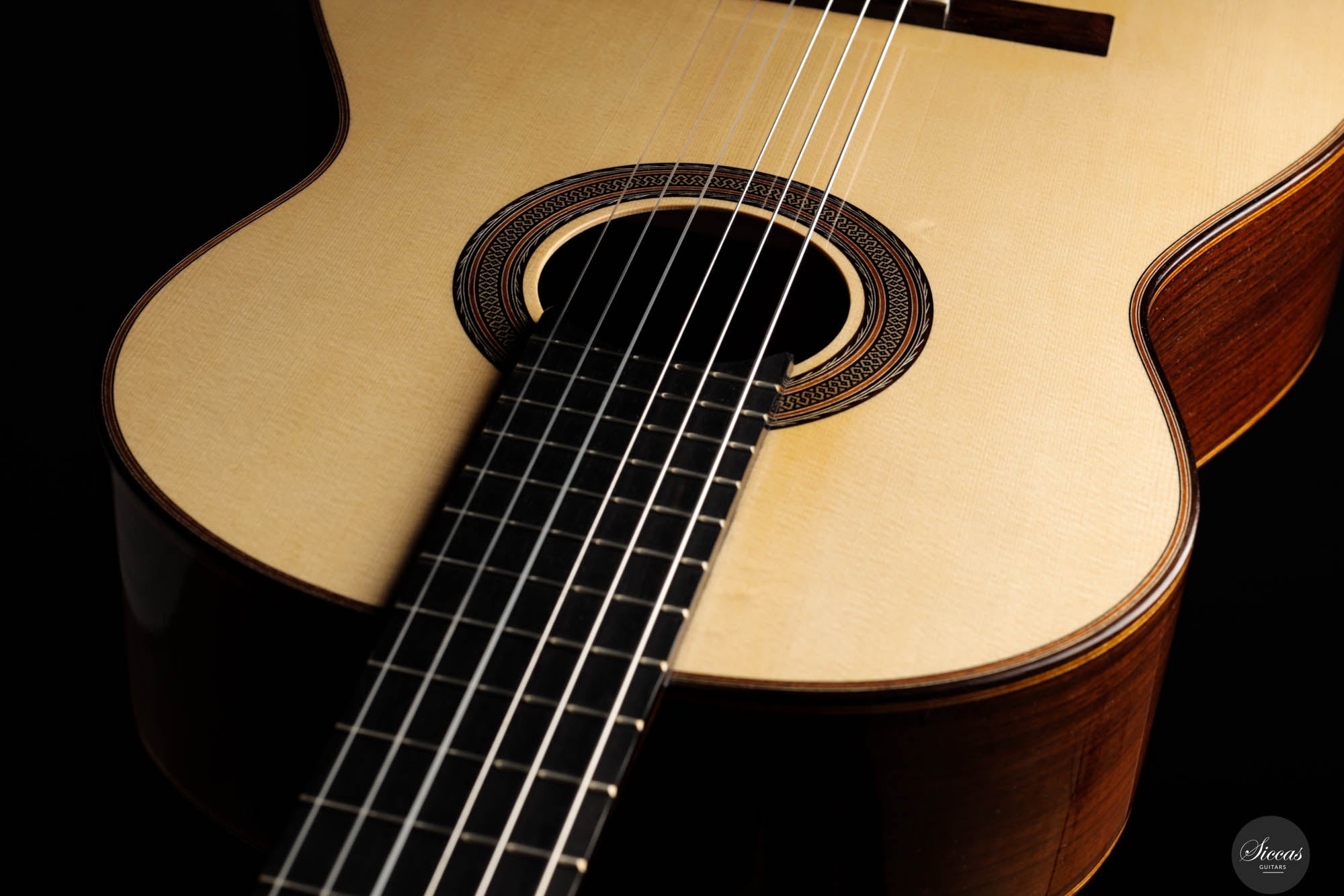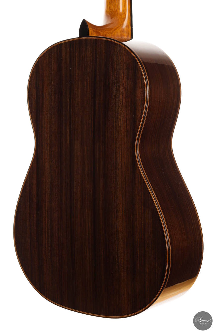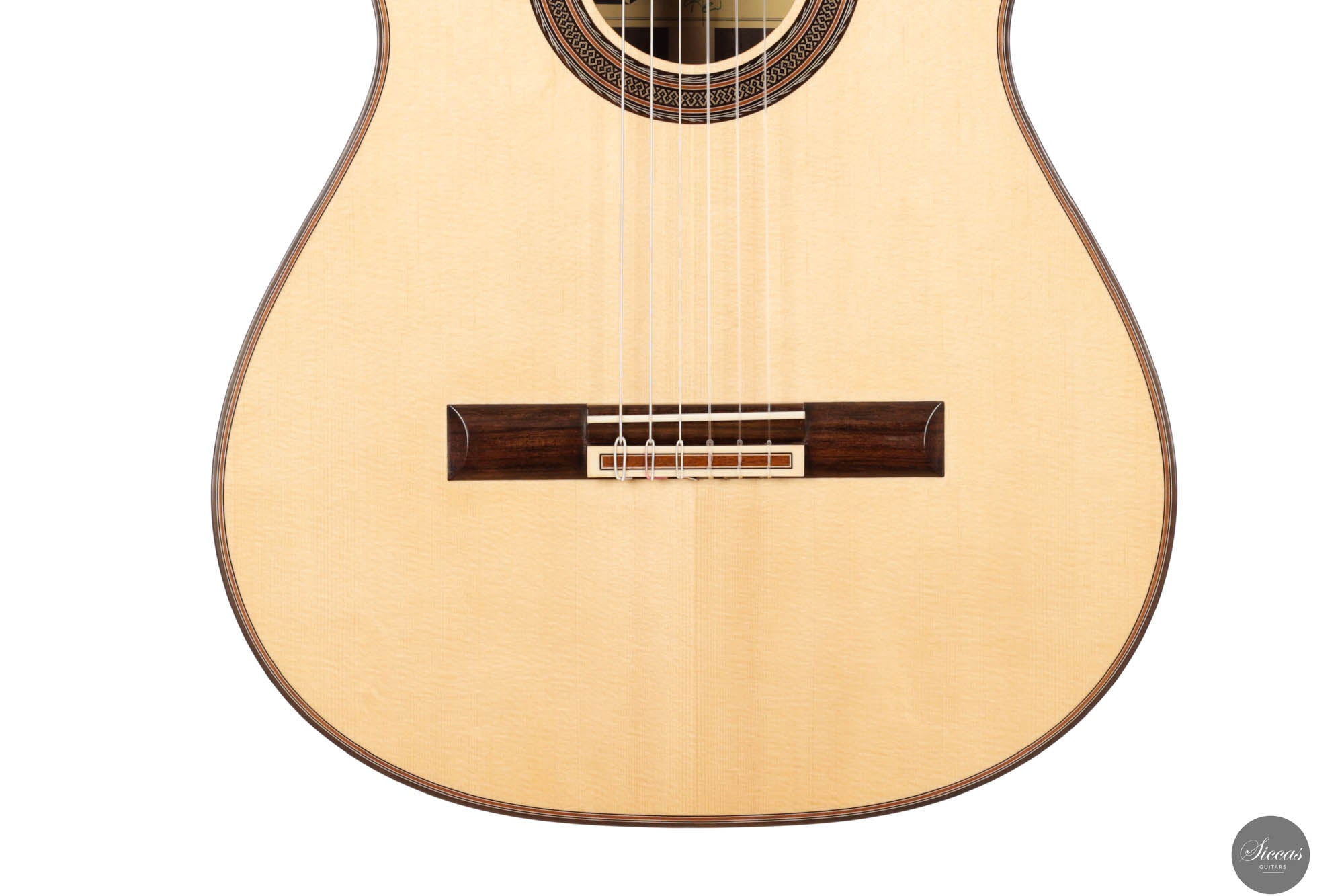 Nach seinem Master Abschluss in Soziologie begann Kristof Meeus 2006 im Zentrum für Musikinstrumentenbau (CMB) in Puurs, Belgien, seine Ausbildung als Gitarrenbauer. Parallel dazu arbeitete er in der Werkstatt von Walter Verreydt und sammelte sehr schnell solide Kenntnisse im Gitarrenbau. Im Jahr 2012 begann Kristof seine Karriere als selbstständiger Gitarrenbauer. Das CMB stellte ihn dann 2016 als Dozent für Musikinstrumentenbau ein. Kristof nahm sich die großen Maler als Vobild und ging auf Europareise, um sein Wissen zu verfeinern und sich von den Werken seiner Vorgänger inspirieren zu lassen. So studierte er die Sammlungen von Gabriele Lodi, Lorenzo Frignani, Bruno Marlat, Antonio Marin, Rafael Moreno und vielen anderen und verschaffte sich so ein globales Verständnis sowohl für die alten Meister als auch für die moderne klassische Gitarre.