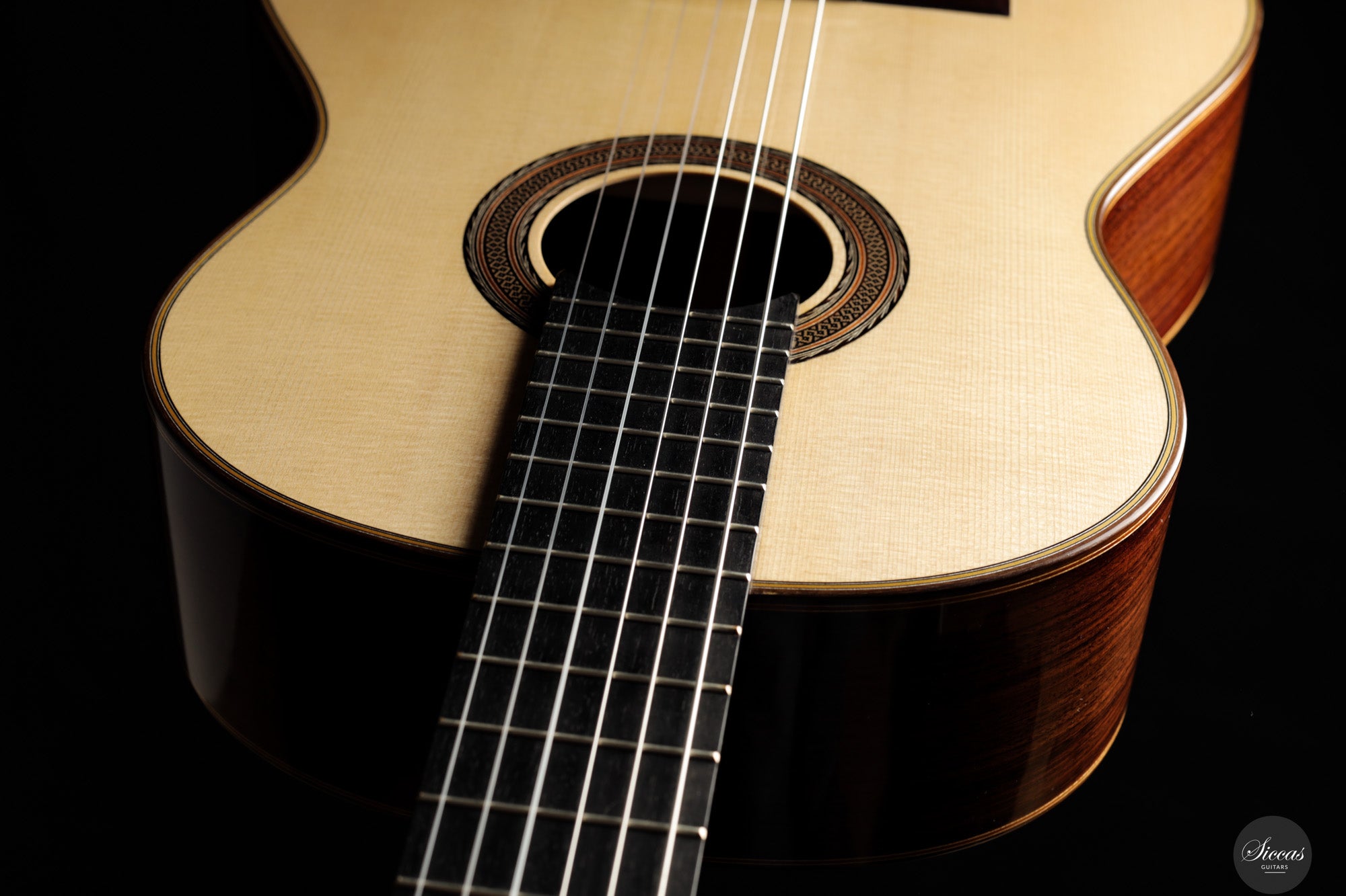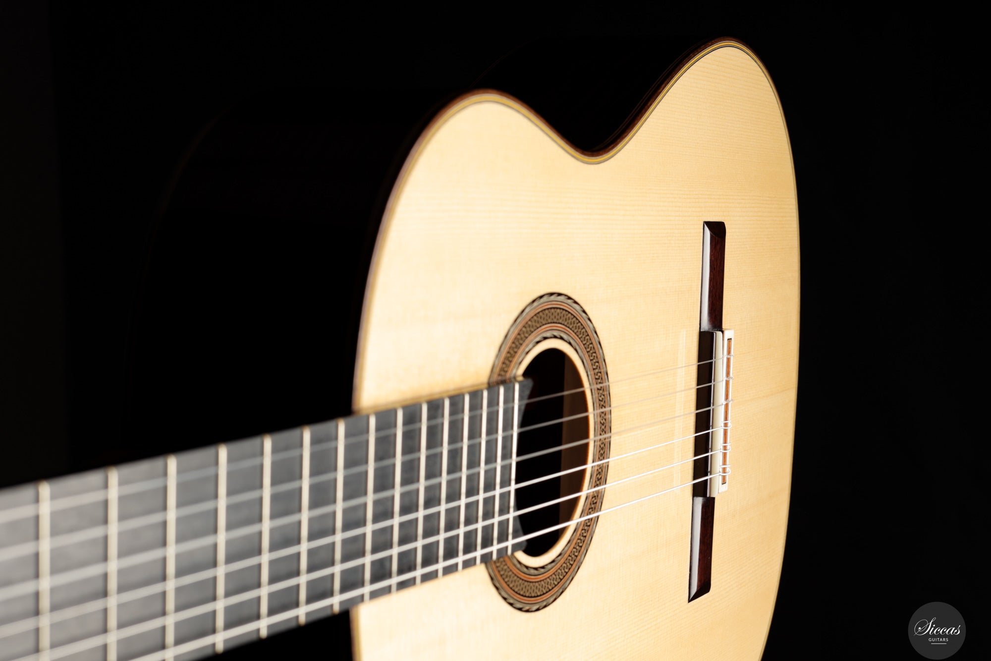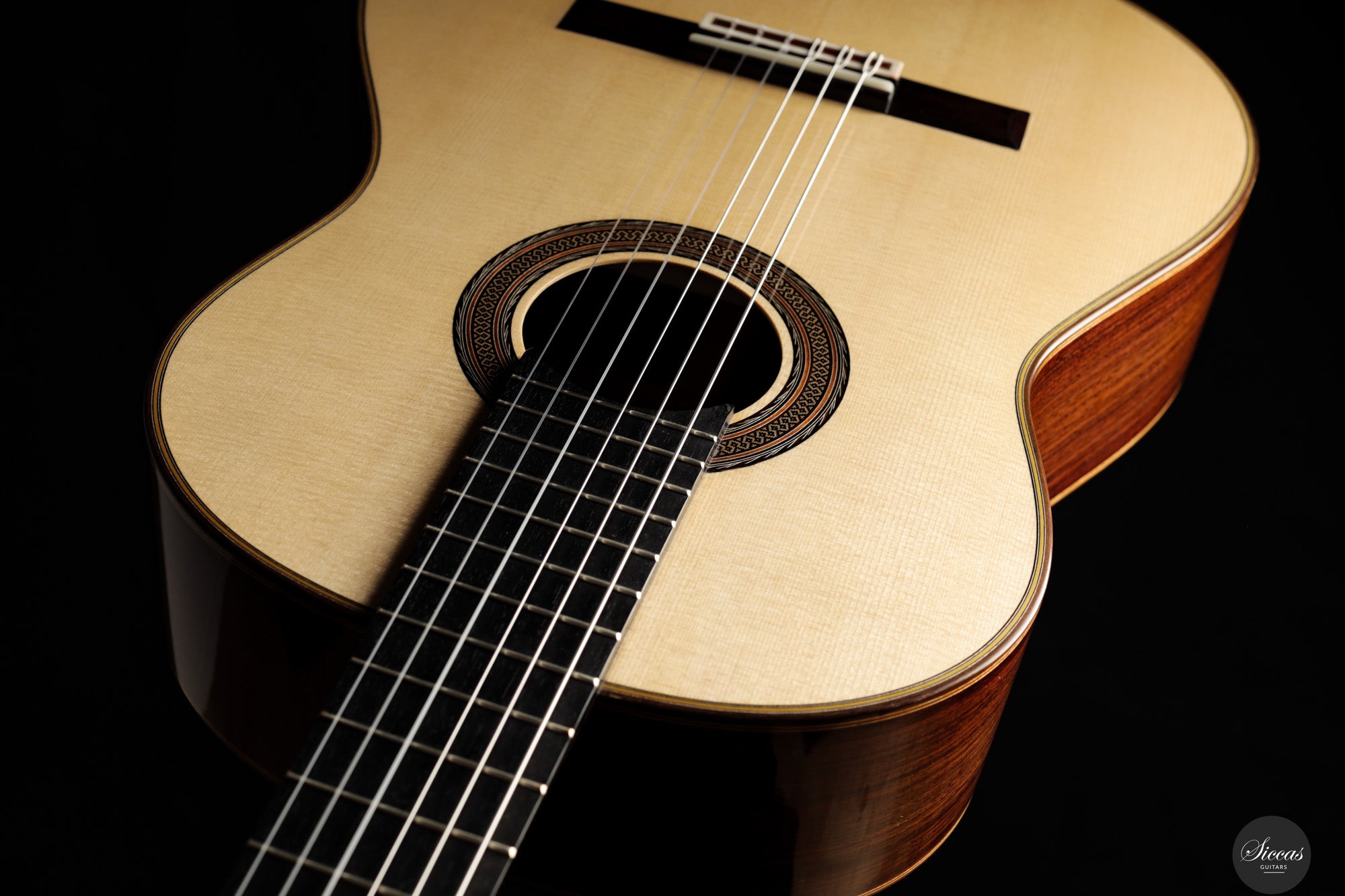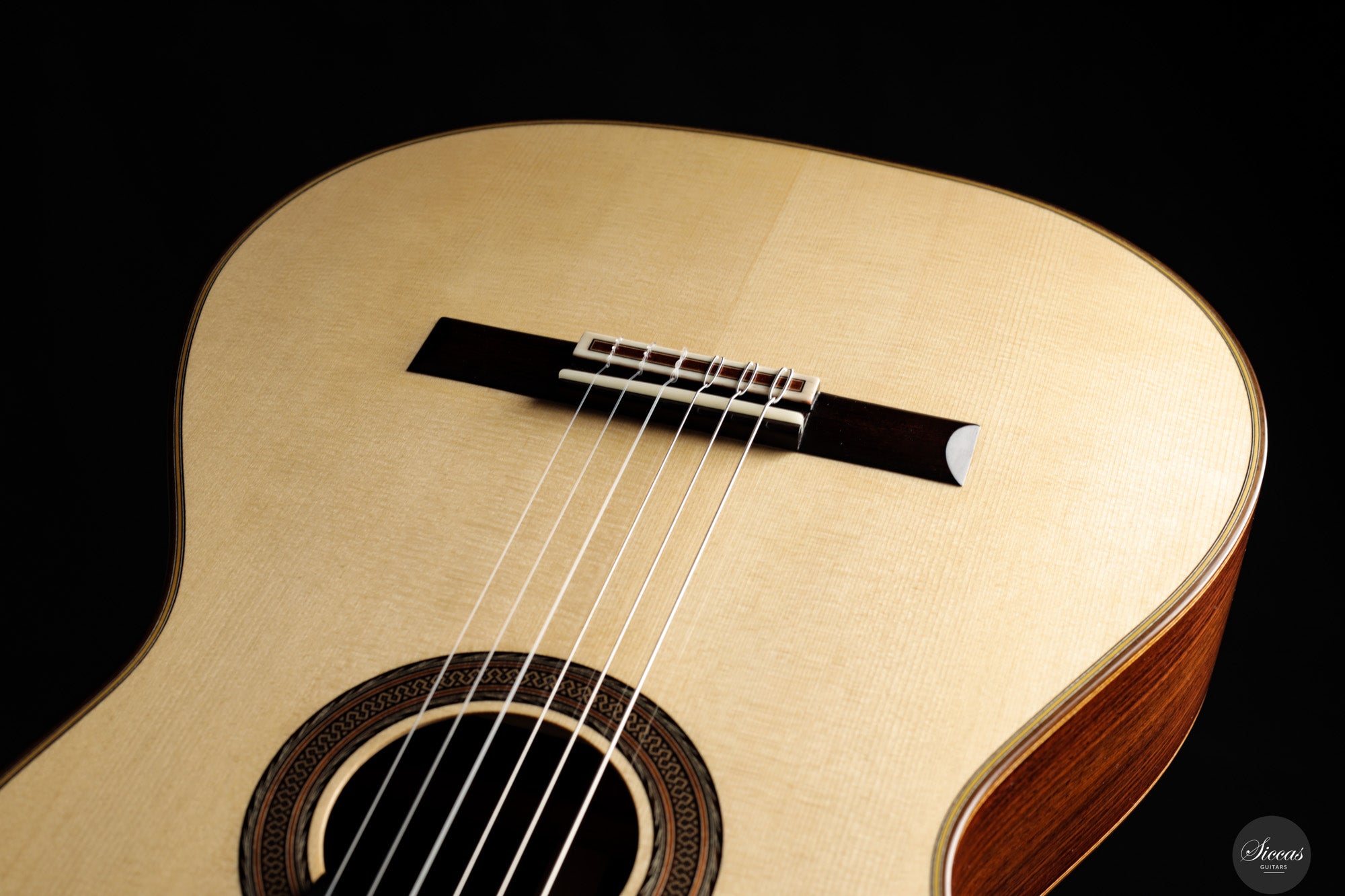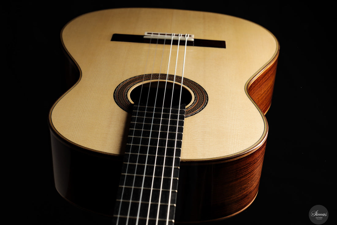 Die 2025 von Kristof Meeus gebaute Fichte-Palisander-Gitarre überzeugt mit ausbalanciertem Klangbild, freier Registerentfaltung und vollständiger Klangfarbe selbst im Pianissimo.