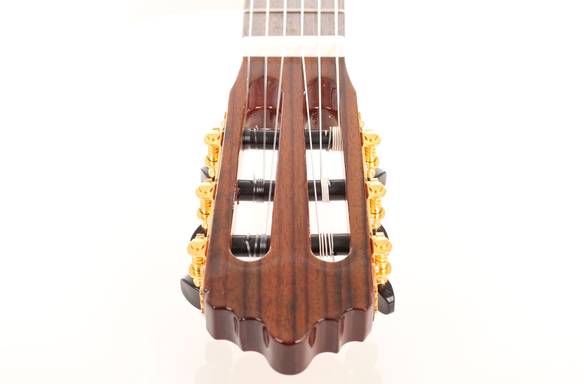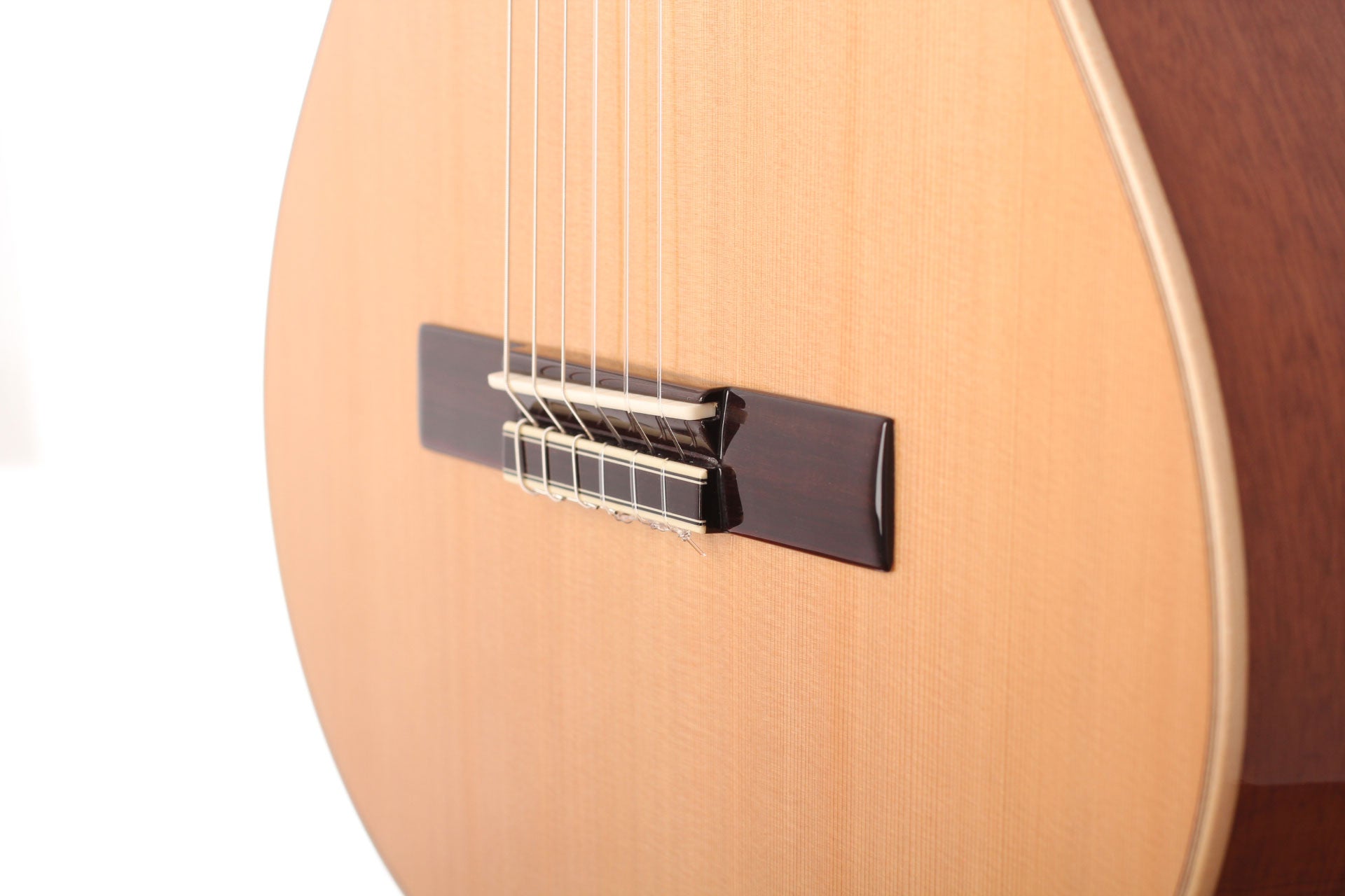 Die klassische Gitarre mit ihren weichen Nylonsaiten und ihrem charakteristischen Timbre ist zum Symbol der Kammermusik, der spanischen Tradition und des Konzertrepertoires geworden. Ihre moderne Form prägte Antonio de Torres im 19. Jahrhundert, indem er den Standard für Korpus, Fächerbeleistung und die 65-Zentimeter-Mensur setzte, die bis heute verwendet werden. Instrumente dieser Kategorie eröffnen eine reiche Palette von den feinen romantischen Miniaturen Tárregas bis zu den majestätischen Konzerten Rodrigos. Hier finden Sie Gitarren, die historische Kontinuität bewahren und zugleich zu neuen Interpretationen anregen.Alle Produkte der Kollektion ansehen -