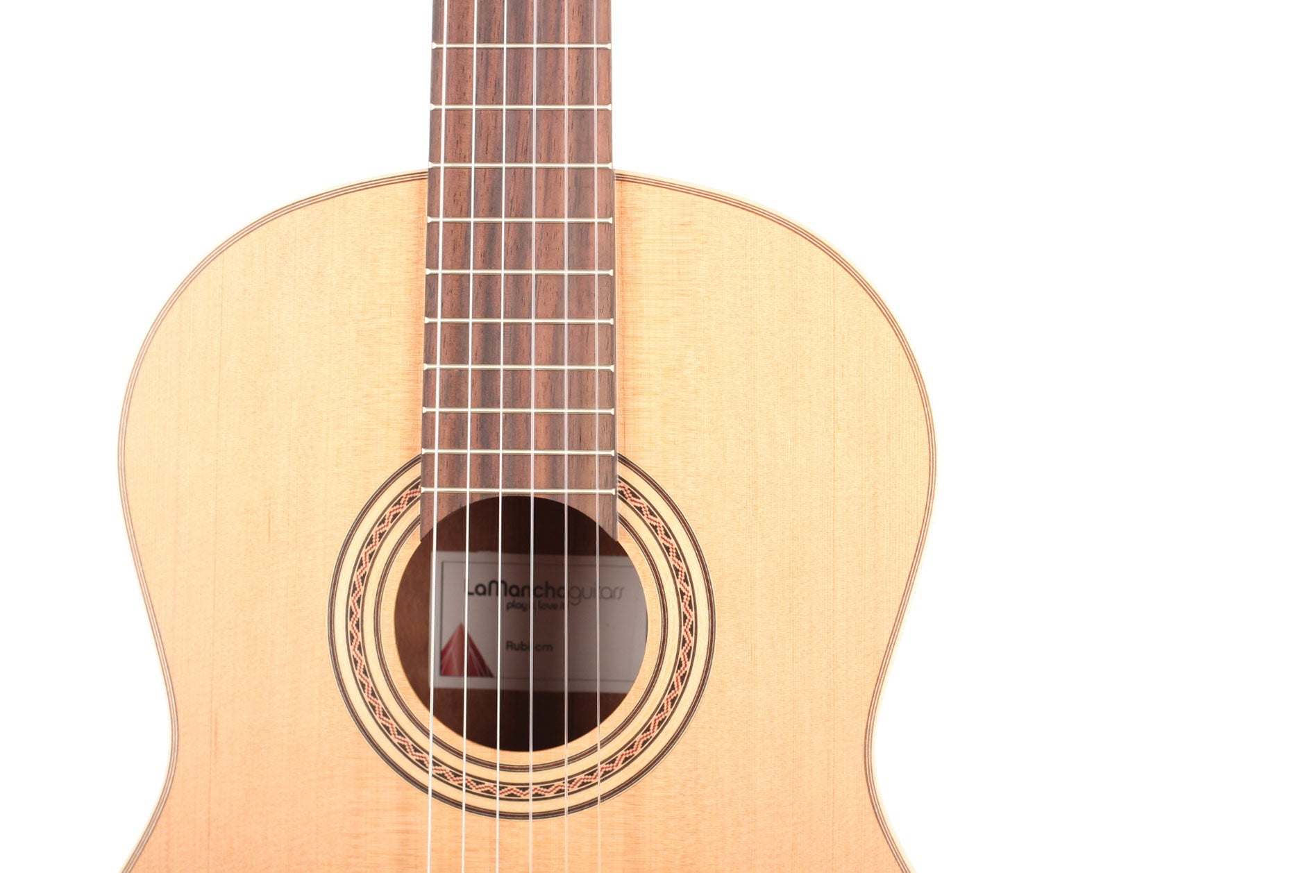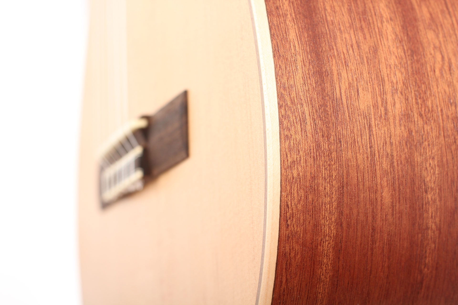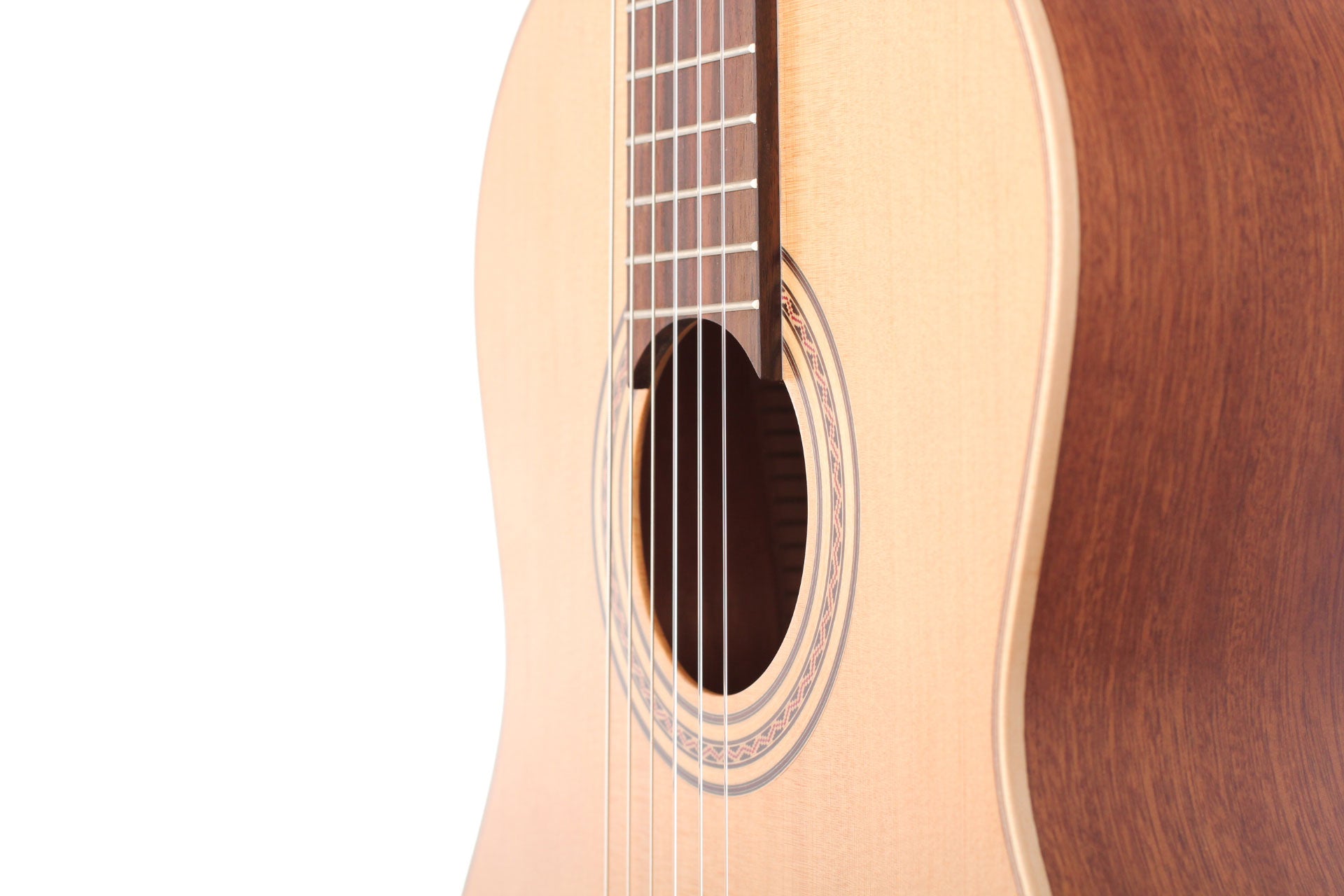 The Rubi CM model is in our opinion one of the best starter models. The sound is clear and brilliant and at the same time very powerful. The workmanship is great and contributes to a long life of this guitar. The top is made of solid cedar, back and sides are made of mahogany.