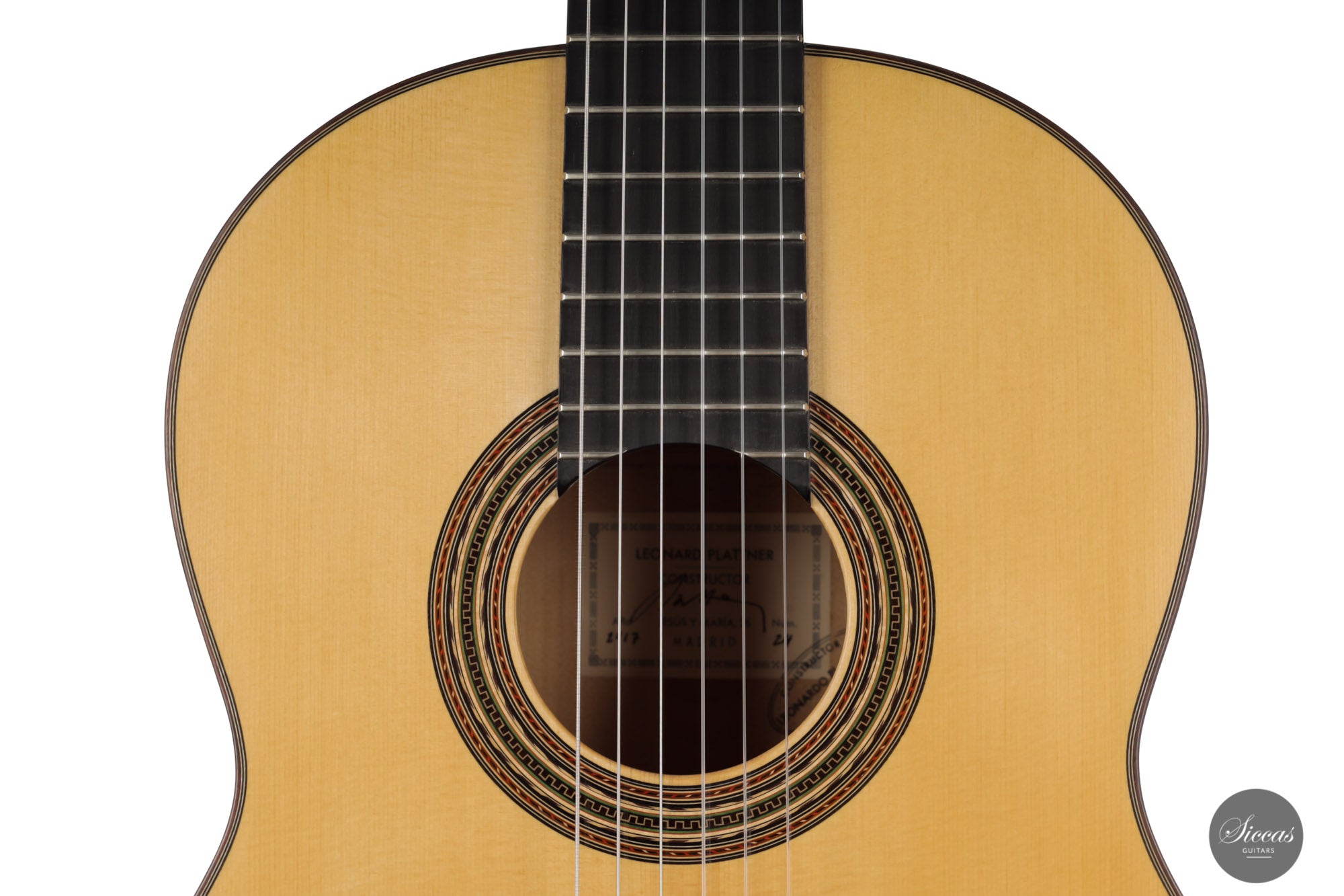 Leonard Plattner is an interesting figure of contemporary Spanish guitar making. He is the successor of Arcangel Fernandez, who himself was one of the direct heirs of the Madrid tradition of guitar making and successors of the philosophies of Santos Hernandez and Marcello Barbero. Leonard truly learned at fantastic places as his first master is no other than the very respected Geneva luthier Jacques Vincenti. There, he could approach many historical instruments and get a deep sense of quality craftsmanship and tone.