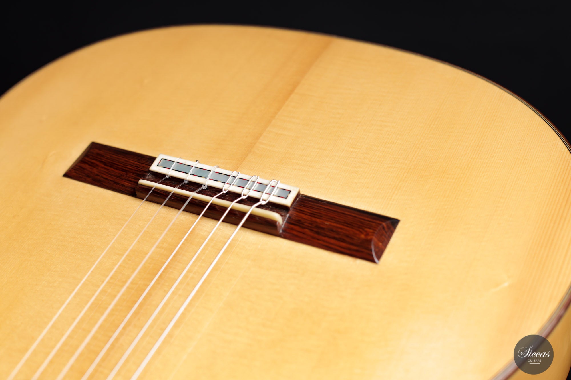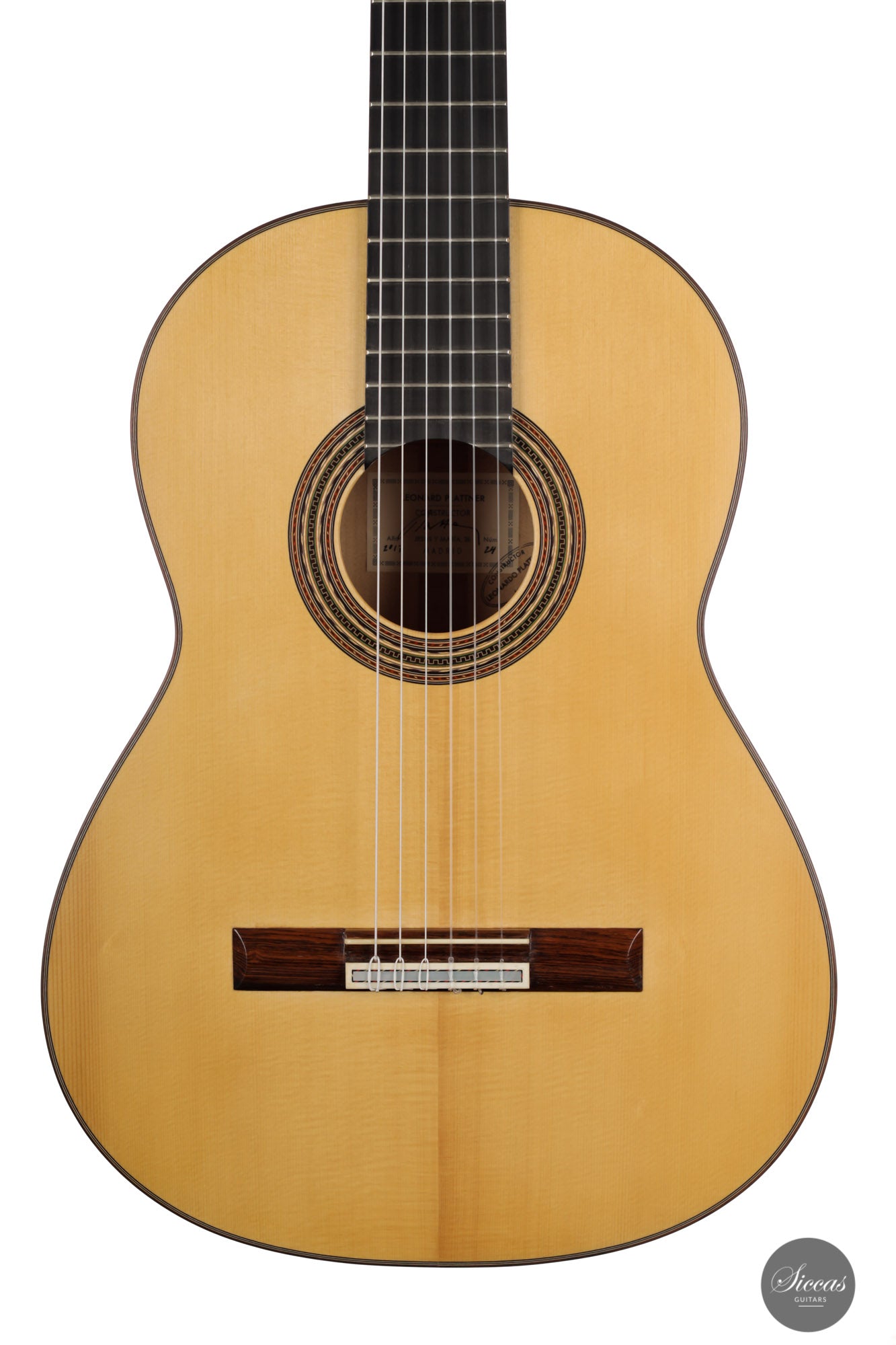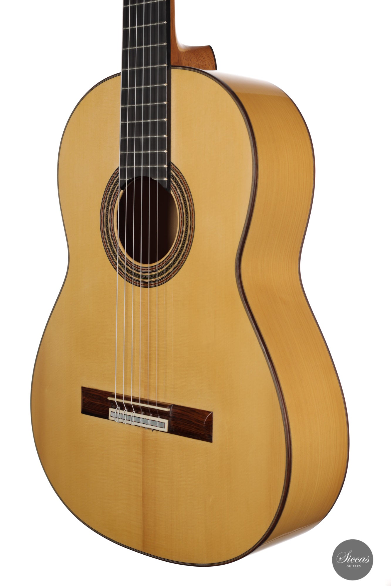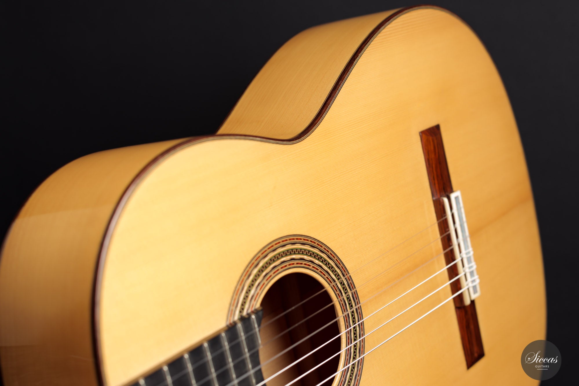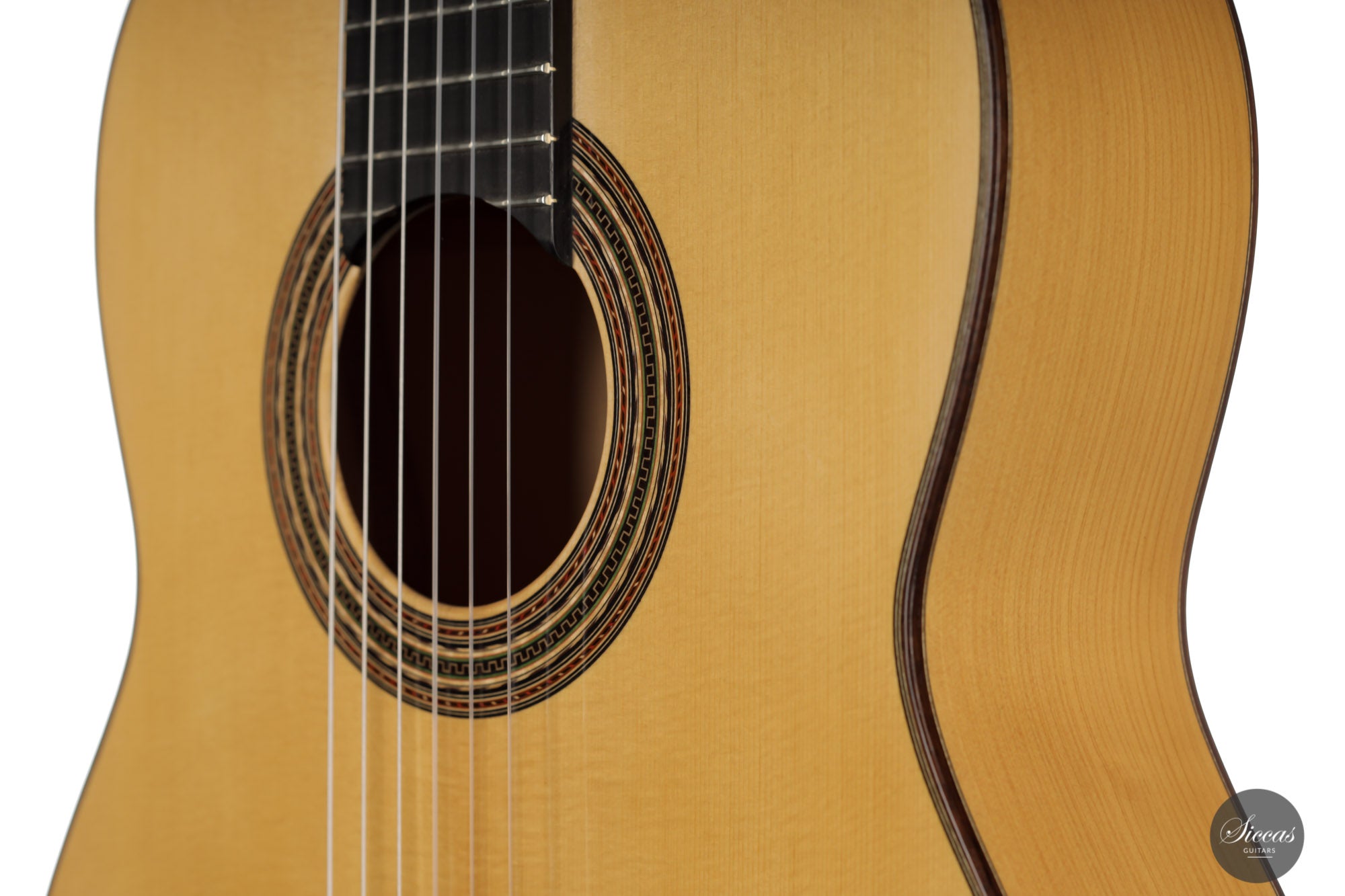 This classical guitar is a perfect example of Leonard Plattner's rich legacy. Made in 2017 and featuring cypress back and sides, it is highly responsive and playful. It is important to note that this instrument is built like a classical guitar and not a flamenco guitar. Therefore, it displays a bold and explosive character yet with great sustain, elegance, and charm. With only scarce playing marks, this second-hand guitar is in excellent condition. It is recognizable for its enchanting fragrance diffused by the cypress and is, in our opinion, a real gem from a highly skilled luthier still very much under the radar.