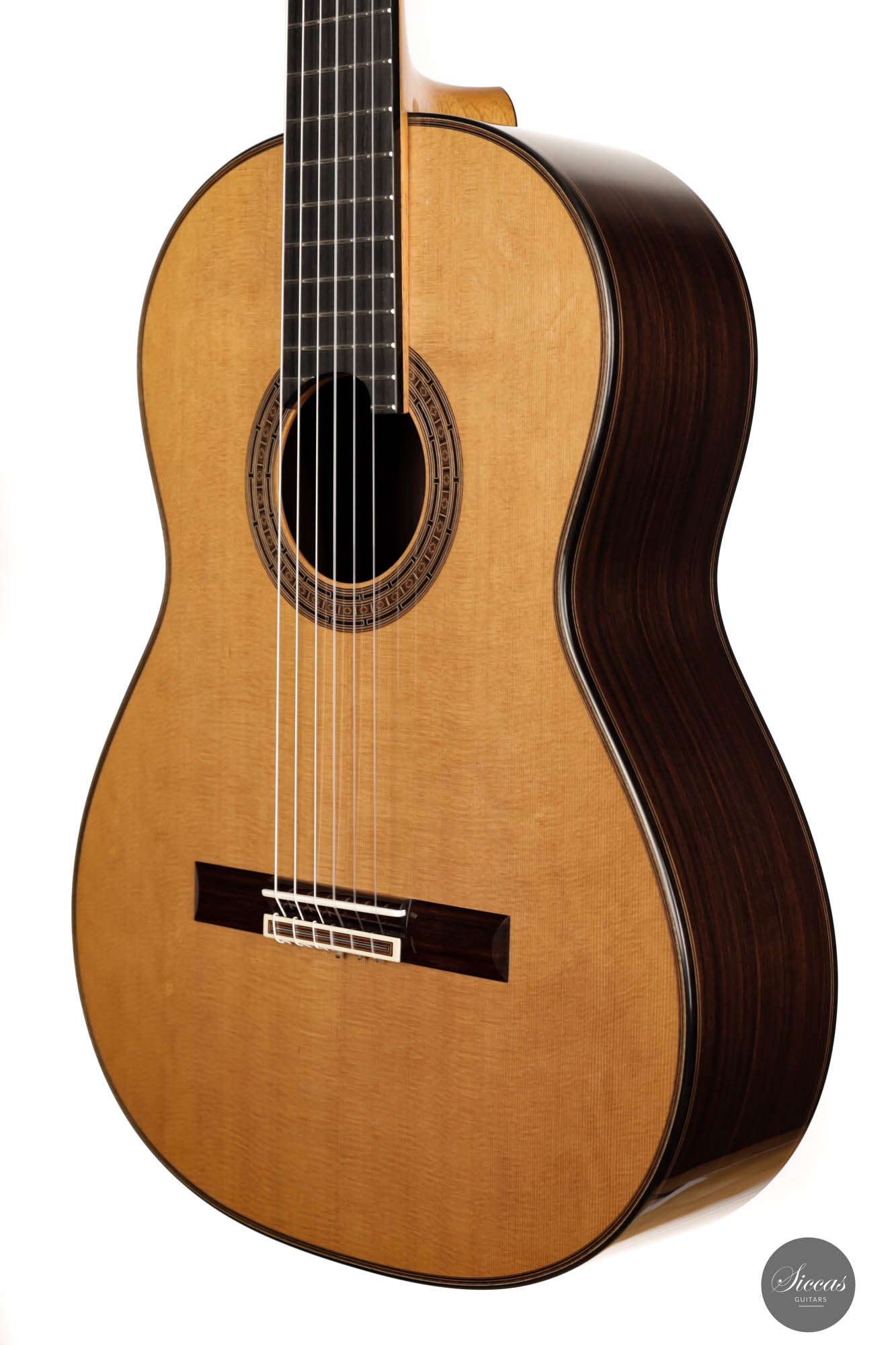 Aufgrund ihrer F-Hauptresonanz hat sie schöne tiefe und dunkle Bässe. Dennoch ist sie ein außergewöhnlich ausgewogenes Instrument, das nur wenige Gitarrenbauer mit einer so resonanzarmen Gitarre erreichen können. Diese Gitarre ist eine Mischung aus Poesie und Performance. Die Finesse der Tongebung und die allgemeine Eleganz des Klangs dieses Instruments sind einfach inspirierend. Sie ist eine jener seltenen einnehmenden und geradezu verführerischen Gitarren, die den Spieler die Außenwelt vergessen und ihn nicht mehr loslassen, sobald der erste Ton gespielt ist. Gleichzeitig machen die ausgezeichnete Ausgewogenheit, das lange Sustain und die beeindruckende Klangfülle, die diese traditionelle Gitarre entwickelt, sie zu einem fantastischen Konzertinstrument. Der hohe Spielkomfort für die linke Hand und die einfache Kontrolle für die rechte Hand sorgen für ein hohes Maß an Sicherheit für den Spieler und machen sie zu einem perfekten Begleiter für Bühnenauftritte als auch für das entspannte heimische Musizieren.