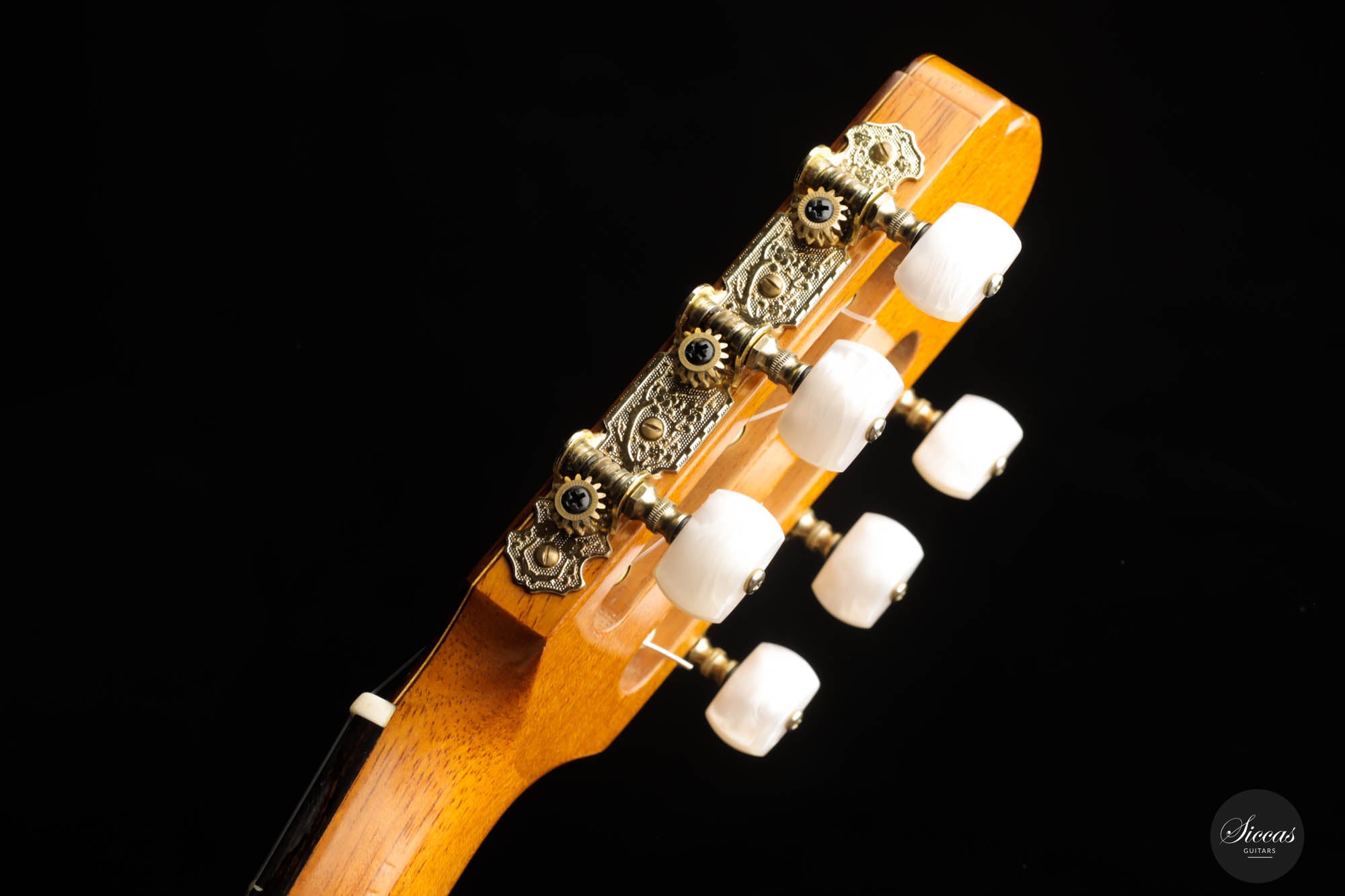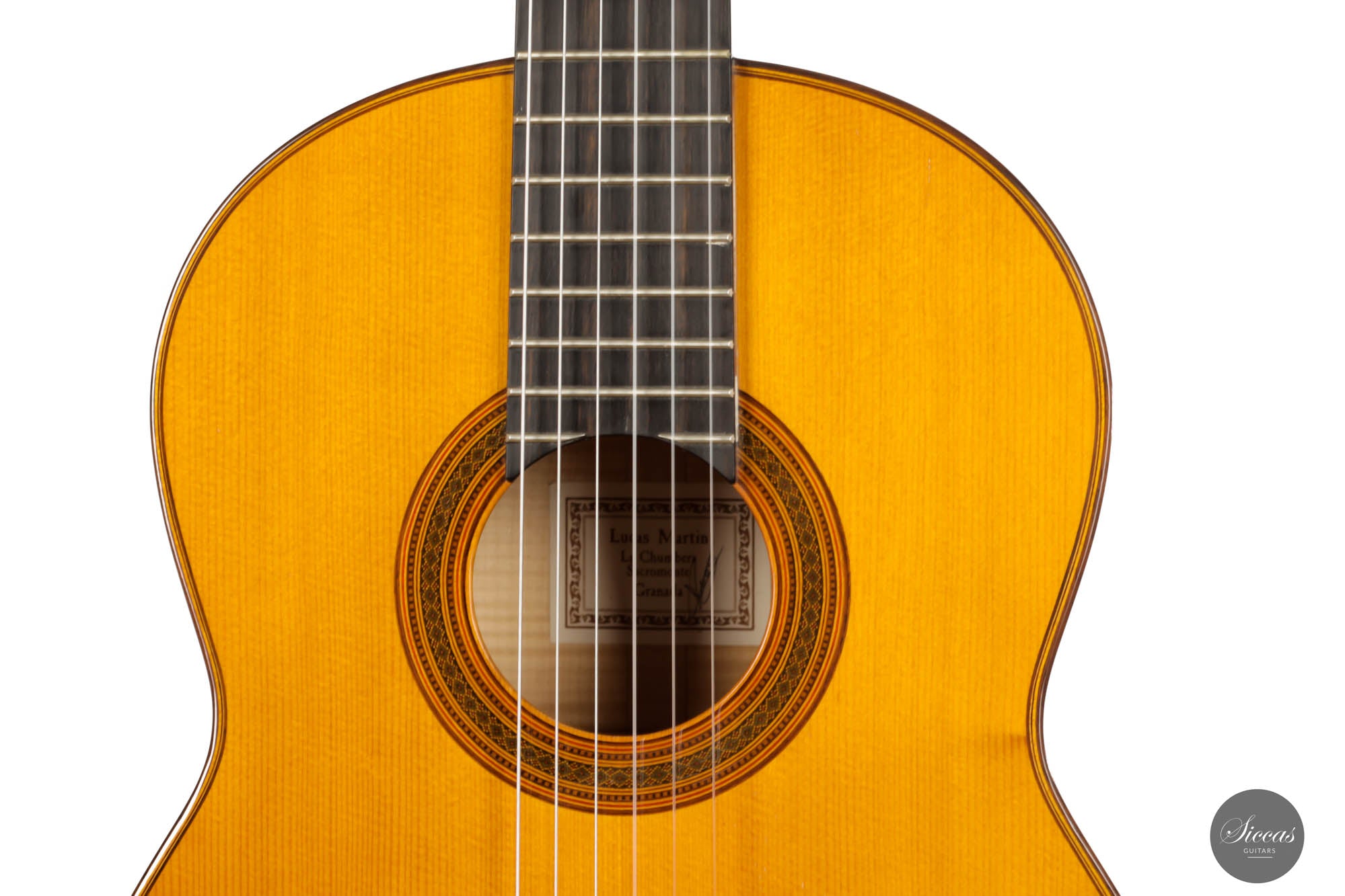 Lucas Martin wurde 1984 in Malaga, Spanien, geboren. Seine erste Gitarre baute er 2002 unter der Anleitung seines Vaters. 2006 begann er in der Werkstatt seines Vaters in Vollzeit Gitarre zu bauen. Lucas hat sich auf den Bau traditioneller Flamenco- und Klassikgitarren spezialisiert. Diese klassische Gitarre wurde 2007 gebaut und hat Boden und Zargen aus Ahorn. Die Decke ist aus Fichte gefertigt und das gesamte instrument wurde mit einer Schellackpolitur veredelt. Diese Lucas Martin Gitarre hat einen sehr schönen und ausgewogenen Klang, mit einer warmen und süßen Klangcharakteristik. Sie befindet sich in sehr gutem Zustand und hat weder Risse noch Reparaturen vorzuweisen. Inklusive Hartschalenkoffer.