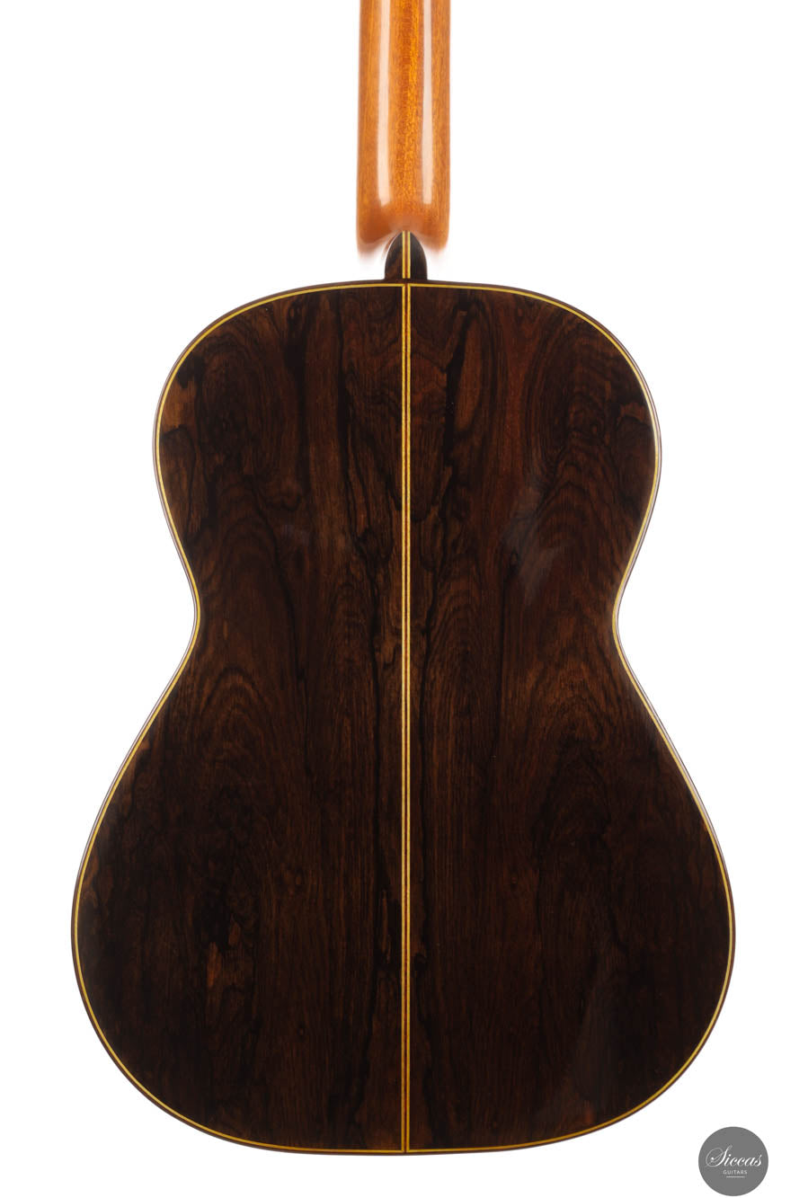Inspiriert von einem bekannten deutschen Gitarrenbauer fasziniert dieses Instrument mit seinen tiefen und geheimnisvollen Bässen, die perfekt mit brillanten, schimmernden Höhen ausbalanciert sind. Die in dieser Gitarre erreichte Balance ist nicht nur technisch; es ist eine Harmonie des Klangs, die zur Erkundung und Entdeckung einlädt. Die Reichhaltigkeit seiner klanglichen Palette bietet eine Vielzahl von erstaunlichen Farben, die Musikern eine breite Leinwand für ausdrucksstarke musikalische Interpretationen bieten. Die Fähigkeit dieser Gitarre, eine so vielfältige Palette von Klängen einzufangen, macht sie zu einem unschätzbaren Werkzeug sowohl für Aufführungen als auch für kreative Erkundungen.