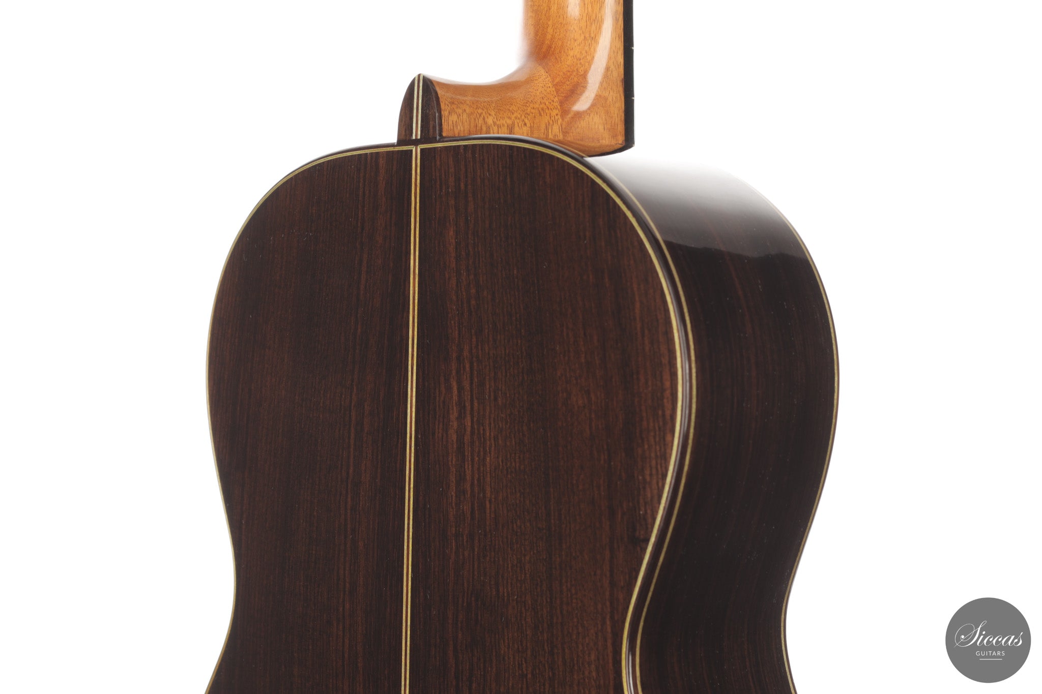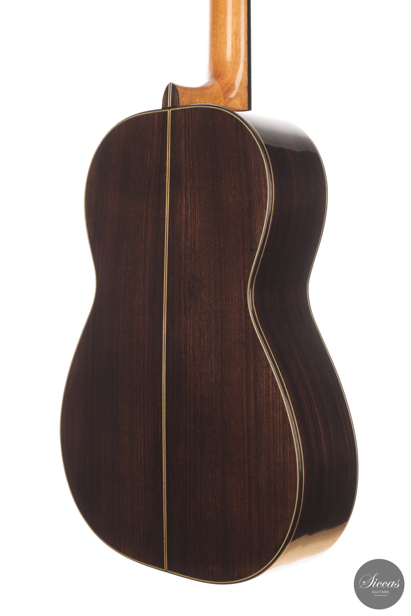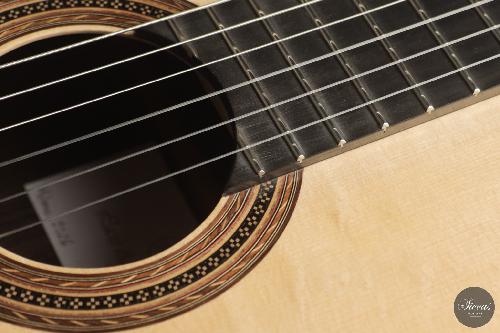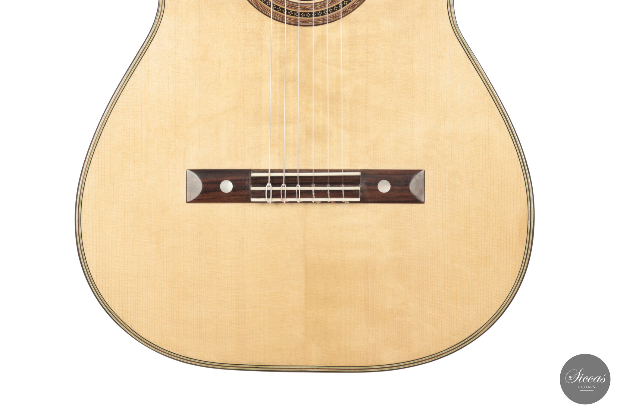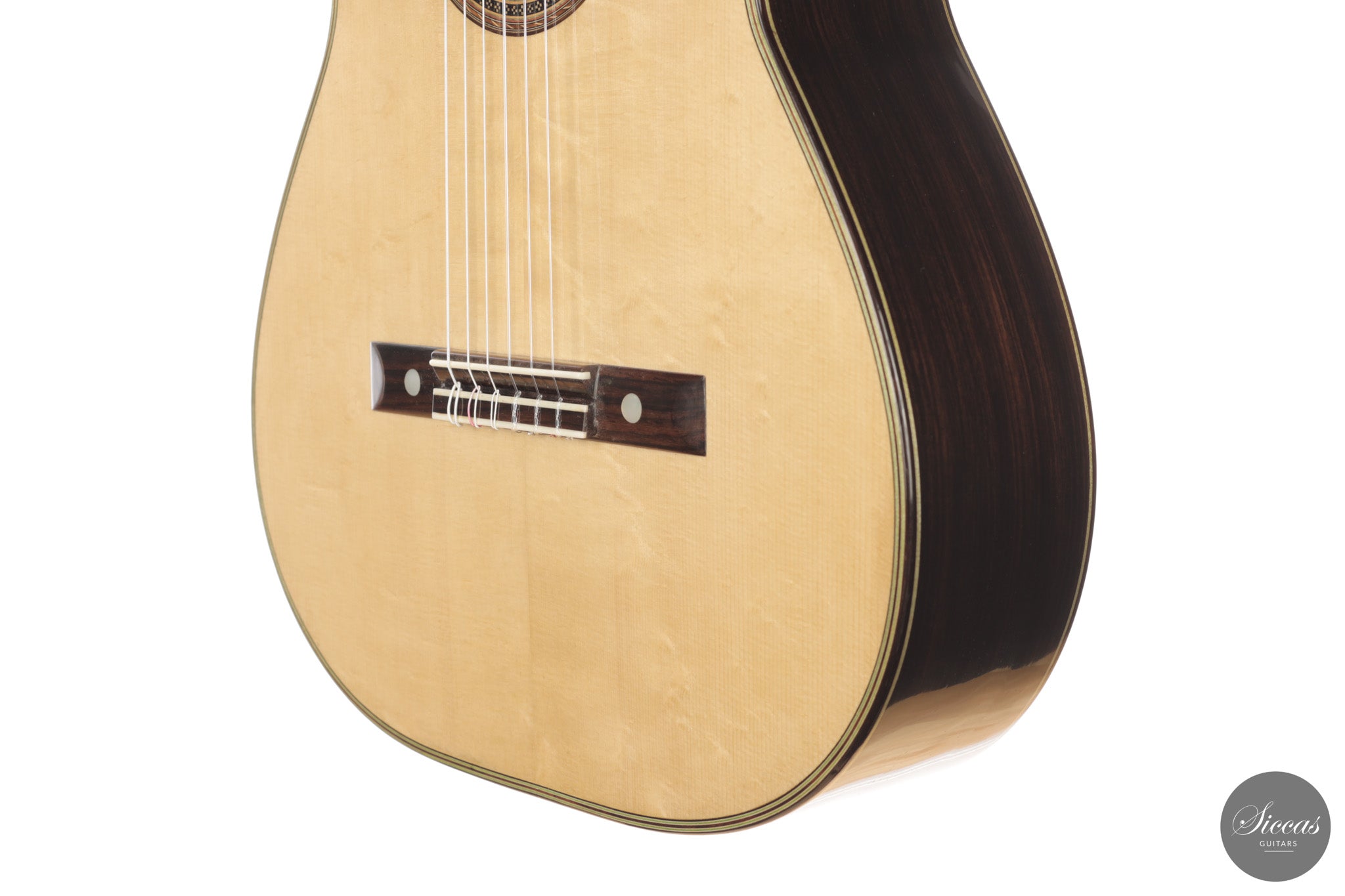 Diese Gitarre aus dem Jahr 2026 von Lucio Antonio Carbone ist ein traditionell gebautes Instrument mit Fichtendecke sowie Boden und Zargen aus indischem Palisander, vollständig mit Schellack poliert. Auch wenn die Gestaltung deutlich von Carbones langjähriger Beschäftigung mit den großen historischen Modellen geprägt ist, sollte dieses Instrument nicht als strenge Kopie verstanden werden, sondern als seine eigene reife Interpretation. Das Ergebnis ist eine Konzertgitarre von bemerkenswerter Präsenz, die auf traditionellen Prinzipien beruht, klanglich jedoch eine ungewöhnliche Offenheit und Leichtigkeit entfaltet.