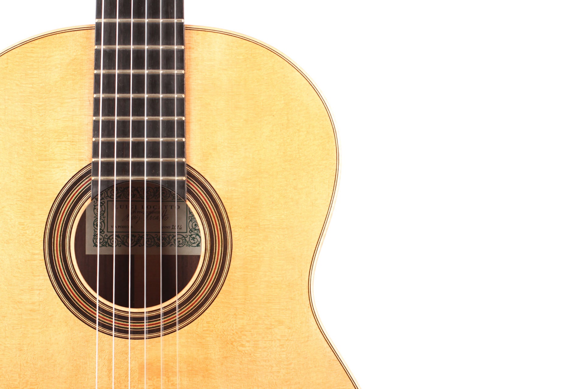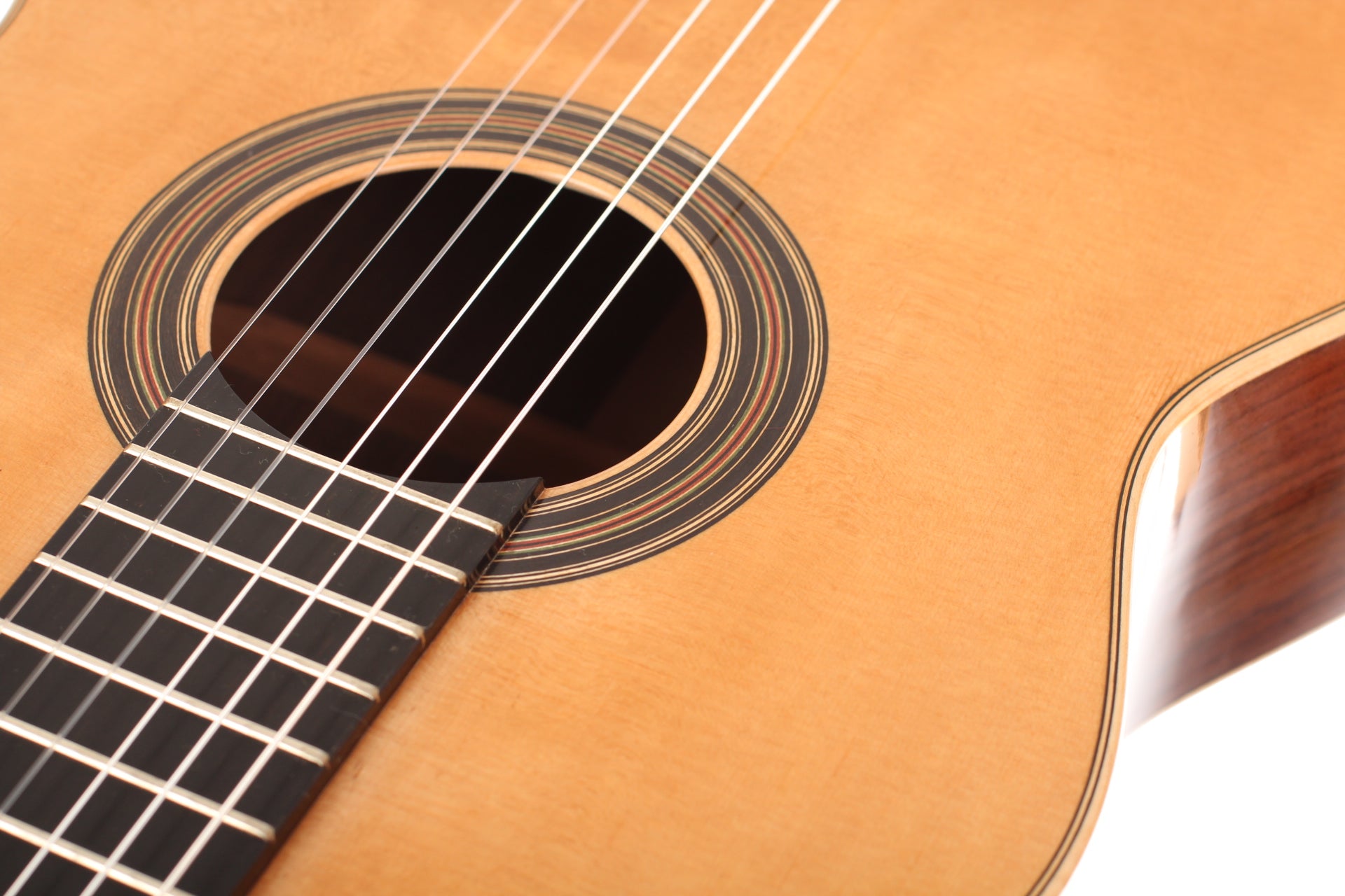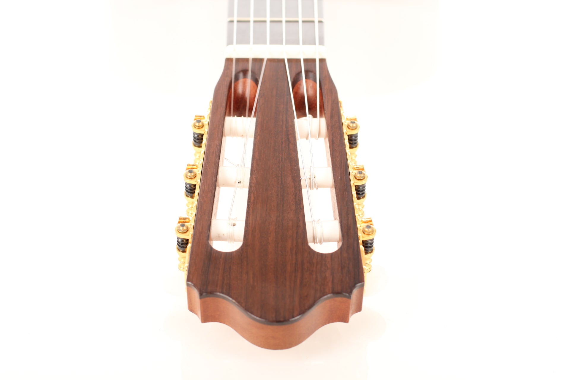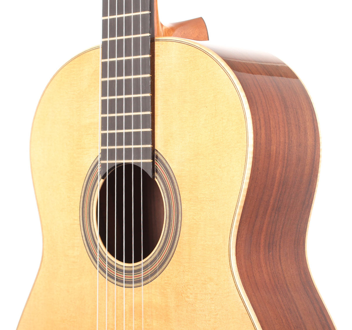 Luigi Locatto baut seit über 30 Jahren klassische Gitarren. Er ist nicht nur ein ausgezeichneter Gitarrenbauer, sondern auch ein vorzüglicher Gitarrist. Im Laufe seiner Karriere als Gitarrenbauer hatte er viele Möglichkeiten Gitarren von berühmten Persönlichkeiten wie Simplicio, Panormo und Torres zu restaurieren und zu untersuchen was ihn auch bei der Konzeption seiner Modelle positiv beeinflusste. Diese Gitarren von Luigi Locatto wurde 2014 gebaut und hat eine Fichtendecke. Aus indischem Palisander sind Boden und Zargen gefertigt. Natürlich wurde die Gitarre mit einer Schellackhandplitur veredelt. Die Mechaniken sind von Fustero. Inklusive Hartschalenkoffer.