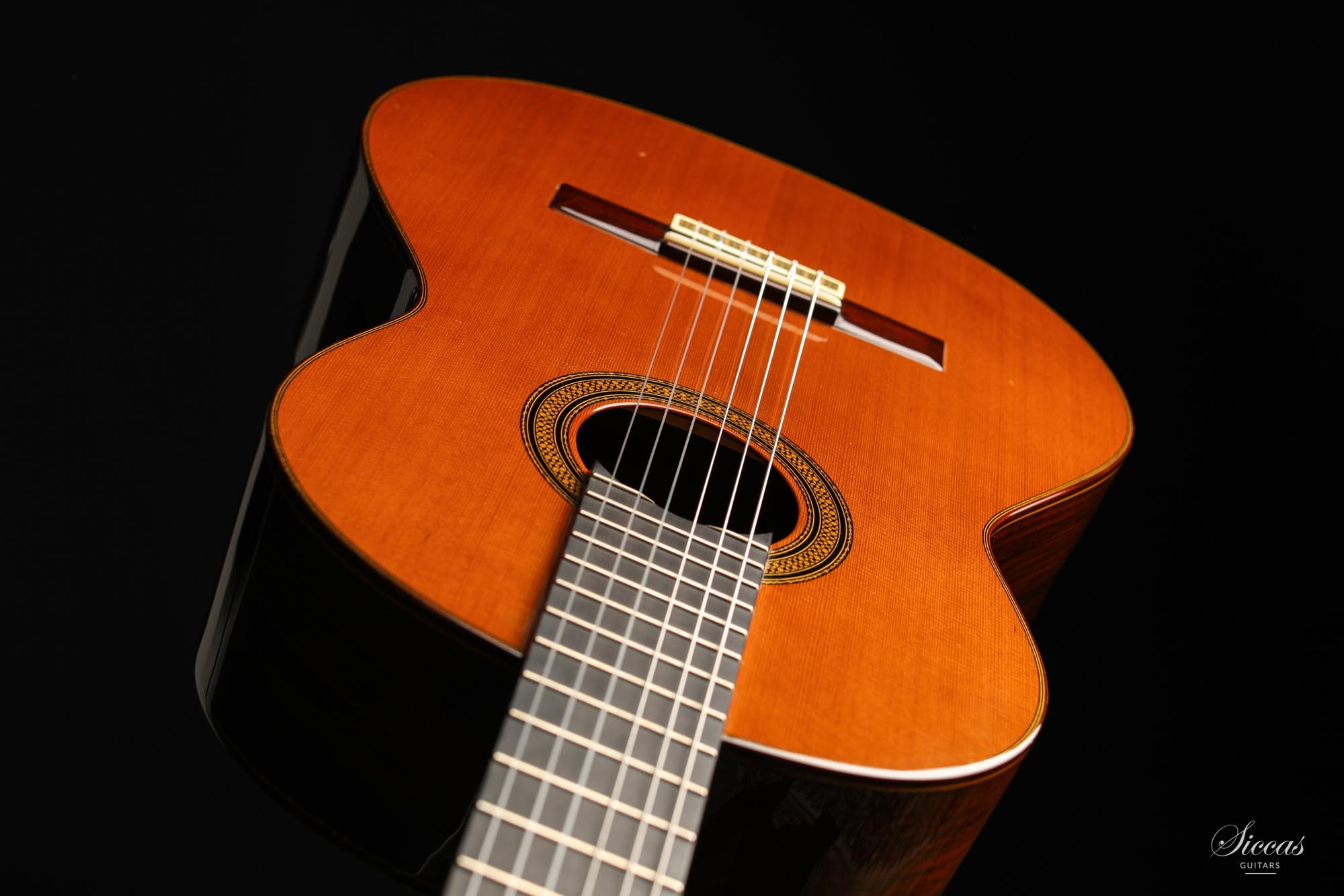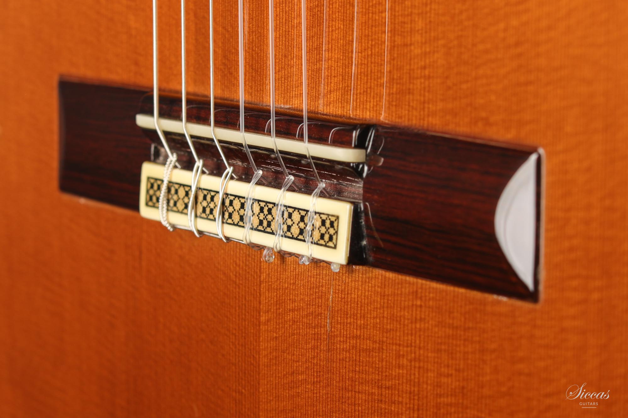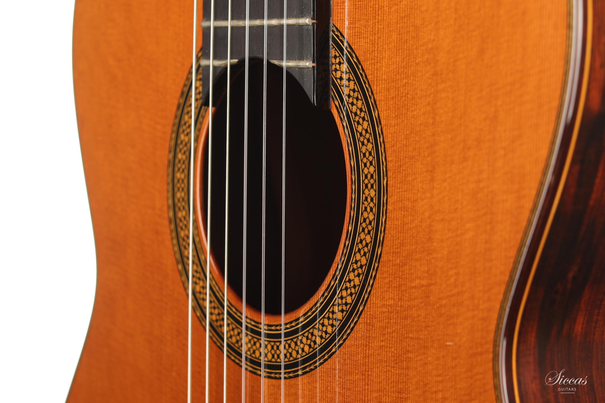 The sound of this model from 1980 is exactly what you have in mind when you think of great Spanish guitars from the second half of the 20th century. The cedar top projects a powerful, rich, and full sound, which allows a soft vibrato and offers a rounded tone in every circumstance. The volume of this instrument is truly amazing, especially for the audience, and more than enough to fill any concert hall. Due to its scale and dimensions, this guitar may be challenging for some players, but it's worth the effort because it's a really attractive guitar with a very exciting and inspiring sound.