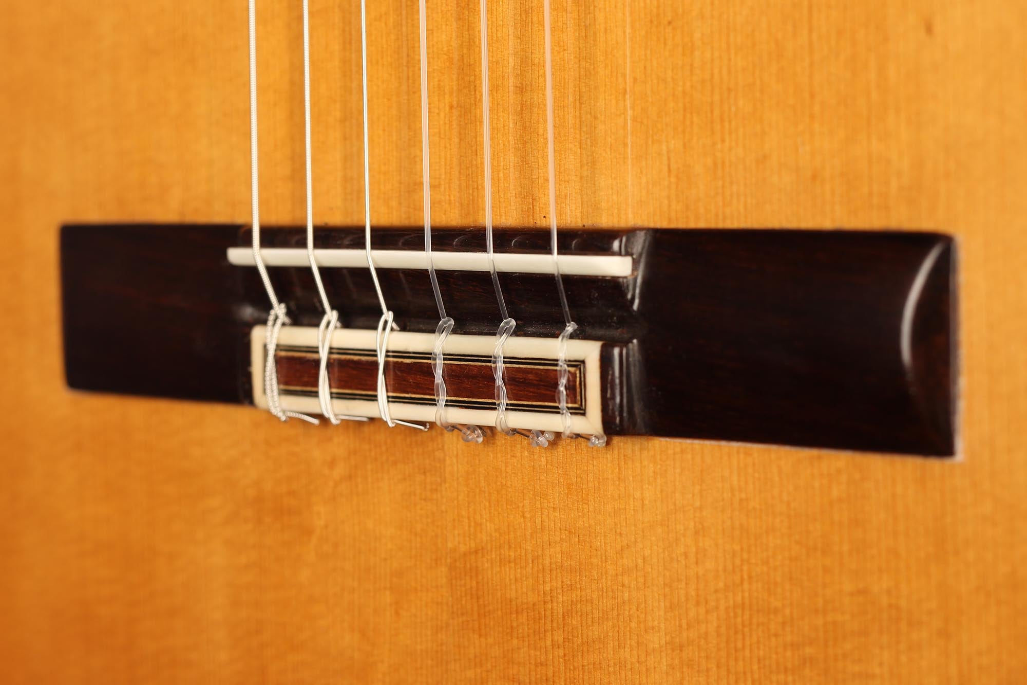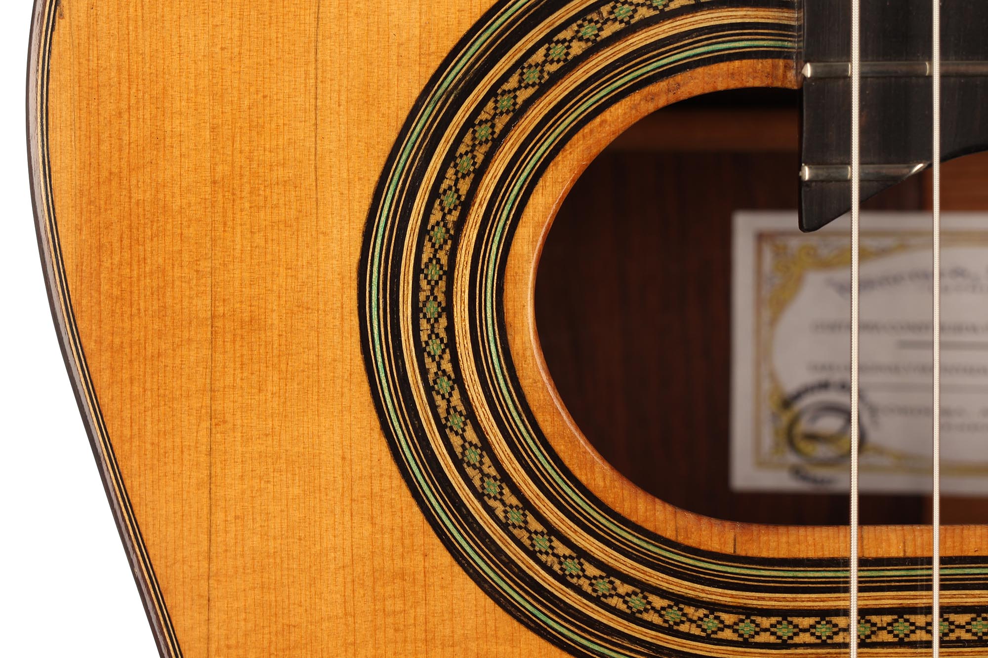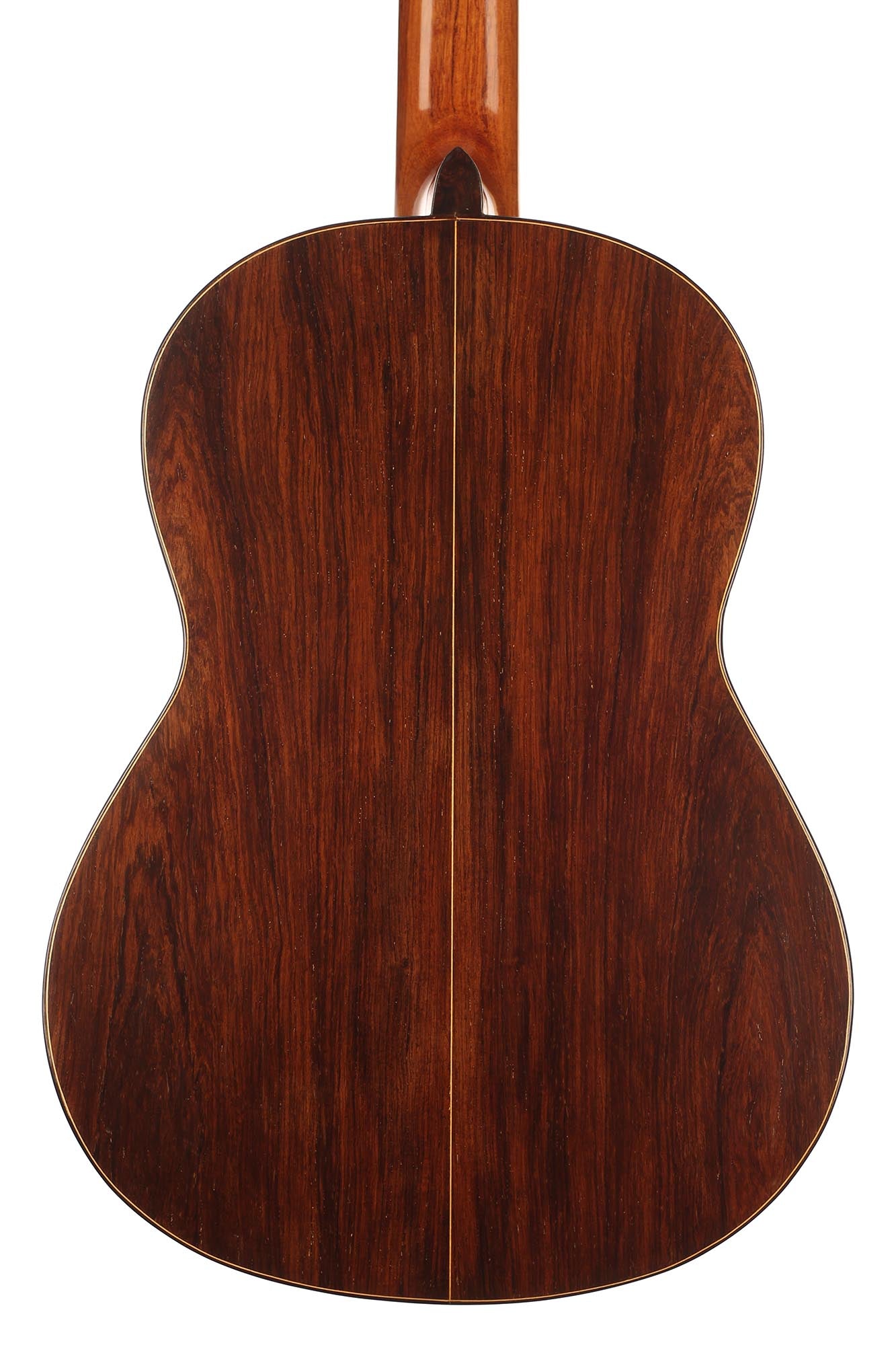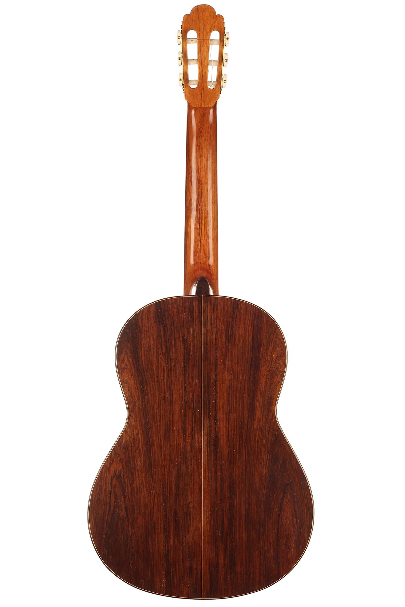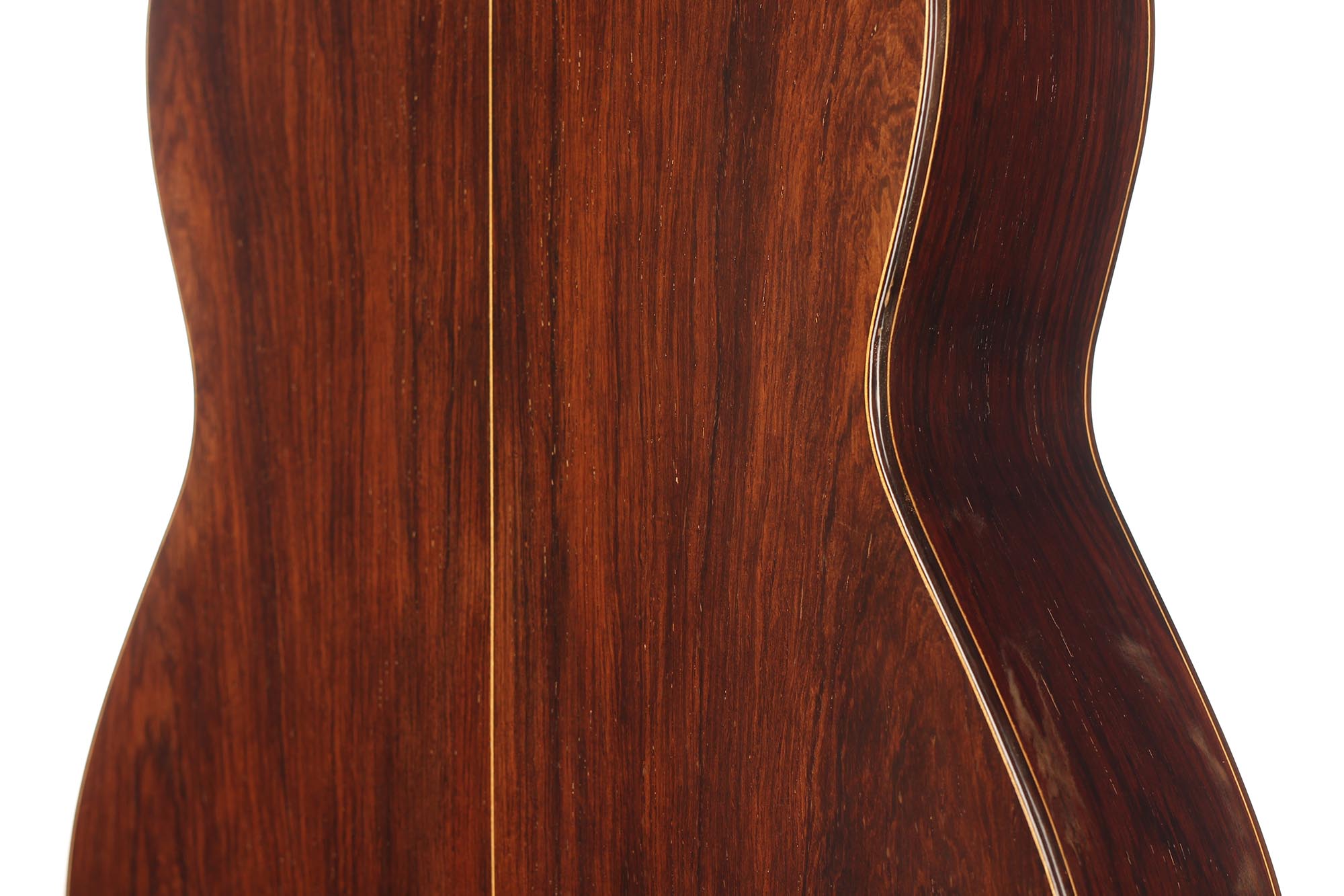 Diese schöne Gitarre hat die Besonderheit, dass sie eine von Francisco Simplicio (1874-1932) gebaute originale Decke hat. Sie ist daher ein Instrument von historischer Bedeutung. Tatsächlich wurde die Decke von Francisco Simplicio nach einem von dem Gitarristen und Professor Antonio Sinopoli (1878-1964) angemeldeten Patent gebaut. Sie hat eine asymmetrische, achtfächrige Verstrebung, wobei die Leisten brückenartig geformt und ausgehöhlt wurden, was die Struktur erheblich leichter macht. Darüber hinaus ist die Geschichte dieser Decke sehr interessant: Sie ging von Francisco Simplicio zu seinem Schüler Enrique Coll (1894-1978) und gelangte dann in die Sammlung von Marcelino Lopez Nieto (1931-2018). Im Jahr 2019 wurde diese einzigartige Decke von dem Gitarrenbauer Manuel Ordonez aus Córdoba zu einer Gitarre verarbeitet. Es handelt sich also um eine Gitarre von großem historischen Wert und ein absolut bezauberndes Konzertinstrument.