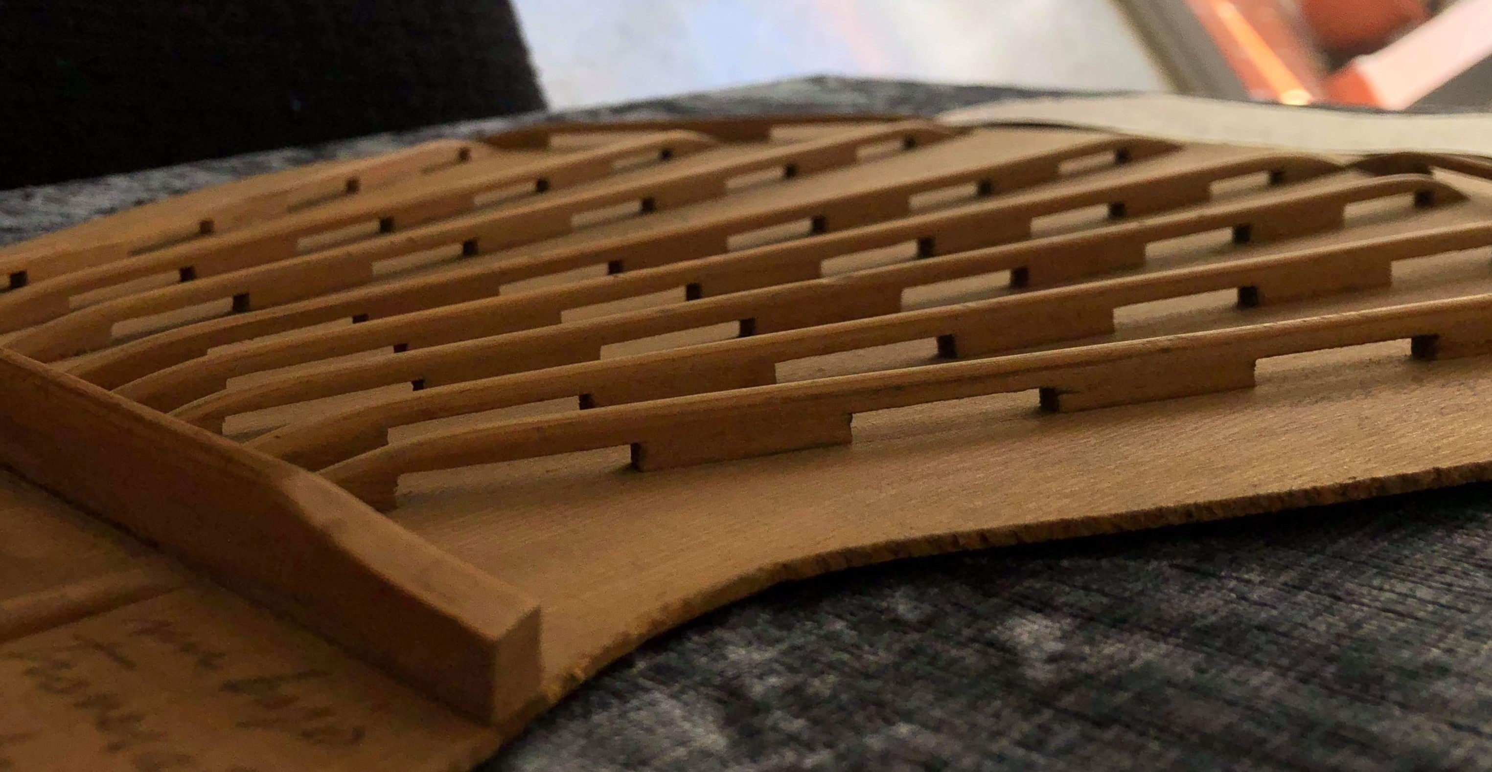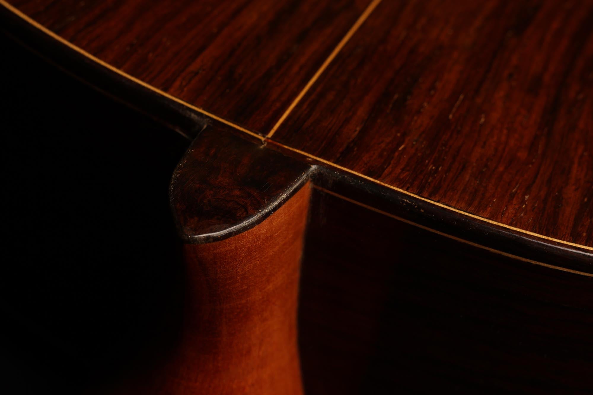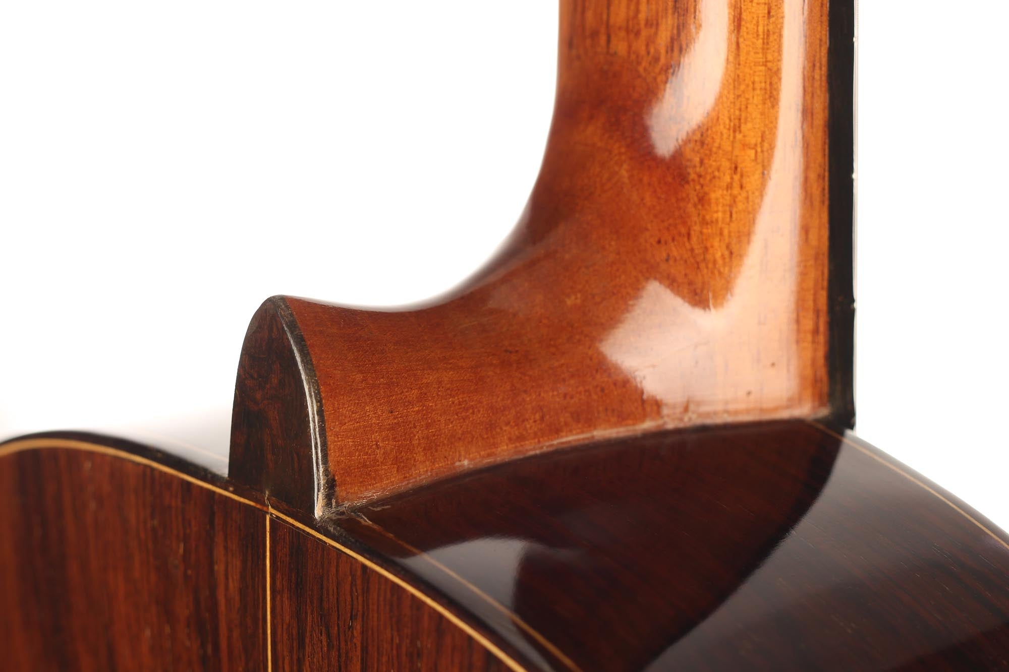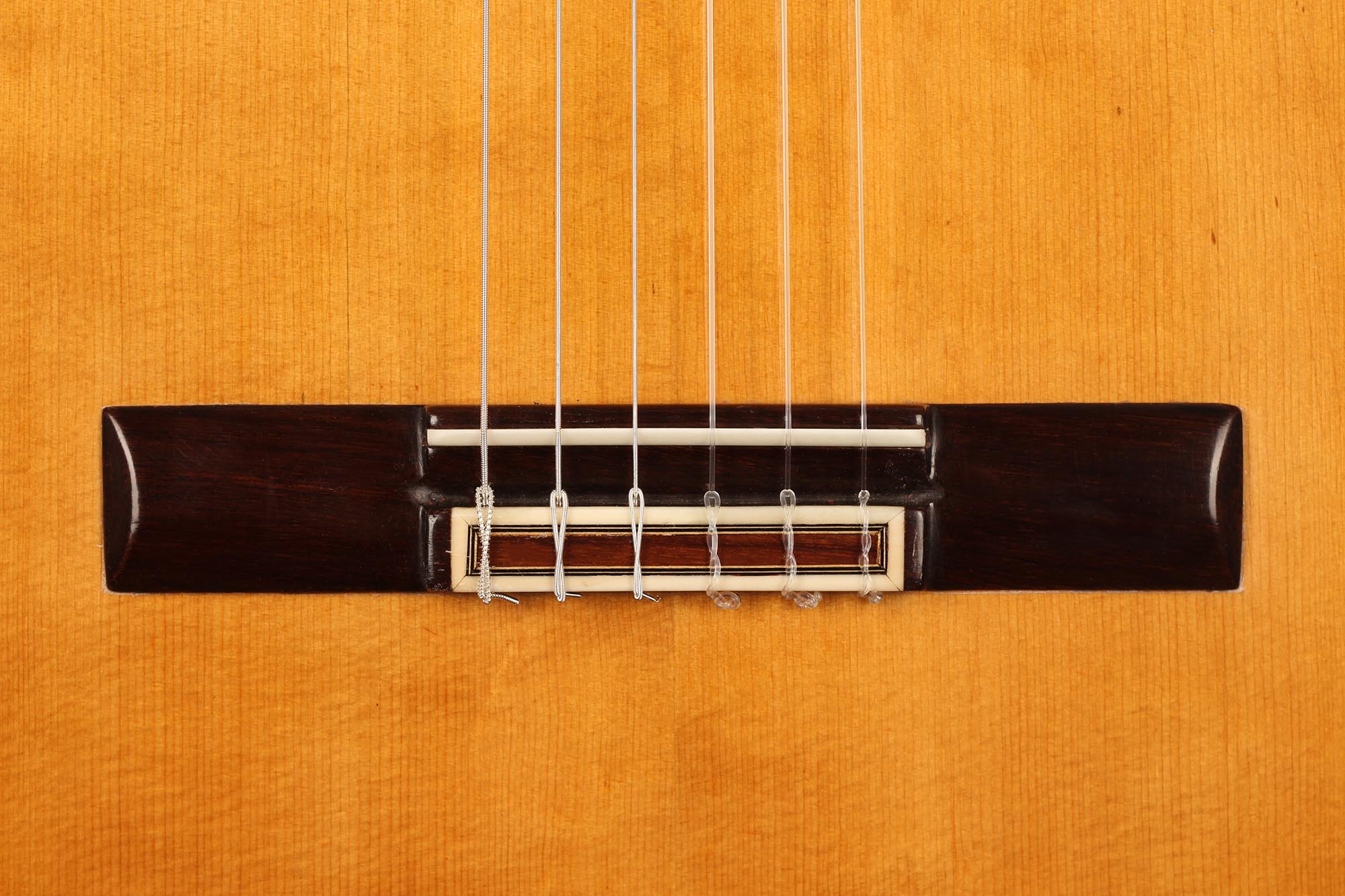 Diese schöne Gitarre hat die Besonderheit, dass sie eine von Francisco Simplicio (1874-1932) gebaute originale Decke hat. Sie ist daher ein Instrument von historischer Bedeutung. Tatsächlich wurde die Decke von Francisco Simplicio nach einem von dem Gitarristen und Professor Antonio Sinopoli (1878-1964) angemeldeten Patent gebaut. Sie hat eine asymmetrische, achtfächrige Verstrebung, wobei die Leisten brückenartig geformt und ausgehöhlt wurden, was die Struktur erheblich leichter macht. Darüber hinaus ist die Geschichte dieser Decke sehr interessant: Sie ging von Francisco Simplicio zu seinem Schüler Enrique Coll (1894-1978) und gelangte dann in die Sammlung von Marcelino Lopez Nieto (1931-2018). Im Jahr 2019 wurde diese einzigartige Decke von dem Gitarrenbauer Manuel Ordonez aus Córdoba zu einer Gitarre verarbeitet. Es handelt sich also um eine Gitarre von großem historischen Wert und ein absolut bezauberndes Konzertinstrument.