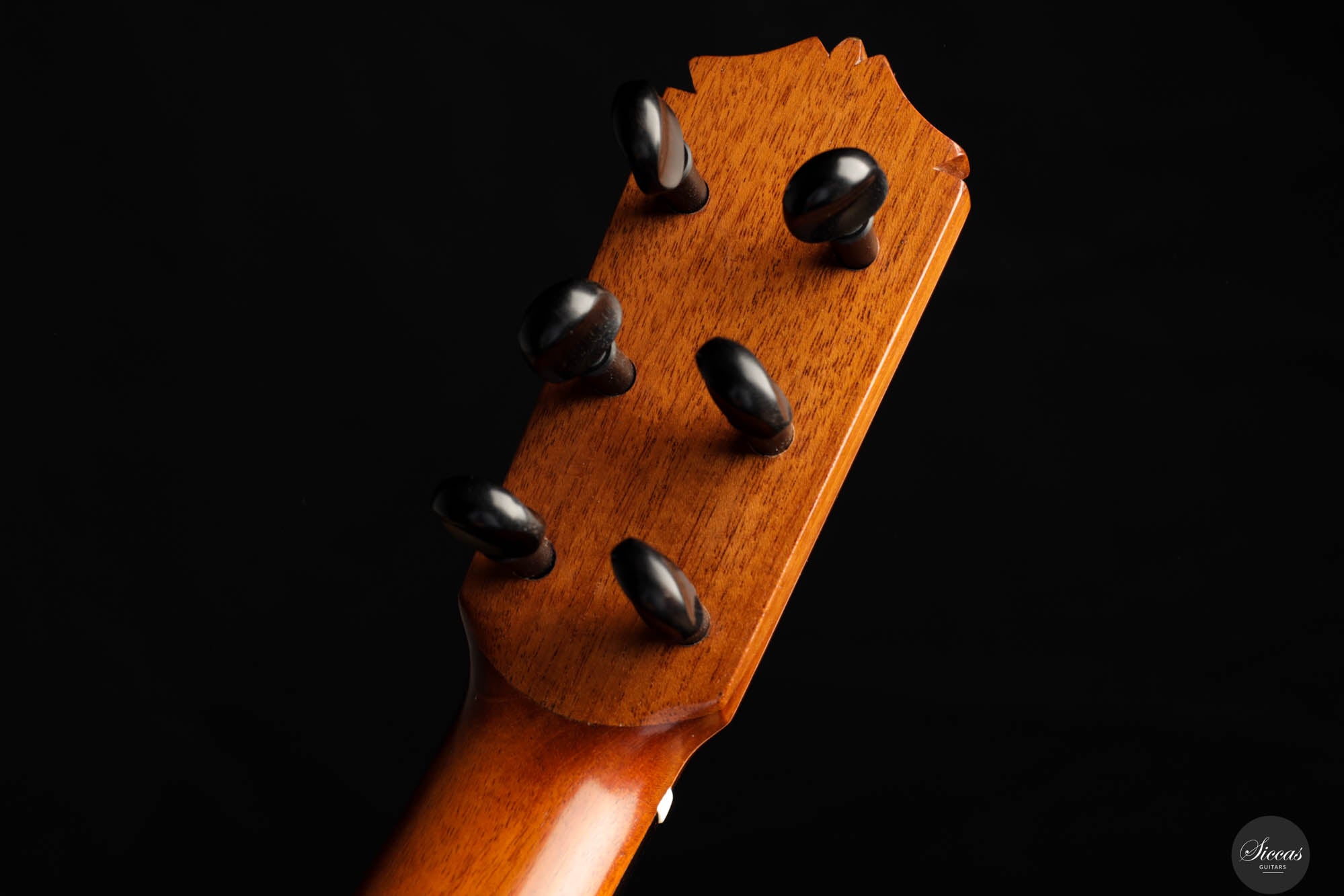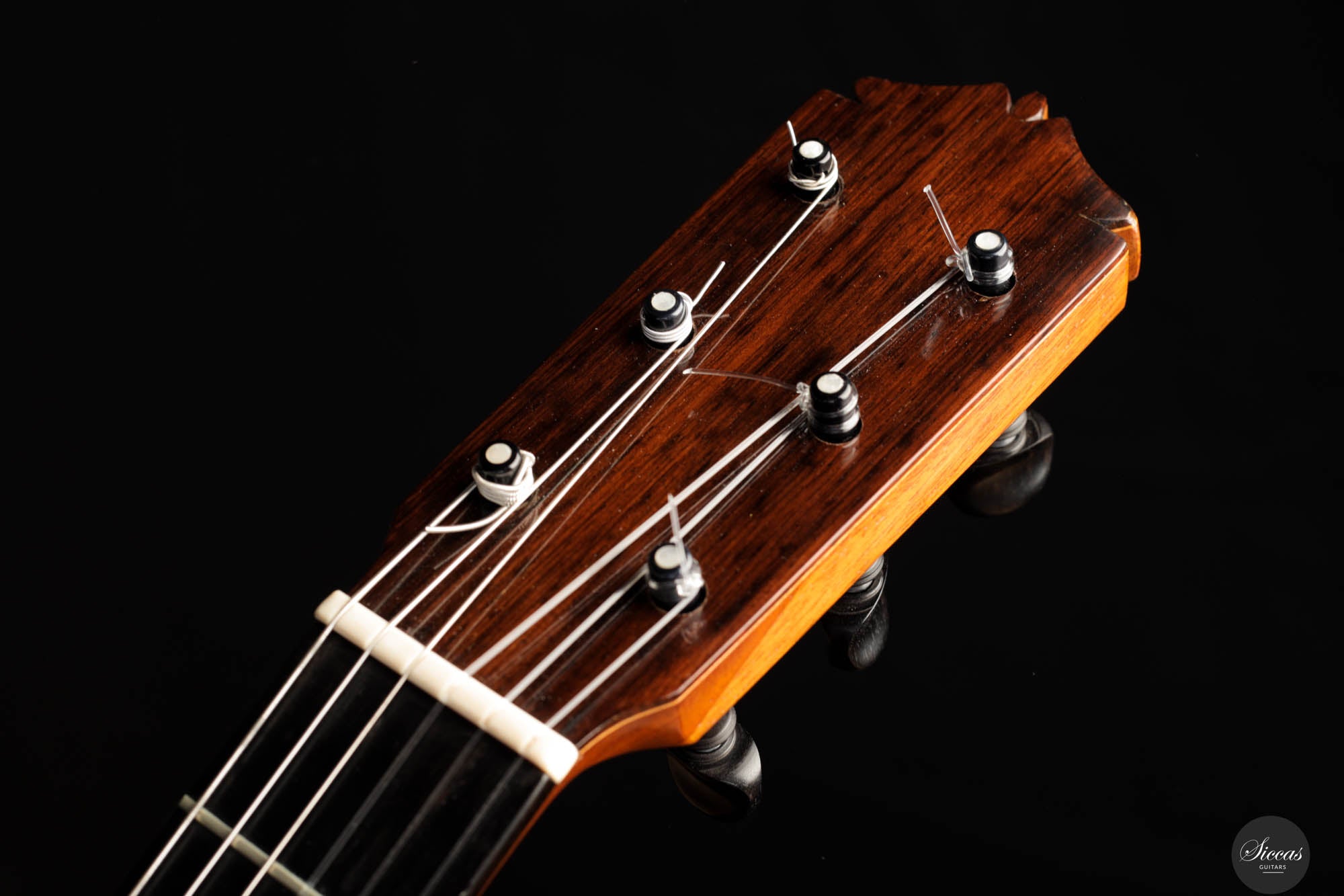 Die Klangqualität dieses Meisterwerks von 1945 ist ebenso beeindruckend wie seine Geschichte. Robust und tiefgreifend expressiv ist der Klang der Gitarre durchdrungen von einer Reichhaltigkeit und Tiefe, die jedem Musikstück eine unvergleichliche Raffinesse verleiht. Diese Gitarre zu spielen ist wie das Weben von Geschichten und Emotionen in einen Klangteppich, der ein bezauberndes musikalisches Erlebnis bietet. Das Instrument wurde vom talentierten Gitarrenbauer Gabriele Lodi restauriert, was seine Erhaltung und Bespielbarkeit sicherstellt. Unter Lodis fachkundiger Pflege wurden mehrere Risse stabilisiert und neu poliert, wodurch die Gitarre wieder spielbereit gemacht wurde. Diese Restaurierung hat nicht nur die physische Schönheit der Gitarre bewahrt, sondern auch die Integrität ihres Klangs beibehalten, sodass Musiker die gleiche bezaubernde Resonanz erleben können, die Barberos Gitarren legendär gemacht hat.