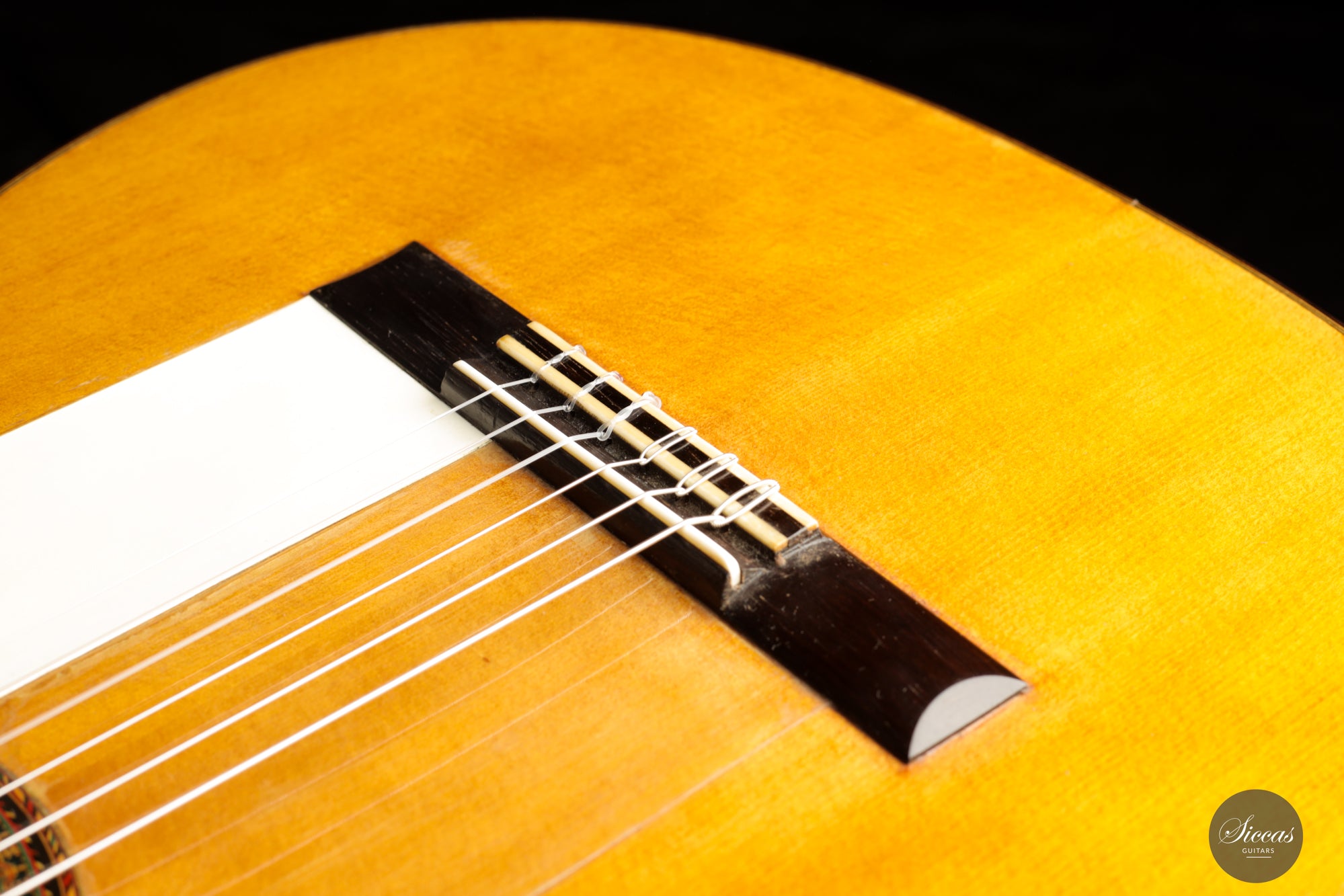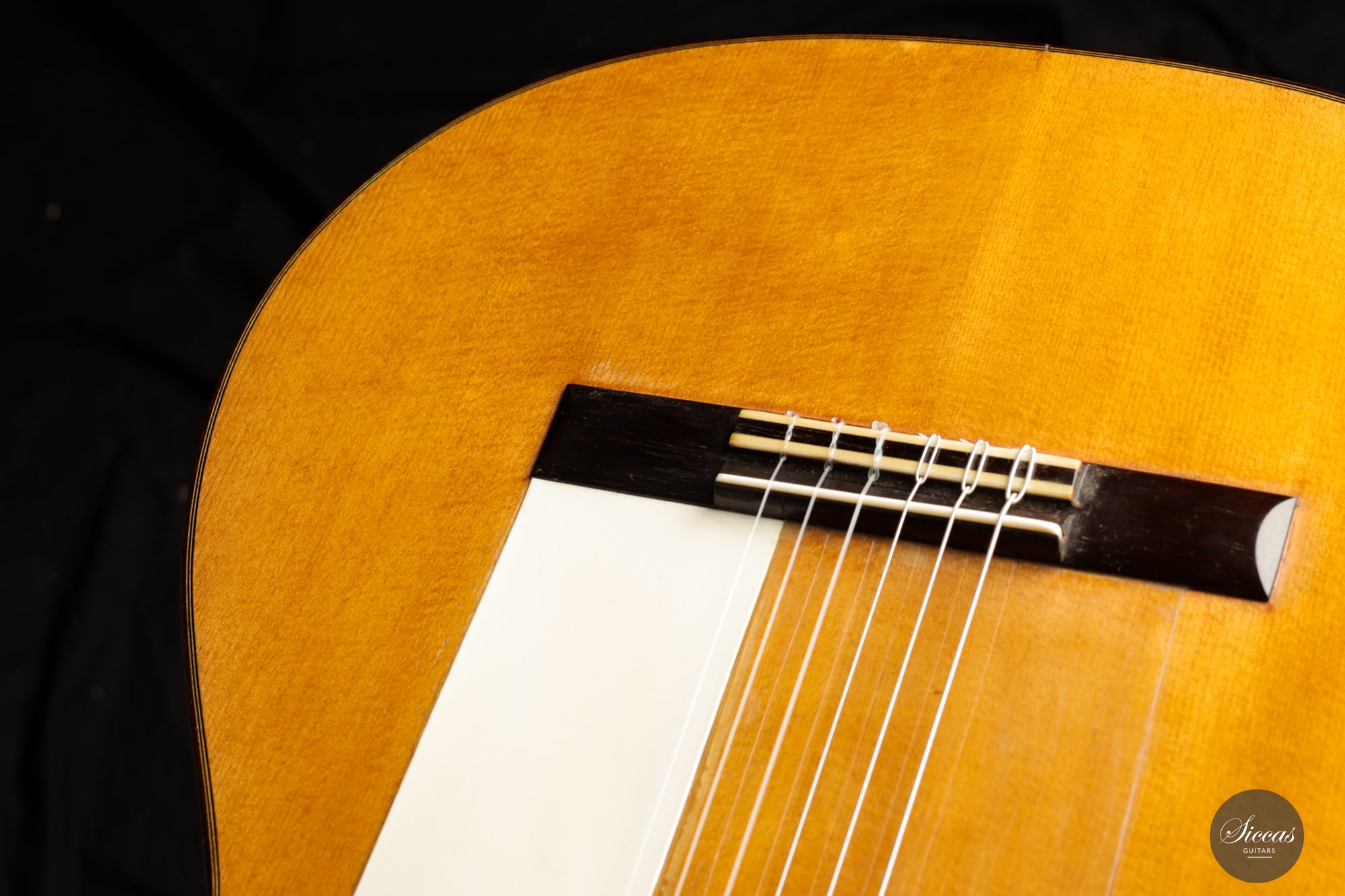 Trotz ihres Alters bleibt diese Gitarre in sehr gutem Zustand, ein Zeugnis für die Qualität ihrer Konstruktion und die Pflege, die sie im Laufe der Jahre erhalten hat. Der einzelne reparierte Riss zwischen dem Schallloch und der Brücke mindert weder ihre Schönheit noch ihren Klang, sondern fügt der Geschichte der Gitarre hinzu und markiert ihre Reise durch die Zeit.