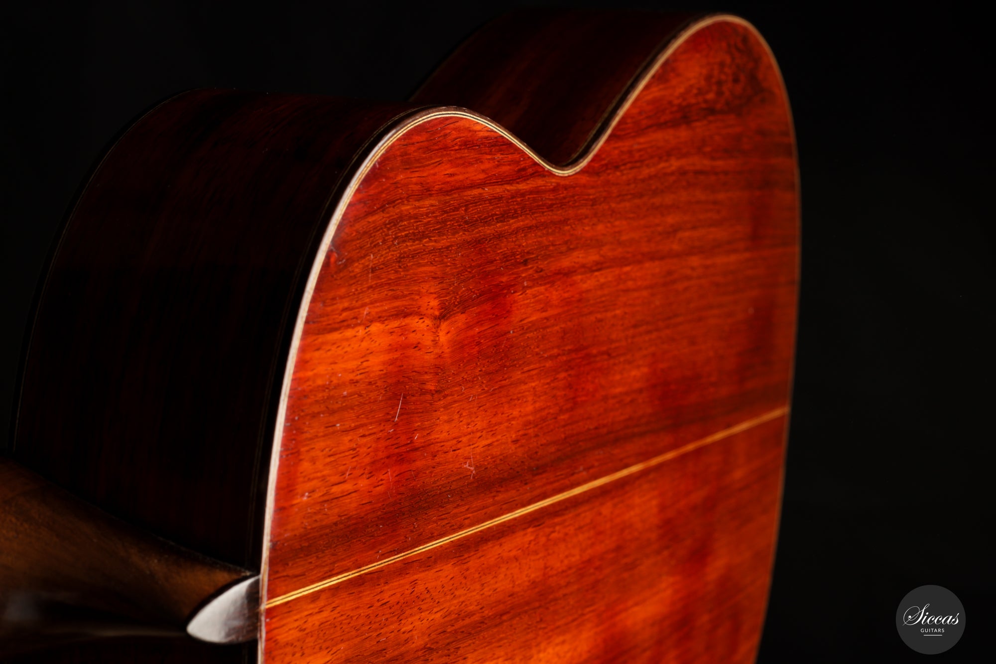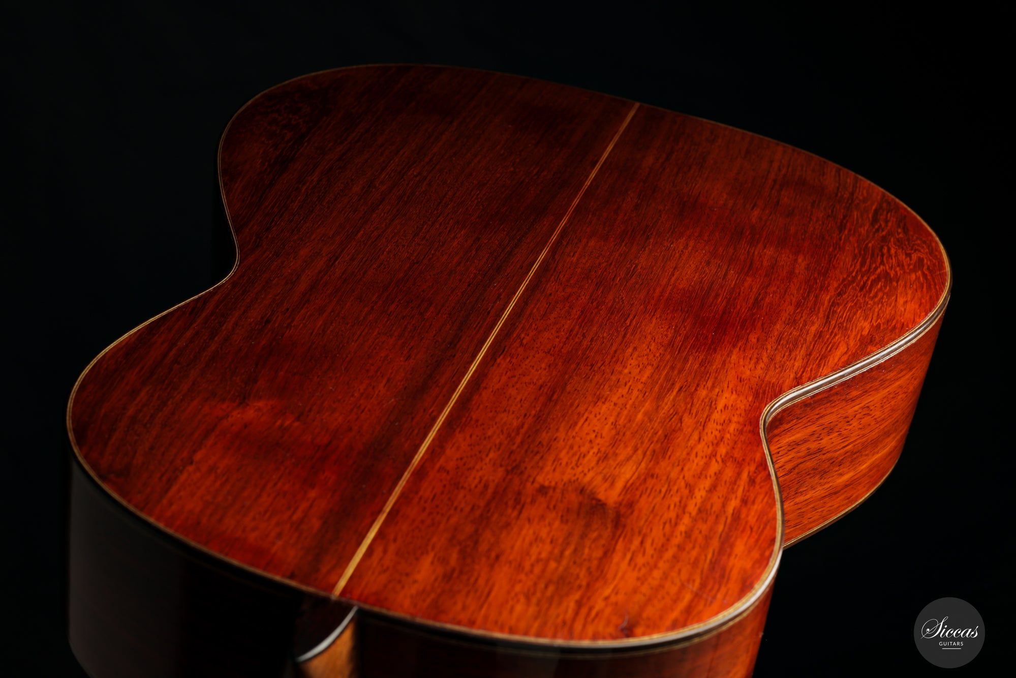 Ausgezeichnet durch ihre einzigartige Kombination von Materialien, verfügt diese Gitarre über eine Fichtendecke, die mit Padouk für Rücken und Seiten gepaart ist. Die Verwendung von Padouk, einem Holz, das für seine reiche Farbe und tonalen Eigenschaften geschätzt wird, ist eine Seltenheit in Barberos Kreationen, was diese spezielle Gitarre zu einem einzigartigen Fund für Sammler und Musiker gleichermaßen macht.