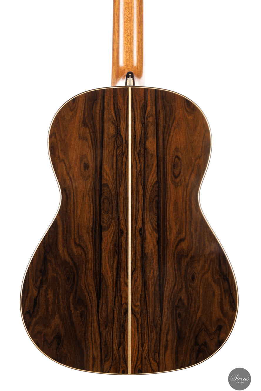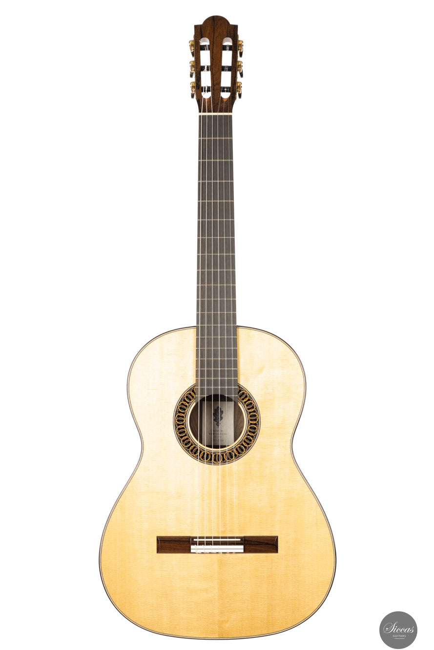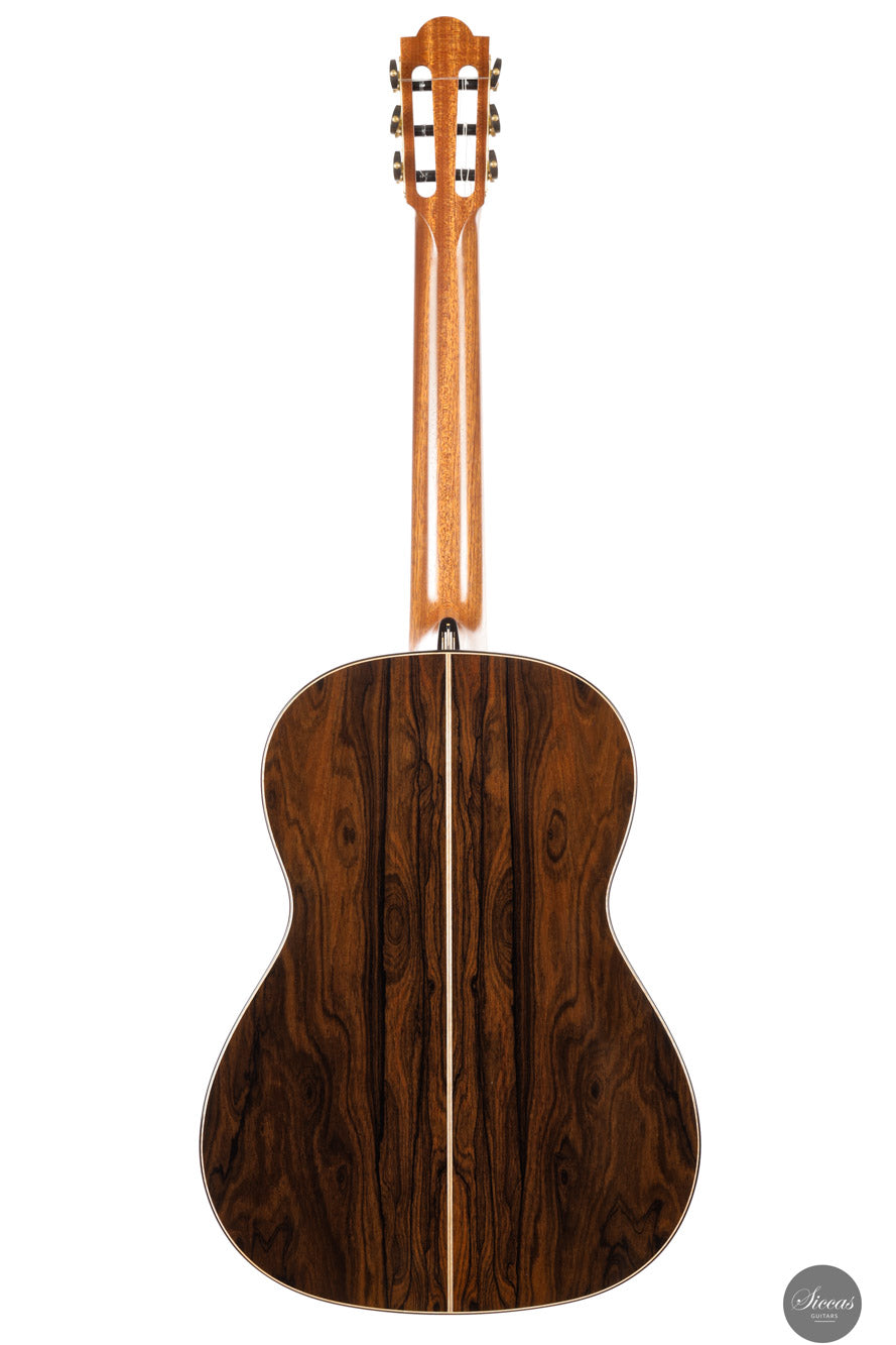 Dieses 2025 gefertigte Instrument mit der Nummer 117 spiegelt Marco Bortolozzos intensive Auseinandersetzung mit historischen Baukonzepten und moderner Gestaltung wider. Die Konstruktion orientiert sich an der berühmten Hermann Hauser von 1937, die einst von Andrés Segovia gespielt wurde. Die Gitarre besitzt doppelte Zargen sowie einen dezenten hölzernen Tornavoz, welche gemeinsam für eine nuancierte Klangverstärkung sorgen.