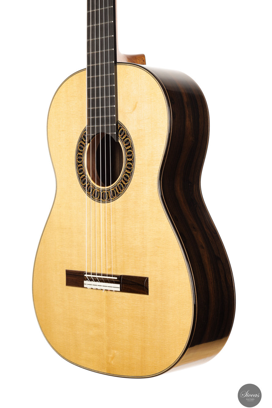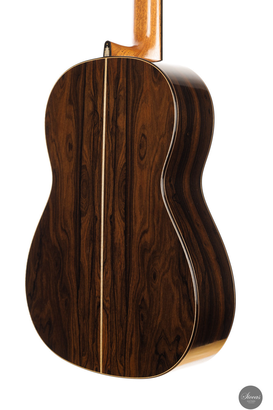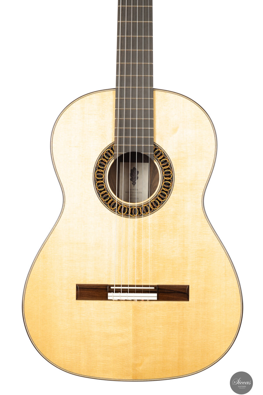 Dieses 2025 gefertigte Instrument mit der Nummer 117 spiegelt Marco Bortolozzos intensive Auseinandersetzung mit historischen Baukonzepten und moderner Gestaltung wider. Die Konstruktion orientiert sich an der berühmten Hermann Hauser von 1937, die einst von Andrés Segovia gespielt wurde. Die Gitarre besitzt doppelte Zargen sowie einen dezenten hölzernen Tornavoz, welche gemeinsam für eine nuancierte Klangverstärkung sorgen.