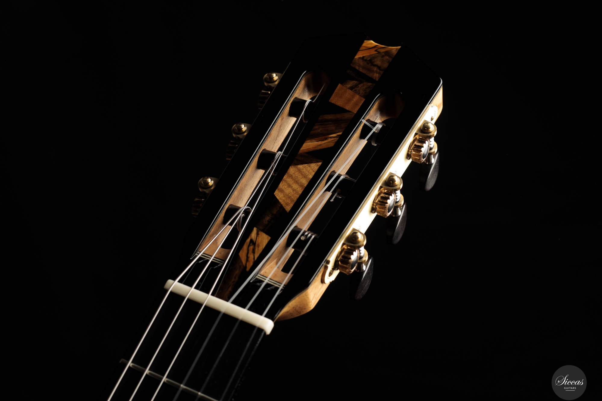 Marco Dissegna ist ein geschätzter Gitarrenbauer, der für seinen traditionellen und zugleich modernen Ansatz im Gitarrenbau bekannt ist. Seine Faszination für Musik und Musikinstrumente inspirierte ihn dazu, eine Karriere im Gitarrenbau anzustreben, mit dem Traum, Instrumente zu schaffen, die die Kunst der Musik zum Leben erwecken können. Seine Reise begann an der Scuola di Liuteria di Pieve di Cento, wo er seine erste Ausbildung erhielt. Danach, von 2011 bis 2015, besuchte er die Civica Scuola di Liuteria di Milano in der Abteilung für Zupfinstrumente. Während dieser Zeit begann Dissegna, seinen eigenen, einzigartigen Ansatz für das Handwerk zu entwickeln. Nach seinem Abschluss hatte er die Möglichkeit, unter der fachkundigen Anleitung von zwei Gitarrenbaumeistern, Aldo Illoota und Lorenzo Lippi, zu arbeiten. Diese Erfahrungen verfeinerten Dissegnas Technik und steigerten seine Wertschätzung für die Kunst des Gitarrenbaus. Im Jahr 2020 wagte Dissegna den Schritt, seine eigene Werkstatt in Mestre, Venedig, zu eröffnen. Hier widmet er sich dem Bau klassischer Gitarren und konzentriert sich auf die Herstellung von Instrumenten, die sowohl komfortabel als auch dynamisch für zeitgenössische Gitarristen sind. Dissegnas Bautechniken sind zwar in der Tradition verwurzelt, spiegeln aber auch die Bedürfnisse des modernen Gitarristen wider. Er lässt sich von den Meistern der Vergangenheit und der Gegenwart inspirieren, wobei er das klassische Timbre der Gitarre beibehält und gleichzeitig zeitgenössische Designelemente einbezieht. Wenn es um Materialien geht, verwendet Dissegna nur das Beste. Seine Vorliebe für Holz erstreckt sich nicht nur auf die Struktur der Gitarre, sondern auch auf ihre Verzierungen. Die Decke ist aus italienischer Fichte, Boden und Zargen aus indischem Palisander, der Hals aus Cedrela und das Griffbrett aus Ebenholz. Diese sorgfältig ausgewählten Materialien führen zu einem Instrument, das nicht nur exquisit aussieht, sondern auch einen Klang von außergewöhnlicher Qualität erzeugt. Der letzte Schliff ist der von Hand aufgetragene Schellack, ein Beweis für Dissegnas Engagement, die altehrwürdigen Traditionen des Gitarrenbaus zu bewahren. Von seiner Faszination für Musikinstrumente bis hin zu seinen unverwechselbaren Bautechniken spiegelt Marco Dissegnas Weg als Gitarrenbauer eine nahtlose Verschmelzung von Leidenschaft, Tradition und Innovation wider.