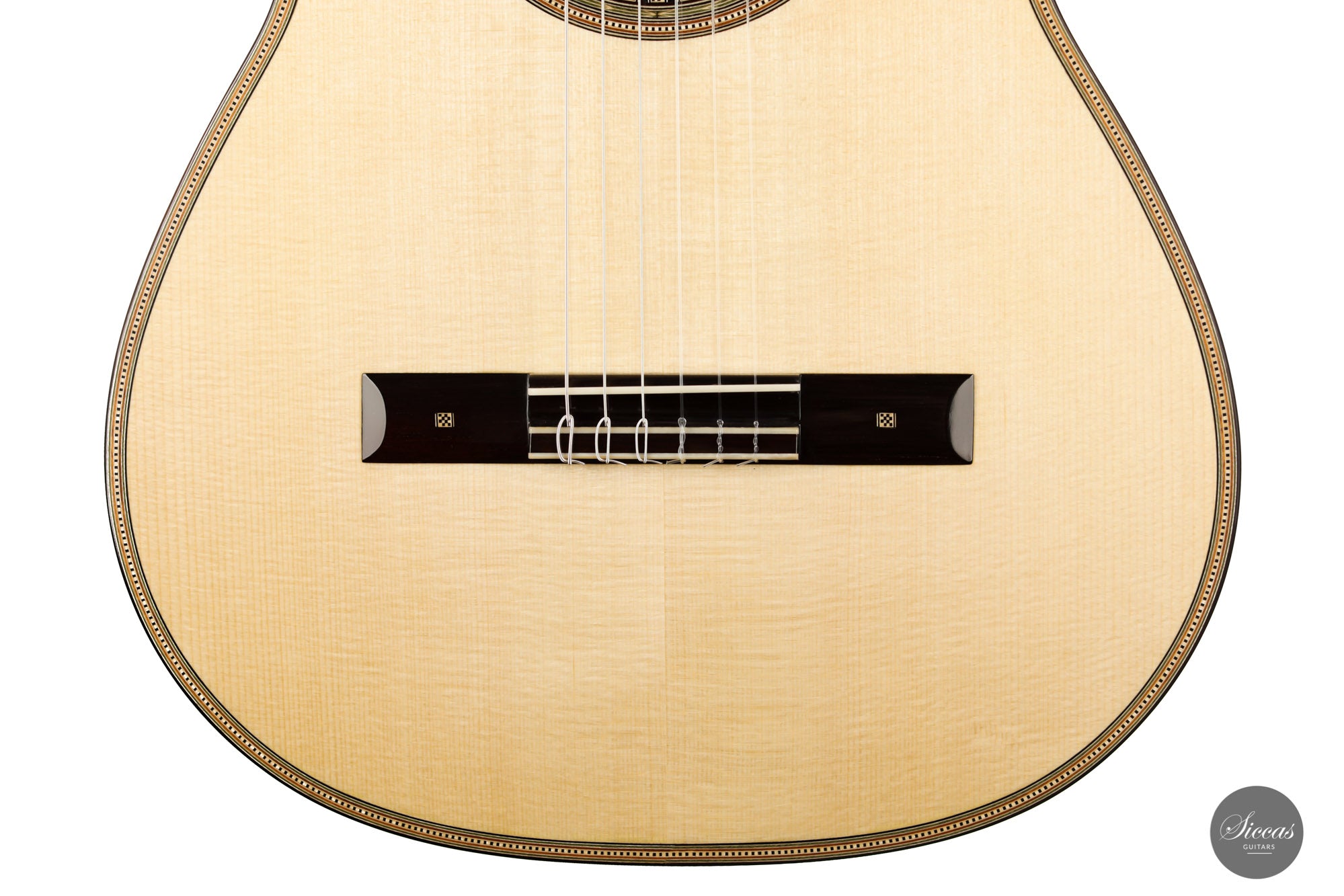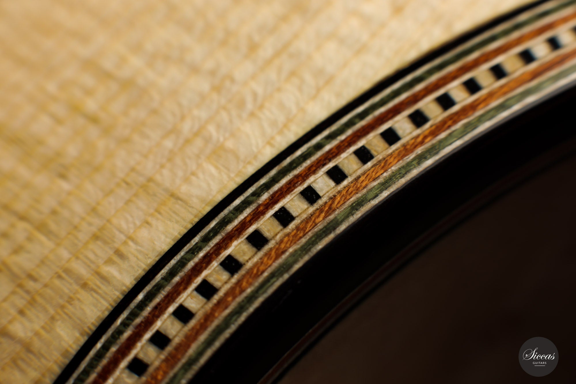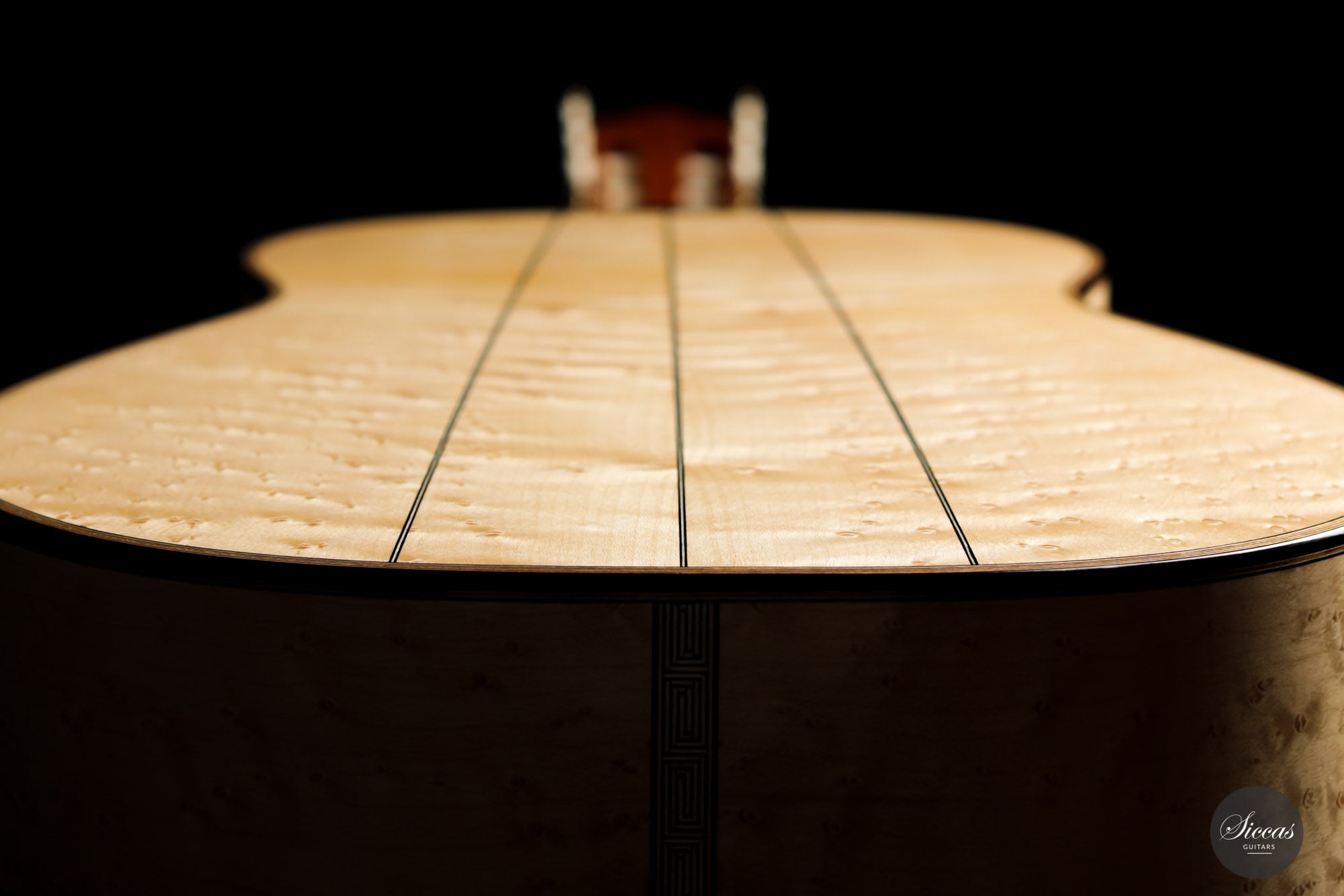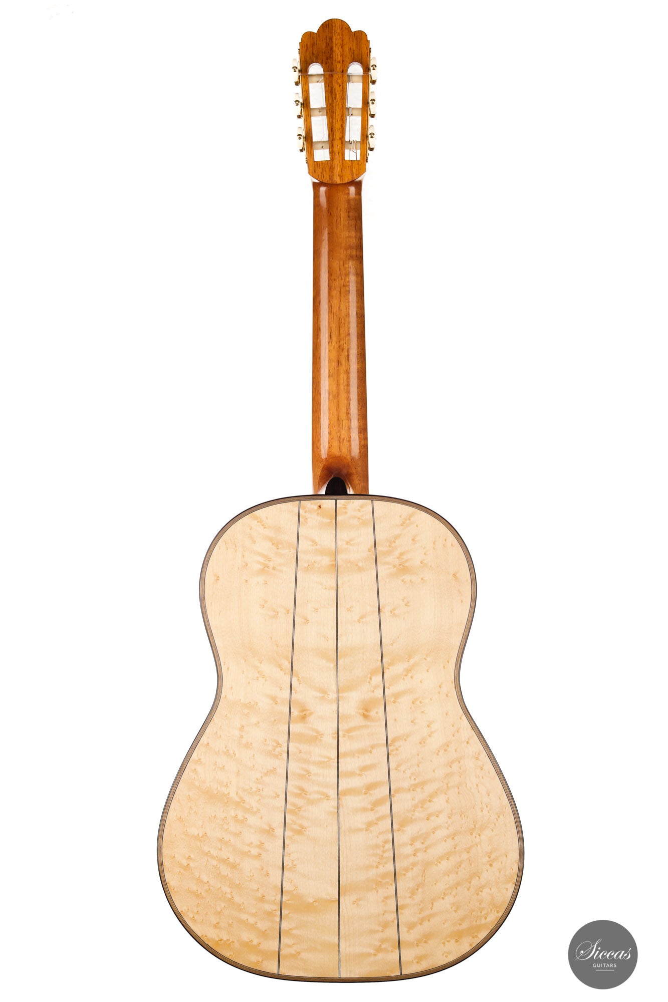This guitar is the first Torres model that we receive from Marco, and it is truly magnificent. It was made as a tribute to Antonio de Torres, the father of the modern guitar, and is a beautifully decorated replica of an 1867 Antonio de Torres. A mesmerizing Birdseye maple has been used for the back and sides, and the overall decoration is rich and detailed. The air resonance of the body is very low, like that of the original, giving it a deep and authentic old-world sound.