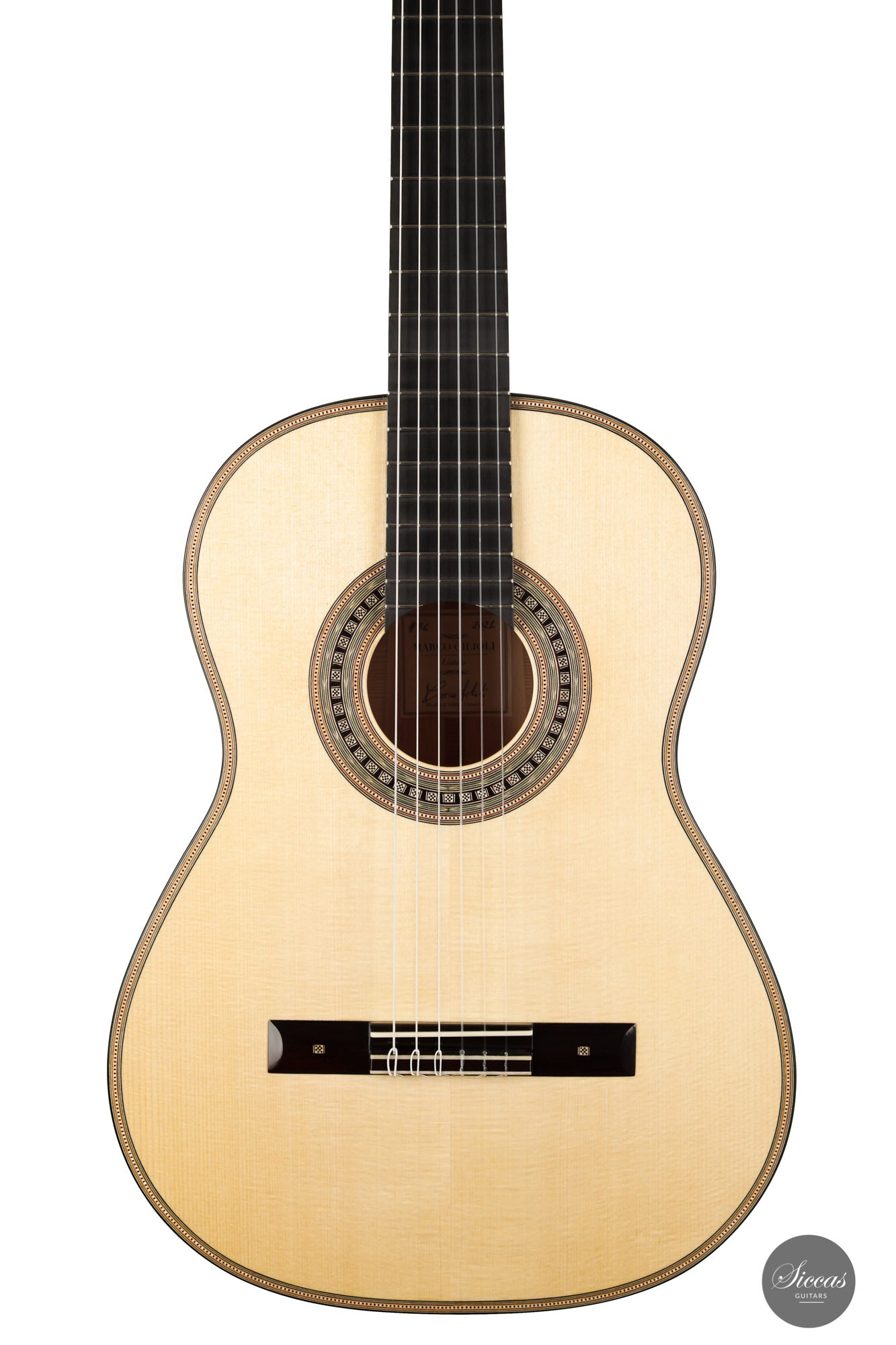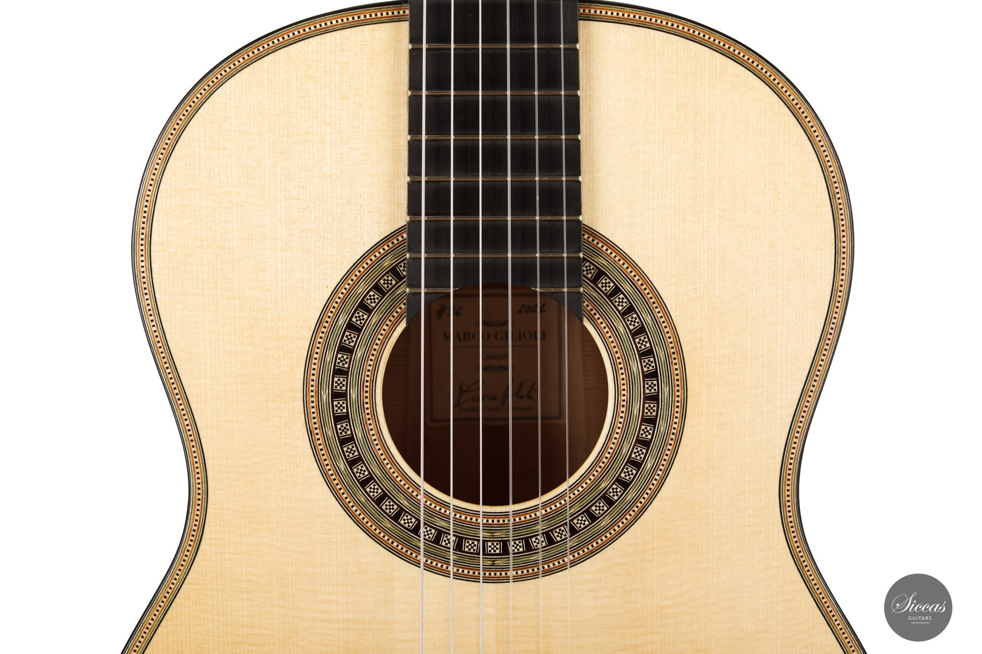 Marco Gilioli is a very talented Italian luthier based near Milan, Italy. His instruments are built according to the traditional Spanish method, focusing on both the sound and the needs of the guitarist. A sweet, soft, and well-balanced tone, with deep basses and clear trebles, characterize his guitars. The playability and sound projection are also very important for Marco. As a result, his instruments are very charming, easy to play, and suitable for concert players as well as for amateurs of fine guitars.