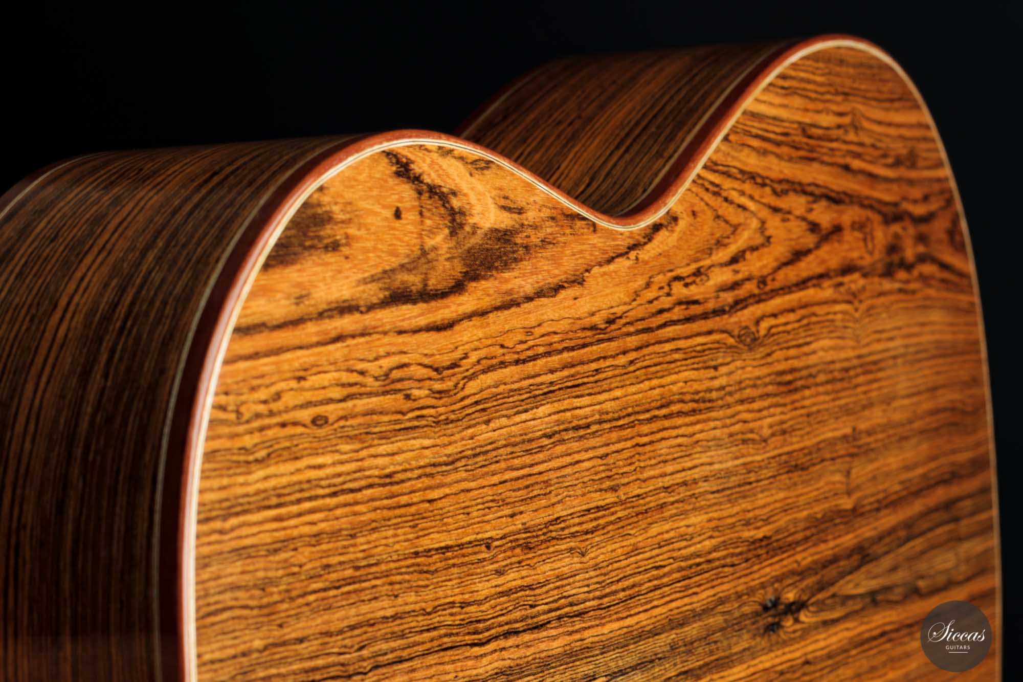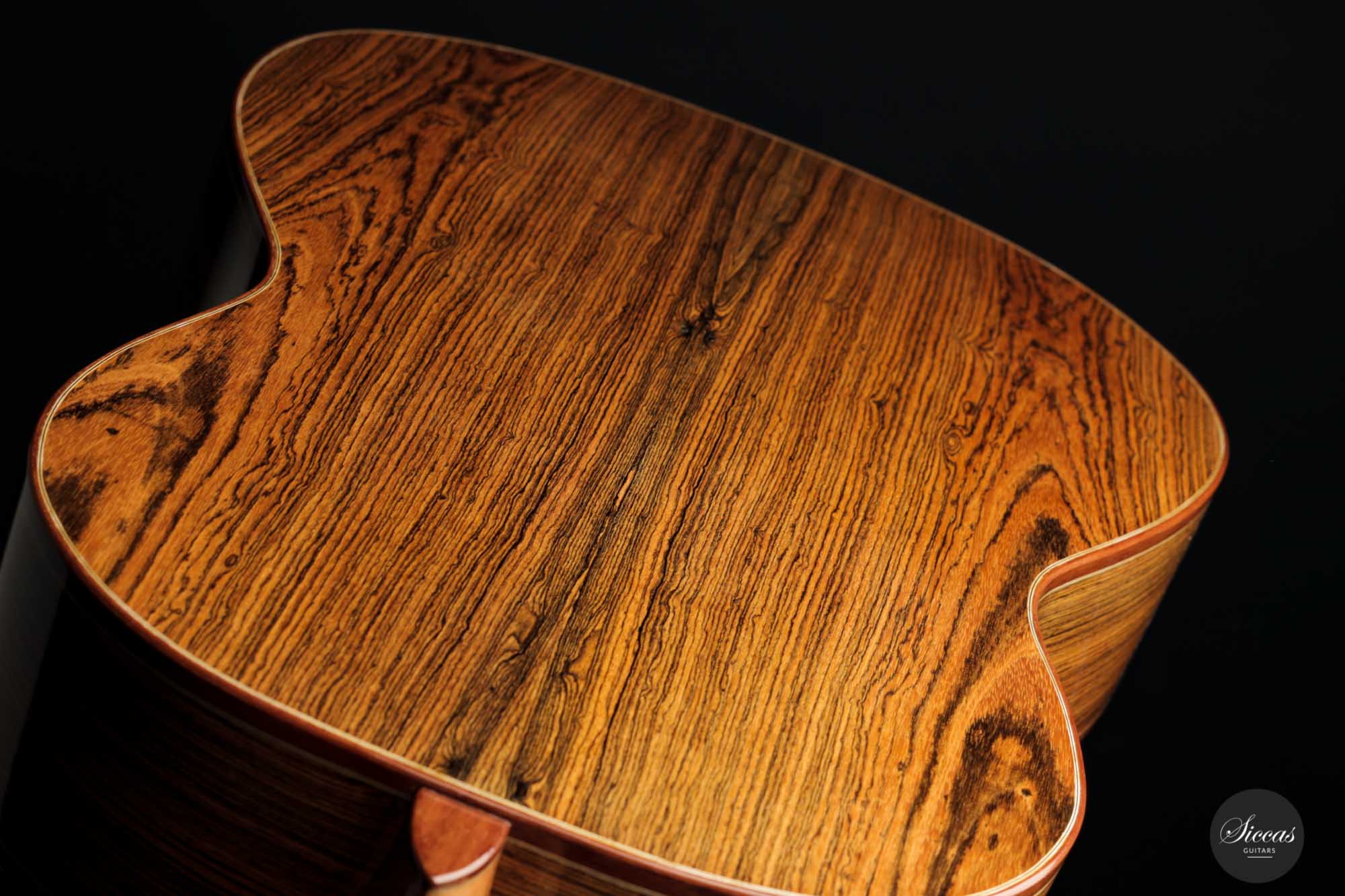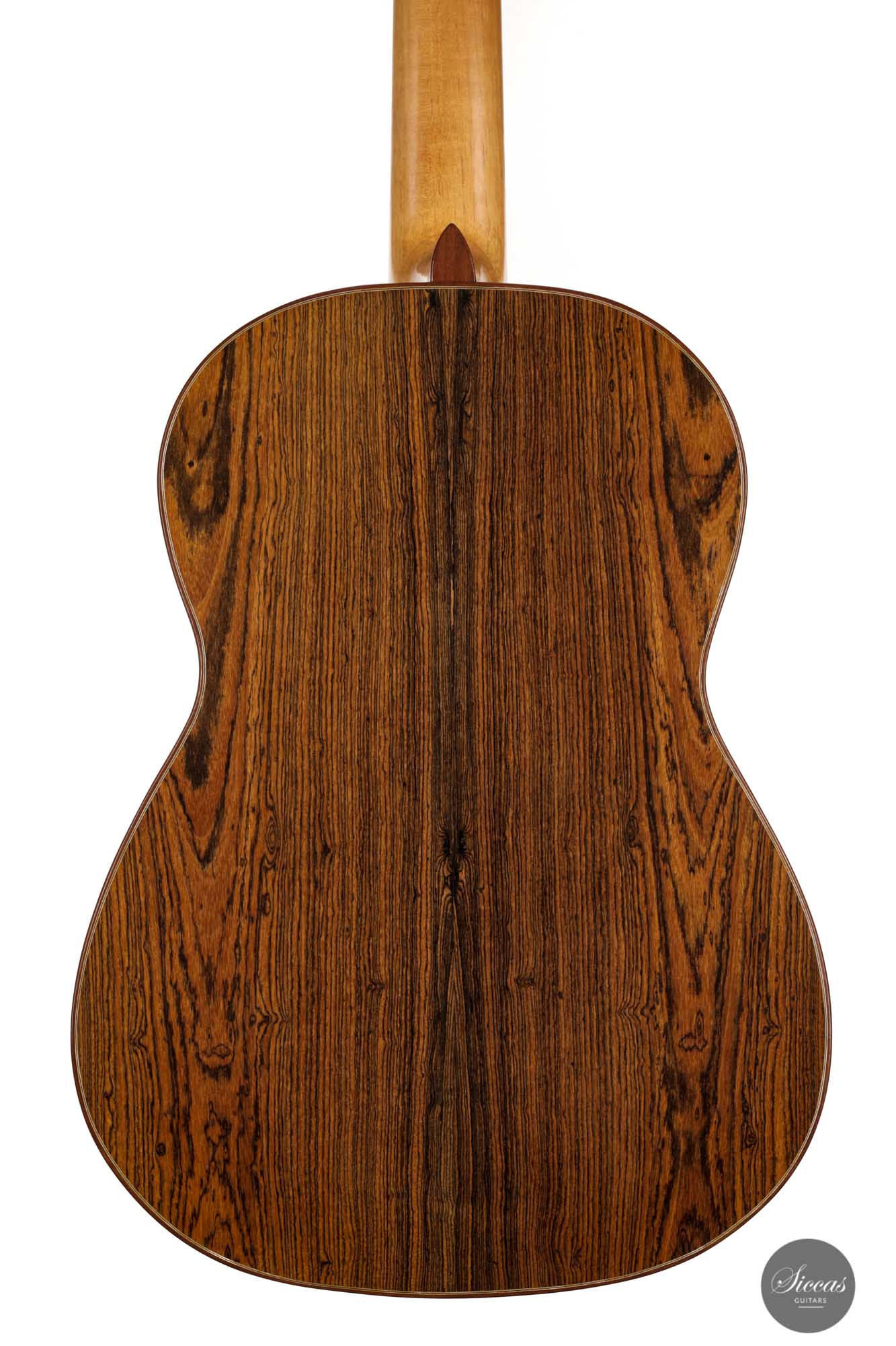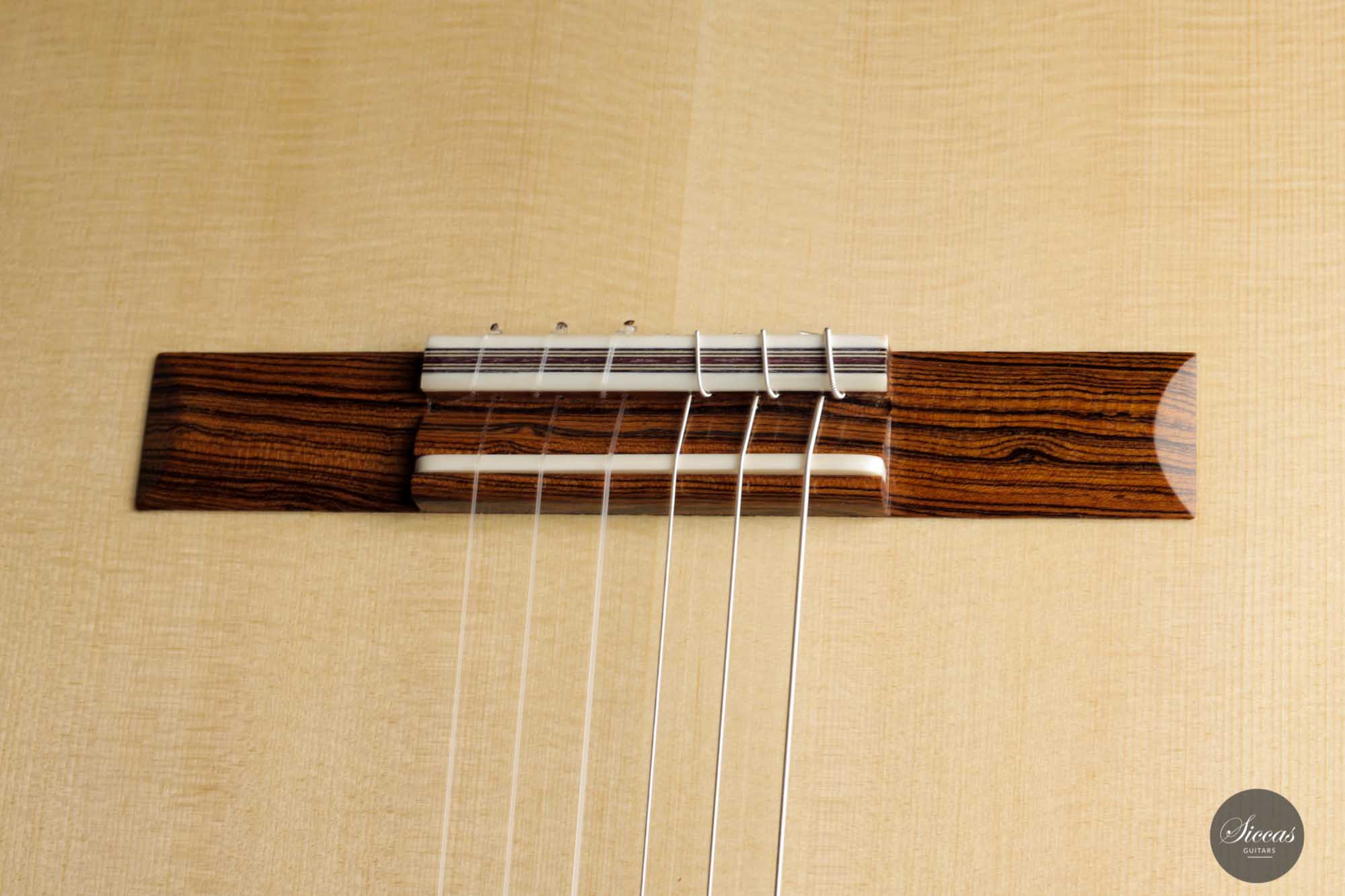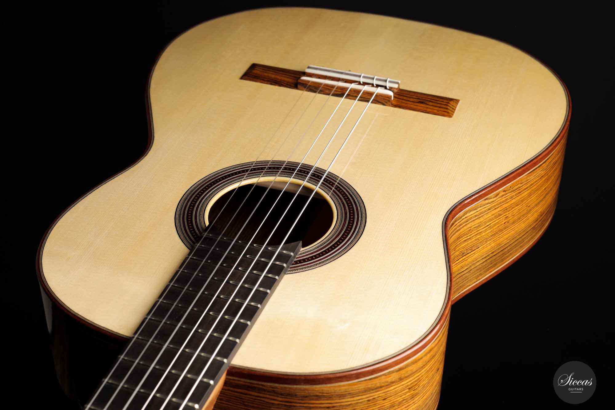 "Over time, I have refined my visual and acoustic perception. I build each guitar one by one in order to work on them as a whole. I use traditional construction methods inspired by the great masters such as Fleta, Friederich, and Bouchet. The combination of the soundboard with the back and sides, according to the different densities, is carefully thought out. I also pay a lot of attention to aesthetic research in the marriage of colors or the composition of the rosettes.