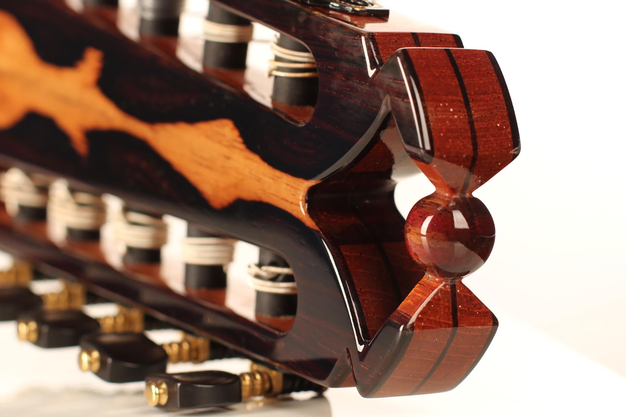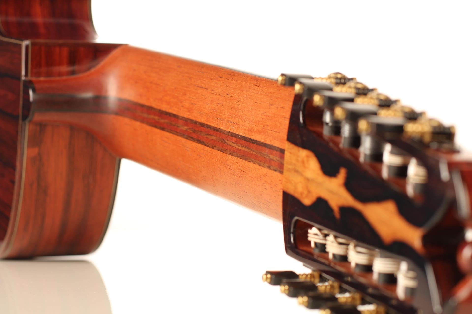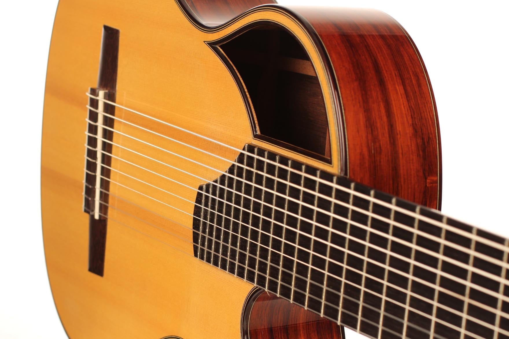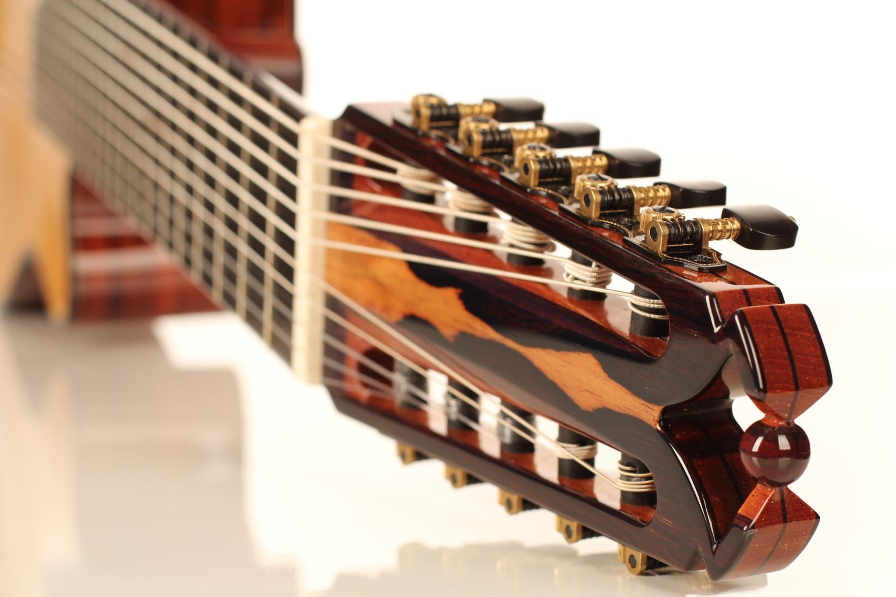 This guitar was built by Martin Bretscher in 2007 on the occasion of his Master examination. The Master examination, “Meister” in German, is a very important step in a luthier’s career and a real achievement. This ten-string guitar is showing incredible technical, aesthetic and acoustic qualities.
