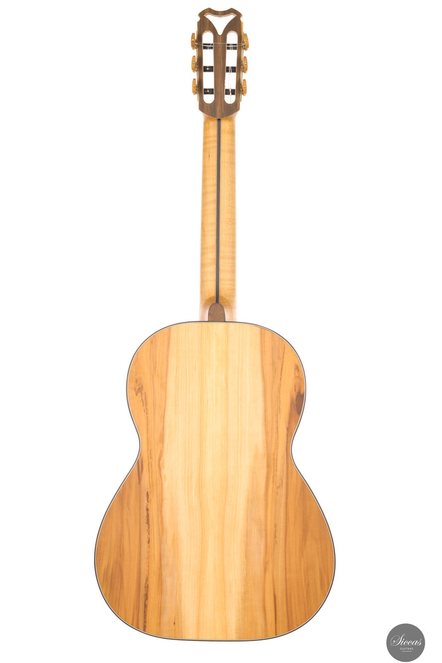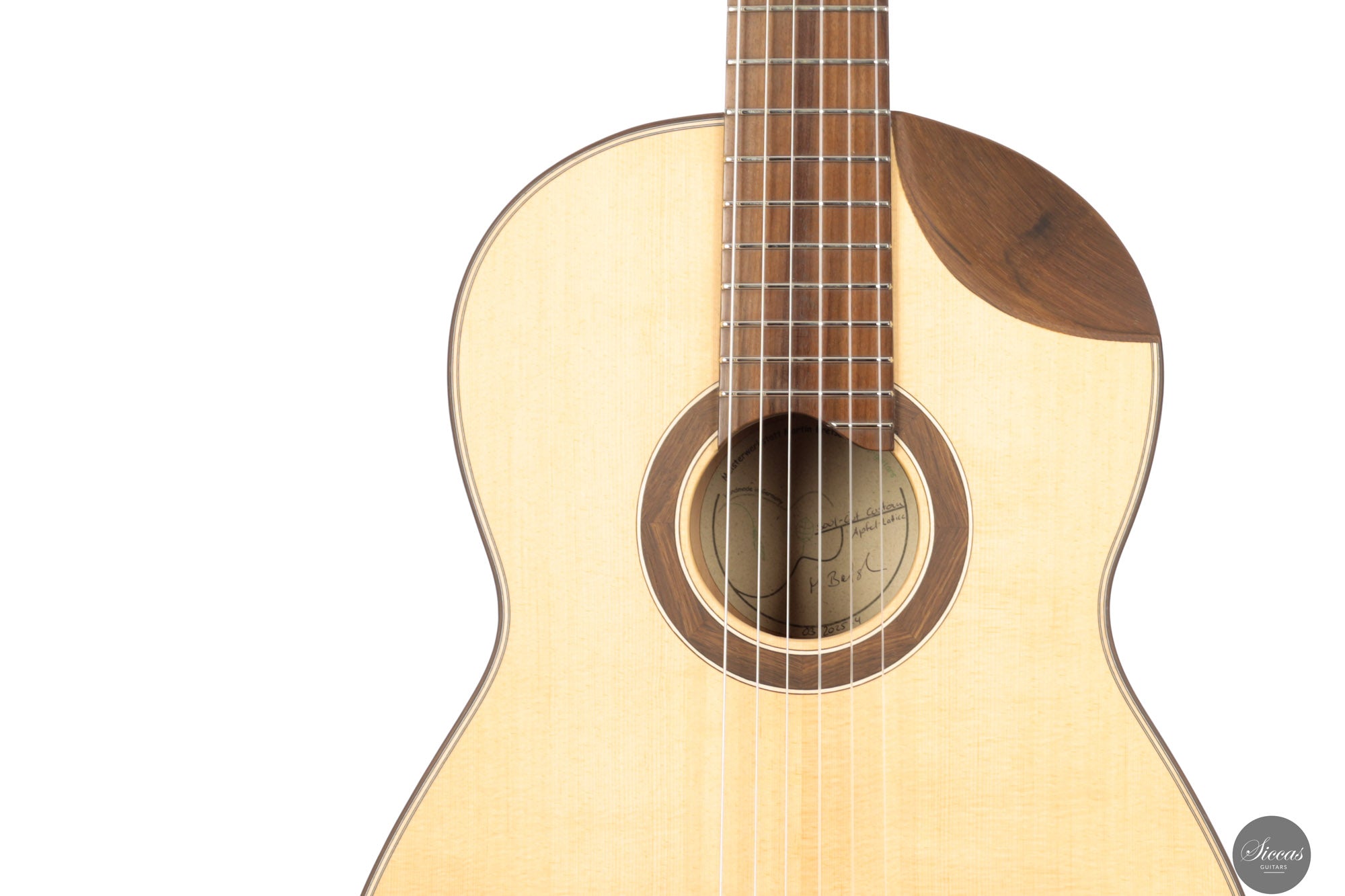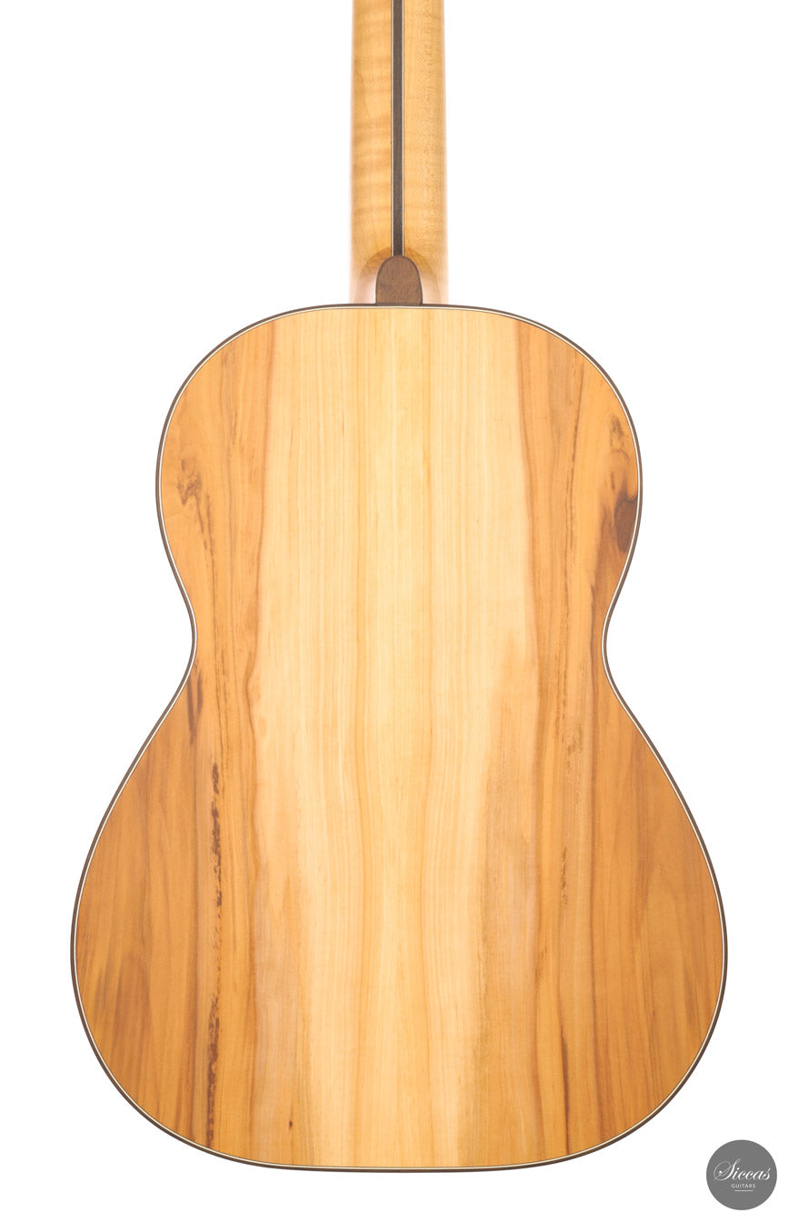 Das Modell Small Soul Lattice aus dem Jahr 2025 ist eine kompakte Konzertgitarre, die speziell für Gitarristinnen und Gitarristen entwickelt wurde, die besonderen Wert auf Komfort beim Spiel legen. Gefertigt in traditioneller spanischer Bauweise, verfügt sie über eine Fichtendecke und Boden sowie Zargen aus Apfelholz. Die Lattice-Beleistung mit einer besonders dünnen Decke (1,4 mm im Schwingungsfeld unter dem Steg) sorgt für eine schnelle Ansprache, präzise Tonentwicklung und eine sehr gute Trennschärfe – ideal für virtuose Passagen und klare Artikulation.