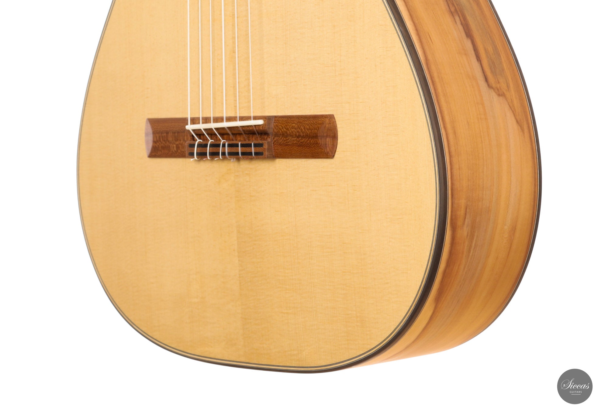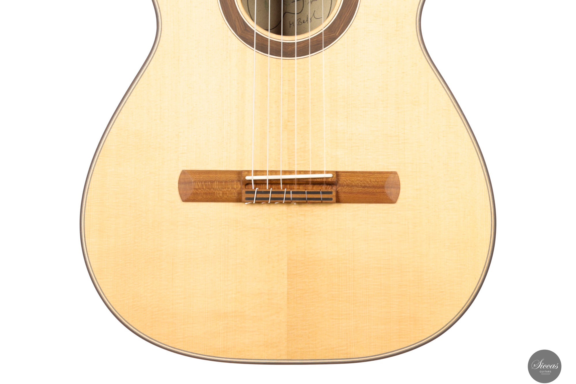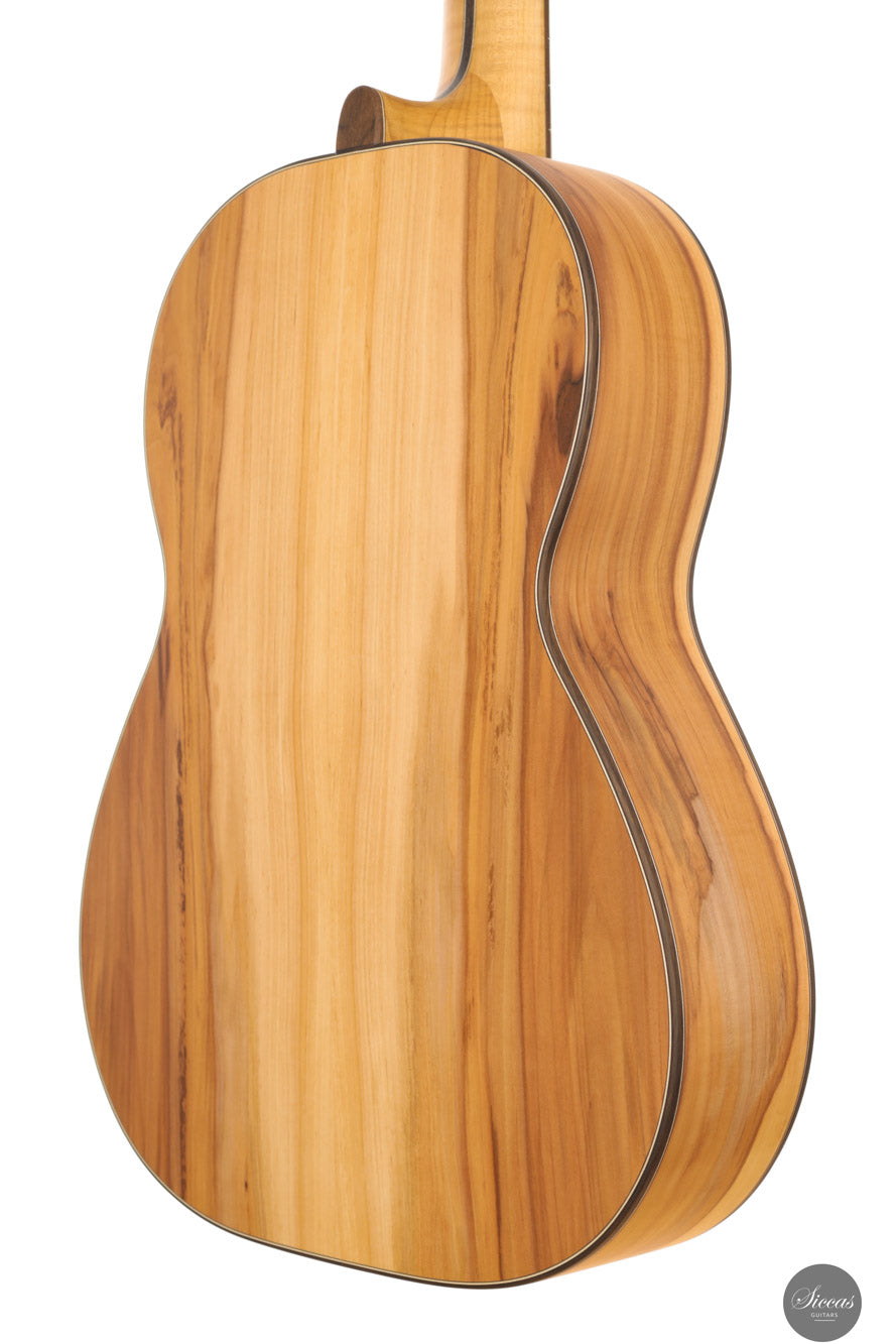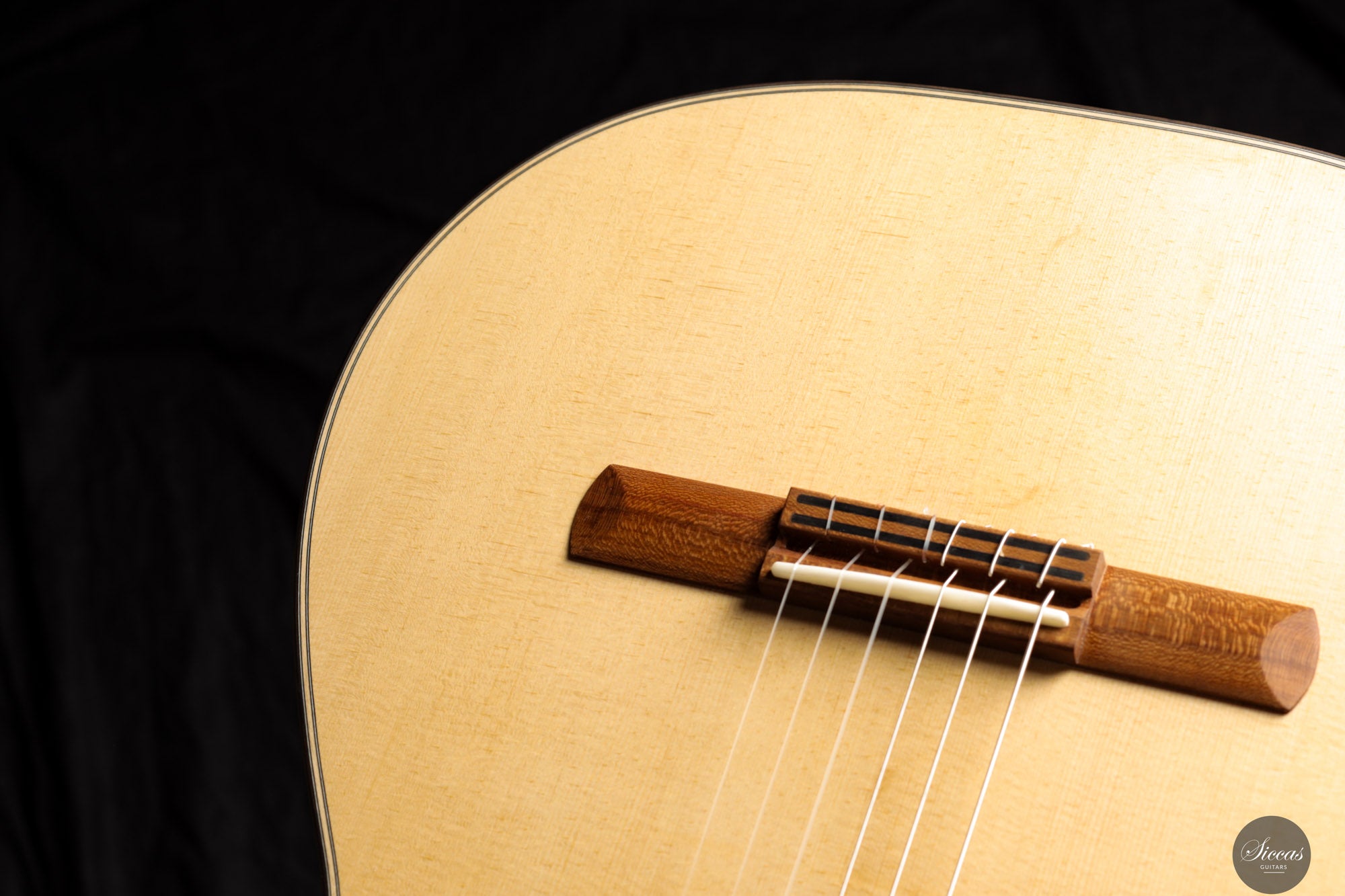 Das Modell Small Soul Lattice aus dem Jahr 2025 ist eine kompakte Konzertgitarre, die speziell für Gitarristinnen und Gitarristen entwickelt wurde, die besonderen Wert auf Komfort beim Spiel legen. Gefertigt in traditioneller spanischer Bauweise, verfügt sie über eine Fichtendecke und Boden sowie Zargen aus Apfelholz. Die Lattice-Beleistung mit einer besonders dünnen Decke (1,4 mm im Schwingungsfeld unter dem Steg) sorgt für eine schnelle Ansprache, präzise Tonentwicklung und eine sehr gute Trennschärfe – ideal für virtuose Passagen und klare Artikulation.