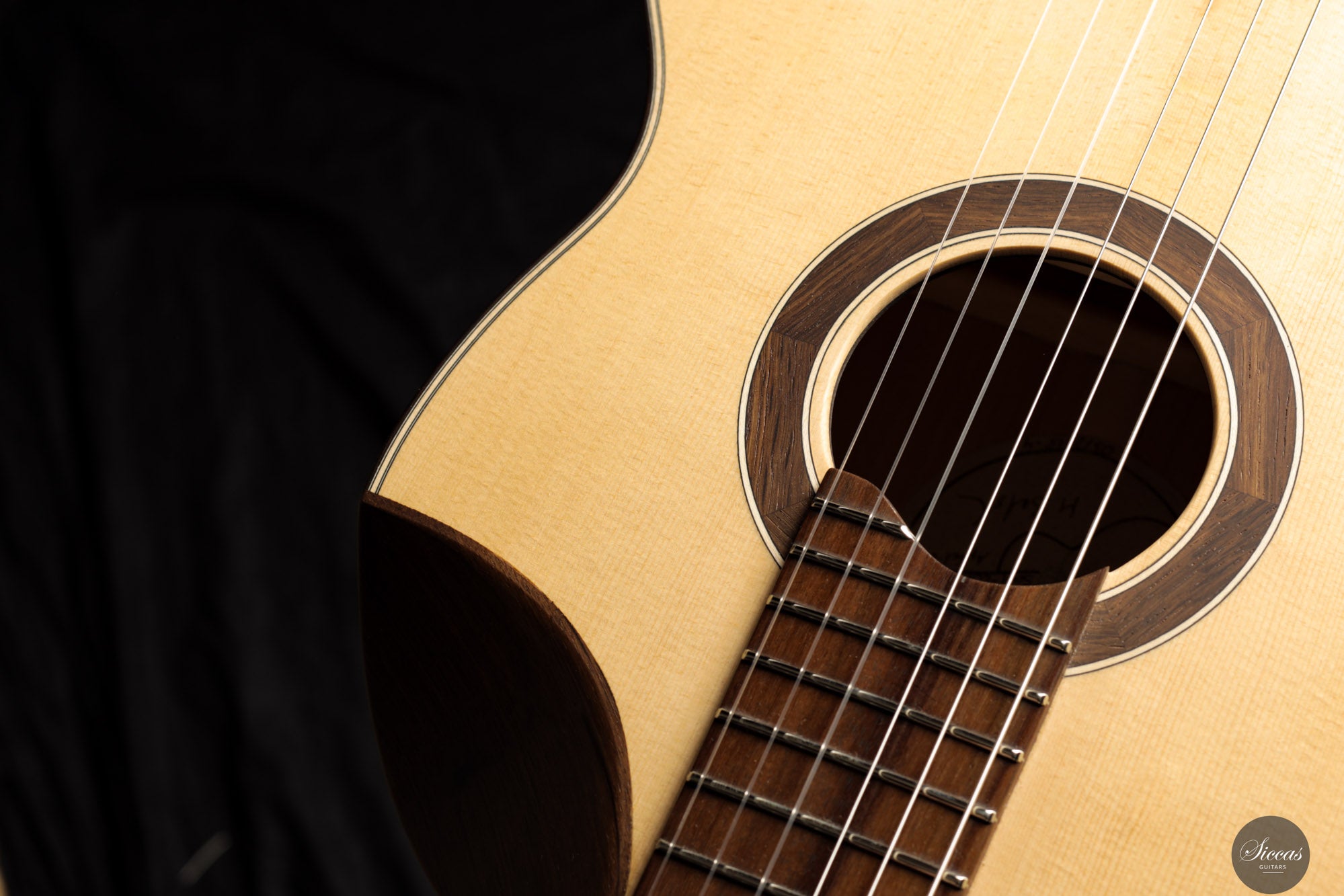 Klanglich zeichnet sich die Gitarre durch Klarheit, schnelle Ansprache und ausgewogene Mitten und Höhen aus. Auch wenn durch das reduzierte Korpusvolumen die tiefsten Resonanzen etwas zurücktreten, bleibt der Gesamtsound harmonisch und präsent. Die Small Soul bringt genau dort ihre Stärken zur Geltung, wo Transparenz und Spielkomfort gefragt sind – eine hervorragende Wahl für Musikerinnen und Musiker, die Wert auf ergonomisches Design und klangliche Präzision legen.