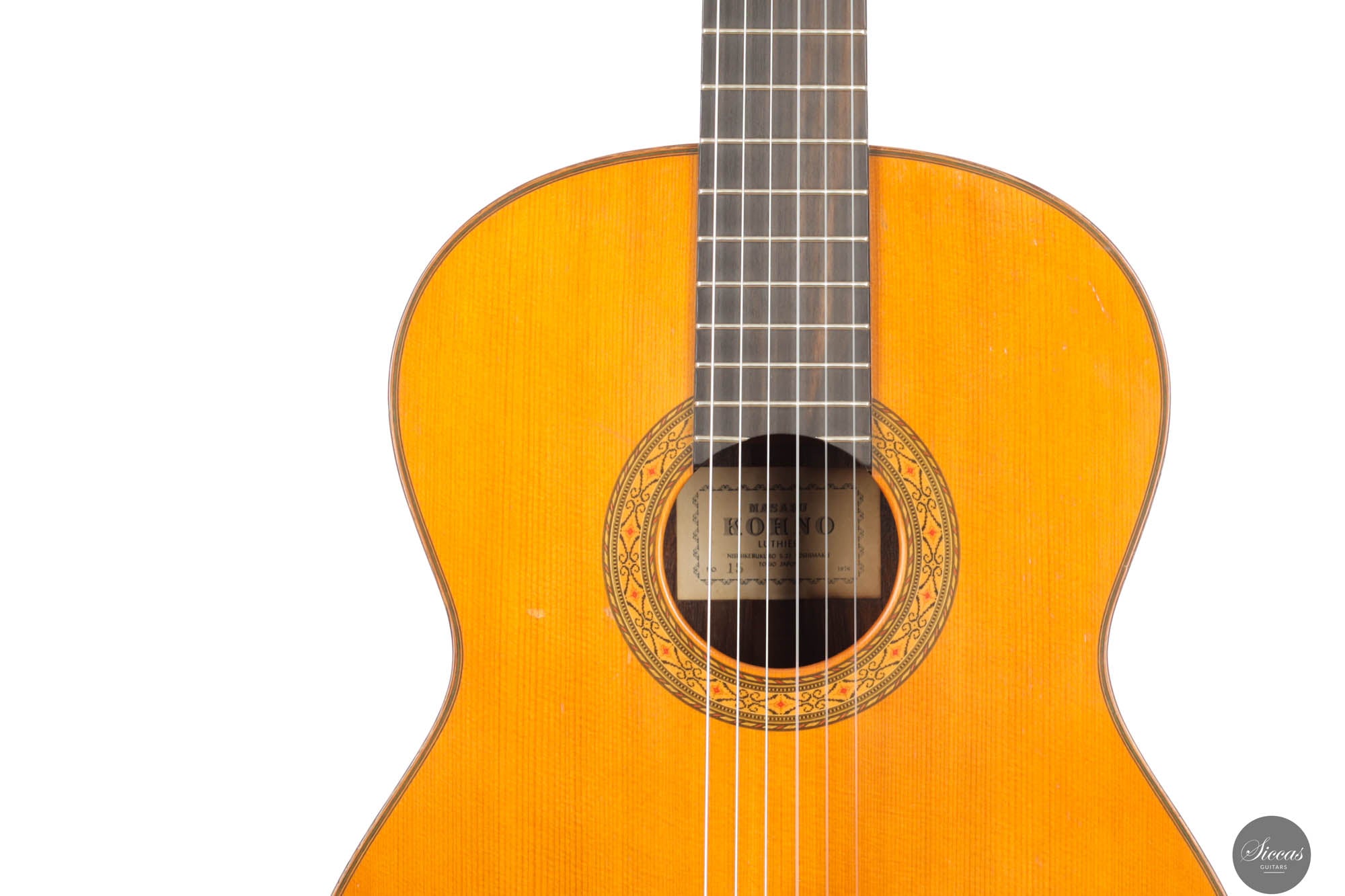 Masaru Kohno (1926-1998) ist eine bedeutende Figur in der Geschichte des japanischen Gitarrenbaus und ein visionärer Gitarrenbauer. Geboren in Mito City, Japan, begann er seine Karriere als Gitarrenbauer nach seinem Abschluss am Tokyo College of Arts and Crafts. 1959 reiste Masaru Kohno in die Werkstatt von Arcangel Fernandez nach Spanien, wo er sechs Monate lang eine prägende Ausbildung absolvierte. Ein Wendepunkt in seiner Karriere war der Gewinn der Goldmedaille beim Elizabeth's Concourse International Guitar Building Competition in Belgien im Jahr 1967, der ihm weltweite Anerkennung einbrachte. Die Liste der Musiker, die auf einer Masaru-Kohno-Gitarre aufgenommen und gespielt haben, ist beträchtlich. Zu den bekanntesten gehören Julian Bream, Oscar Ghiglia und Sharon Isbin.
